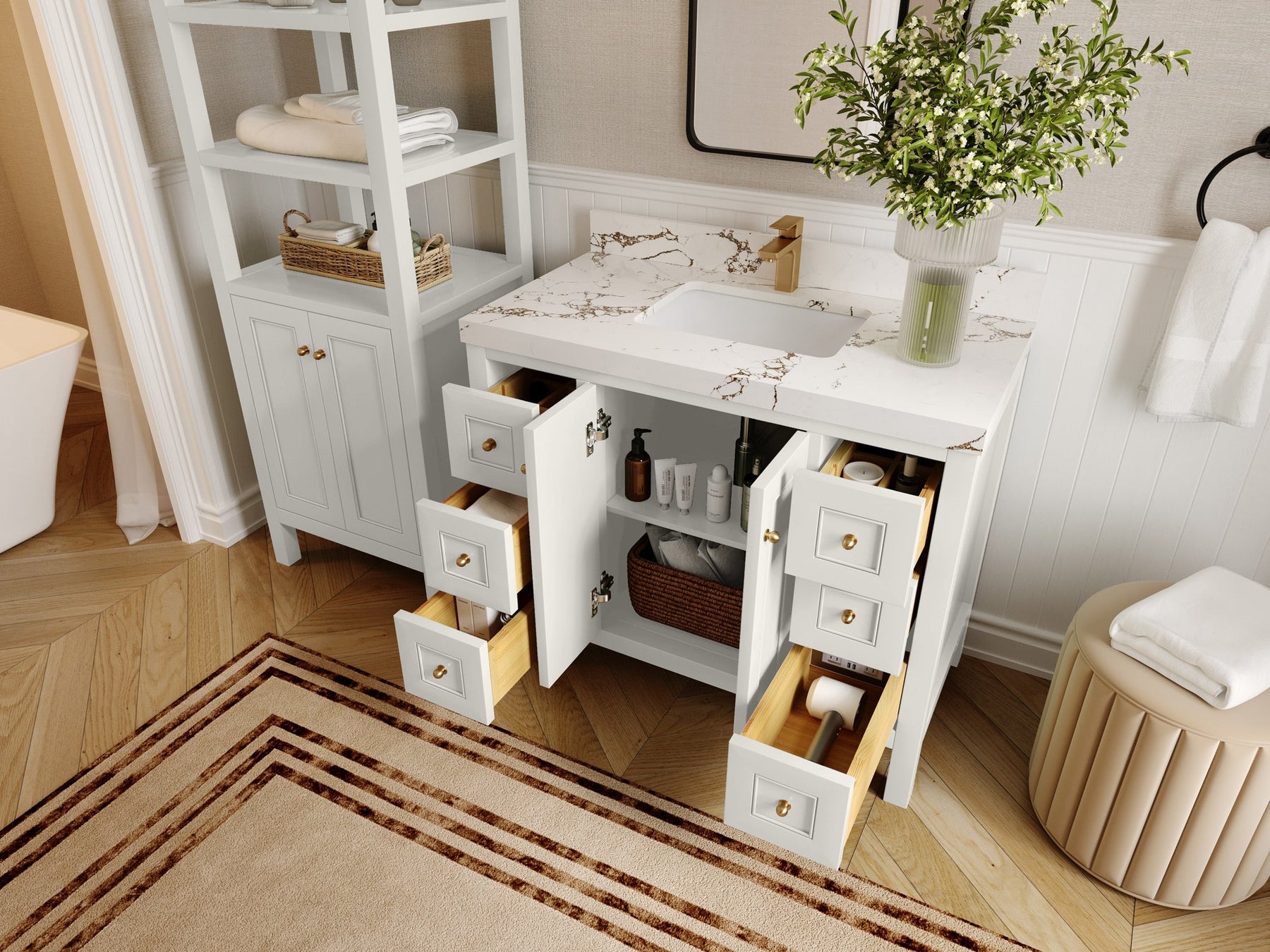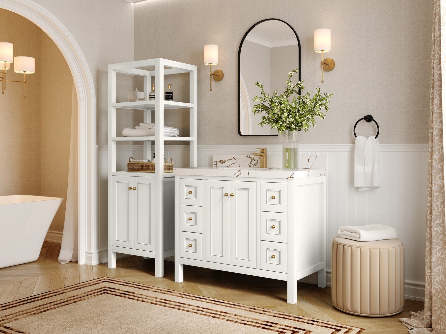The Nashville Cabinet Collection presents a timeless design that seamlessly balances elegance and practicality. Its clean, structured silhouette complements a wide range of bathroom aesthetics, from modern to traditional. Featuring a sturdy construction, the cabinets are designed to offer ample storage while maintaining a sleek, sophisticated appearance. With customizable finishes, countertop options, and hardware details, the collection adapts effortlessly to different decor styles. The Nashville Collection’s refined design is enhanced by thoughtful touches such as soft-close drawers and doors, ensuring both beauty and functionality.