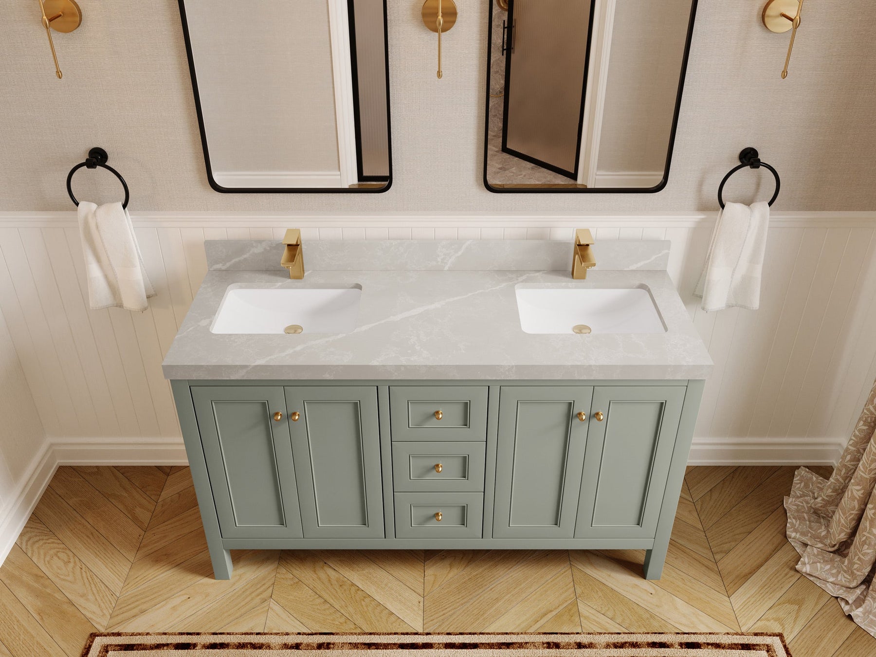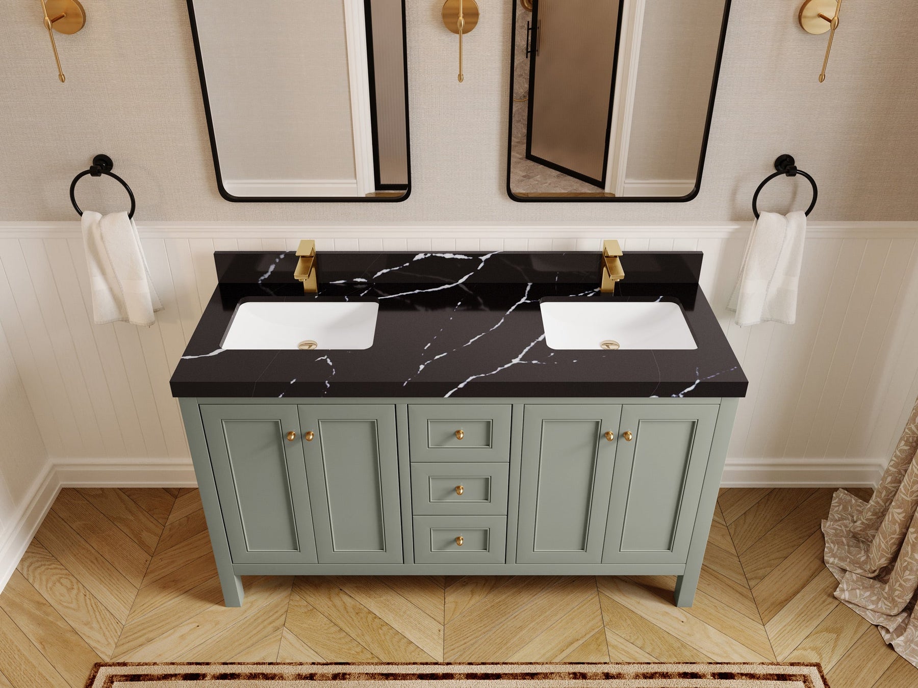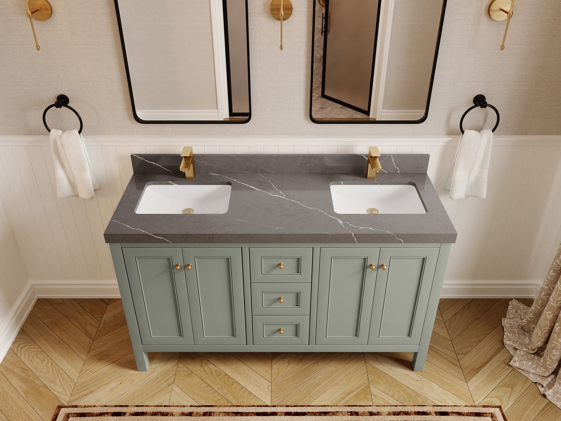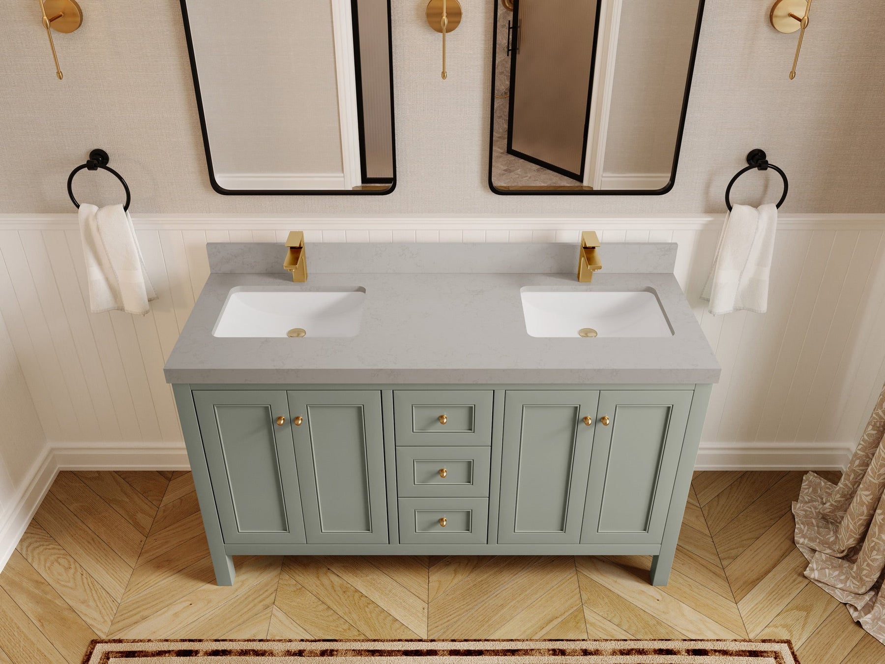 Nashville 60 in. W x 22 in. D Double Sink Bathroom Vanity | Evergreen