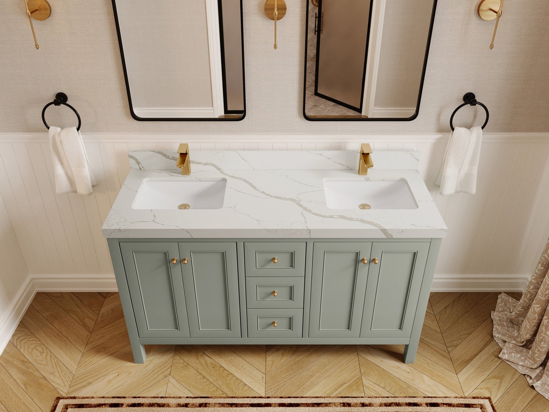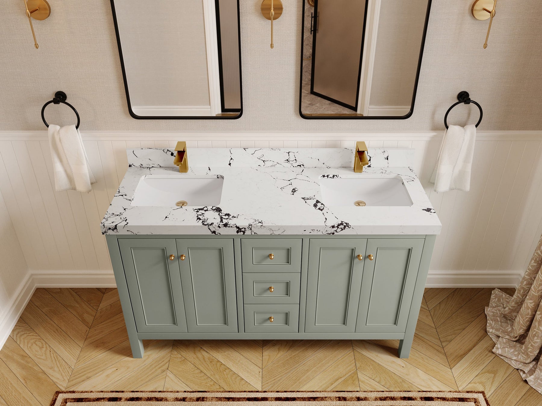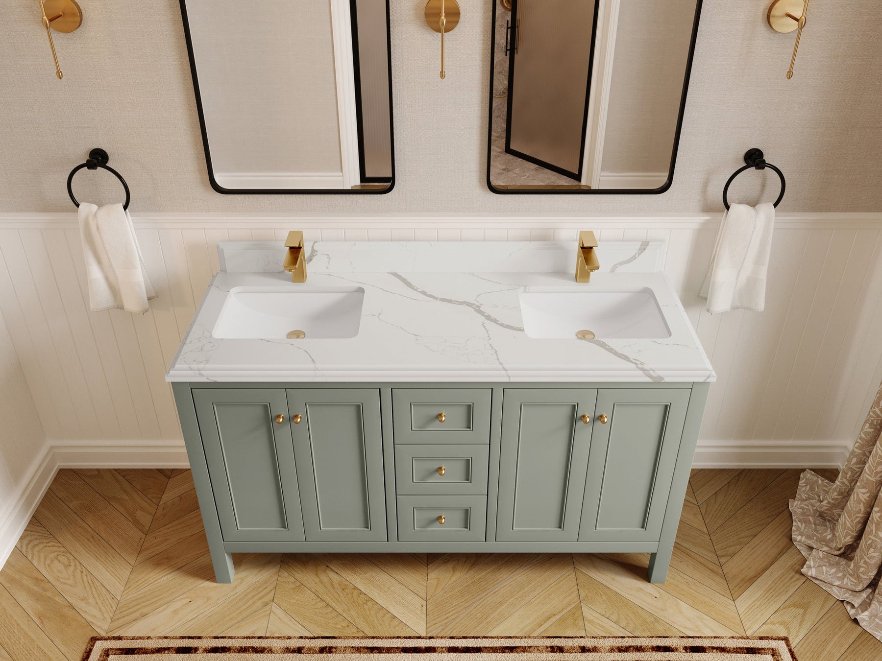 Nashville 60 in. W x 22 in. D Double Sink Bathroom Vanity | Evergreen
