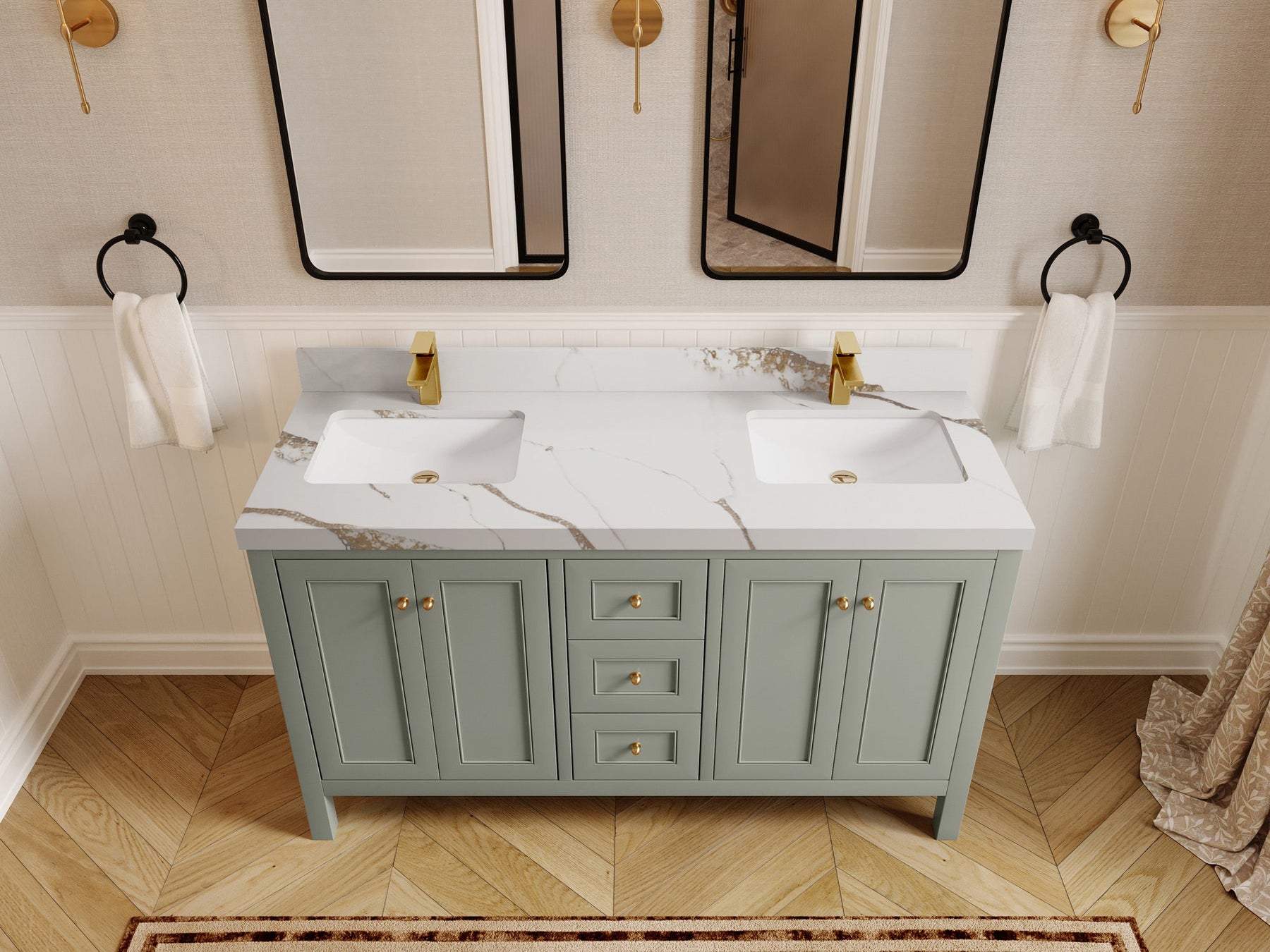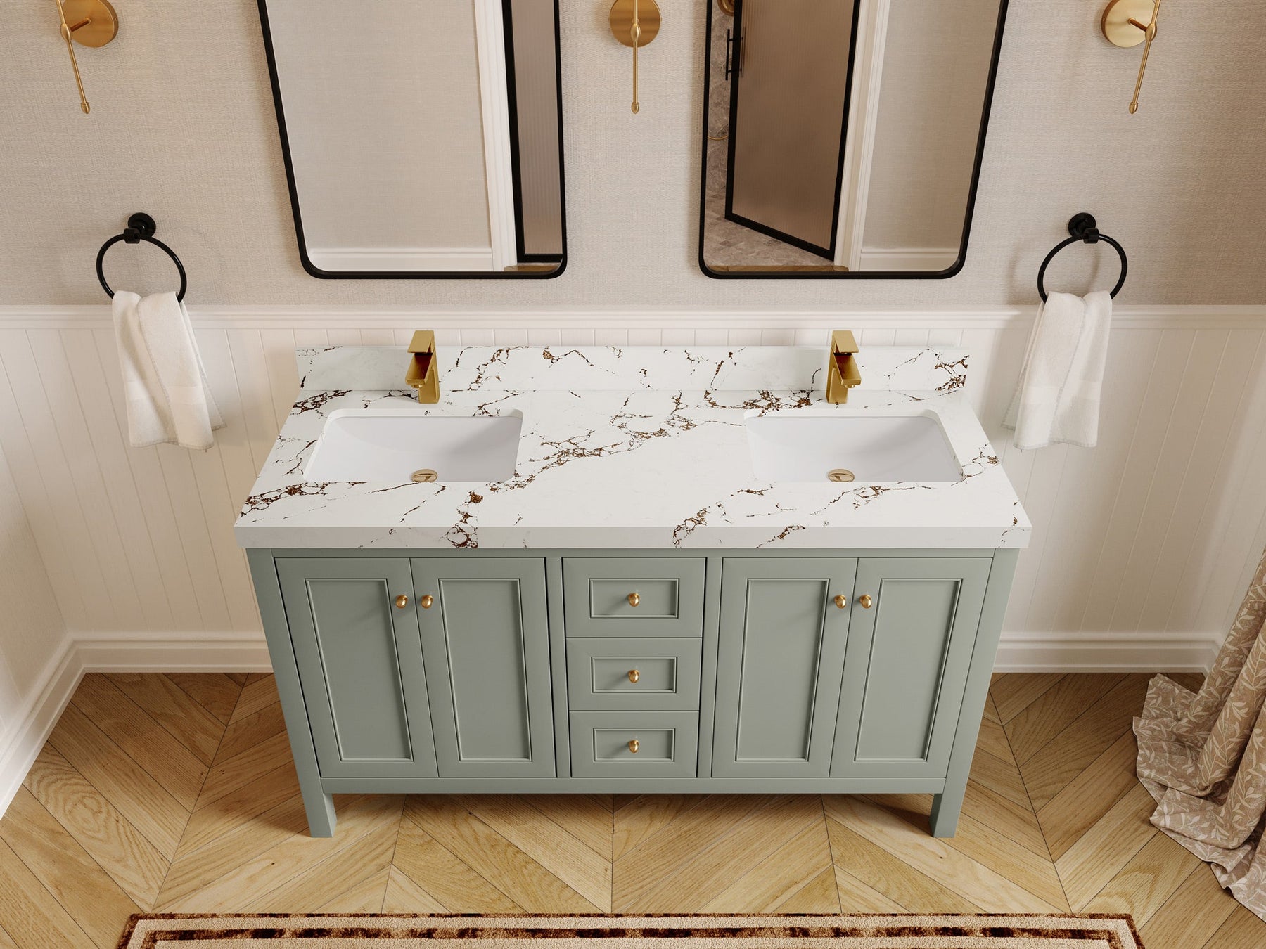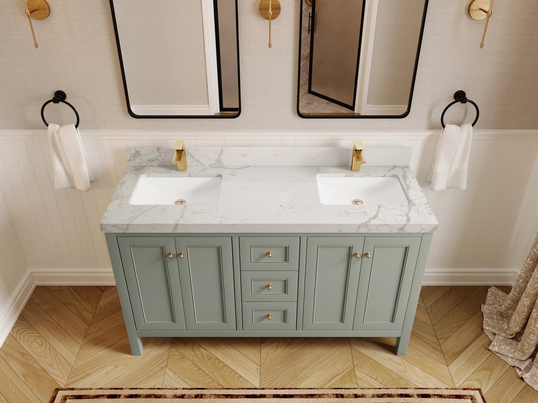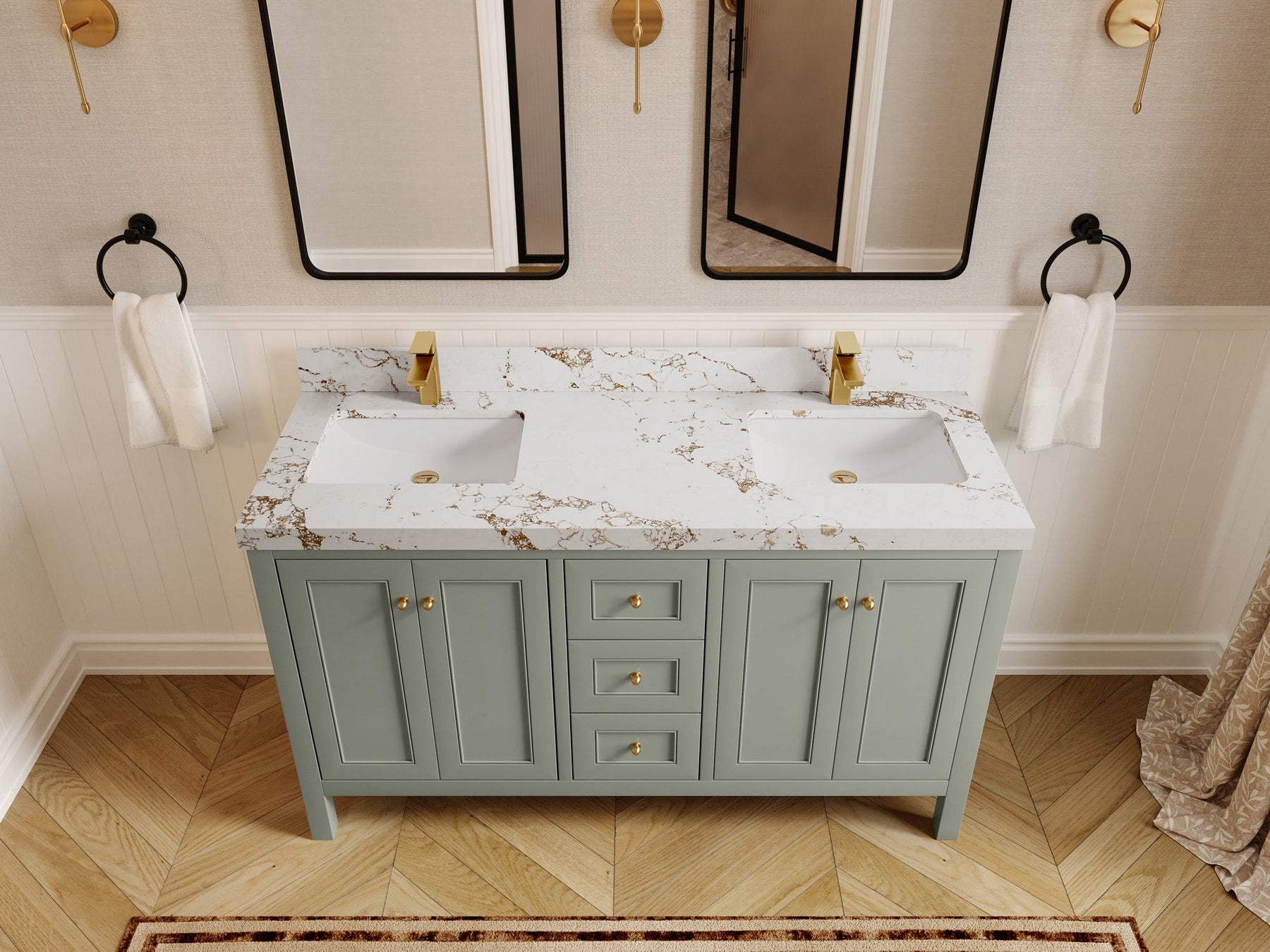 Nashville 60 in. W x 22 in. D Double Sink Bathroom Vanity | Evergreen