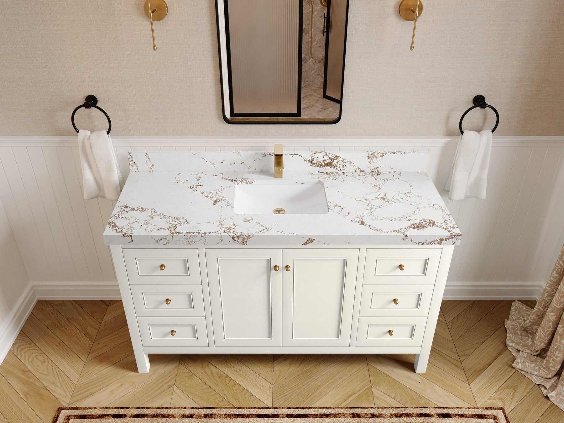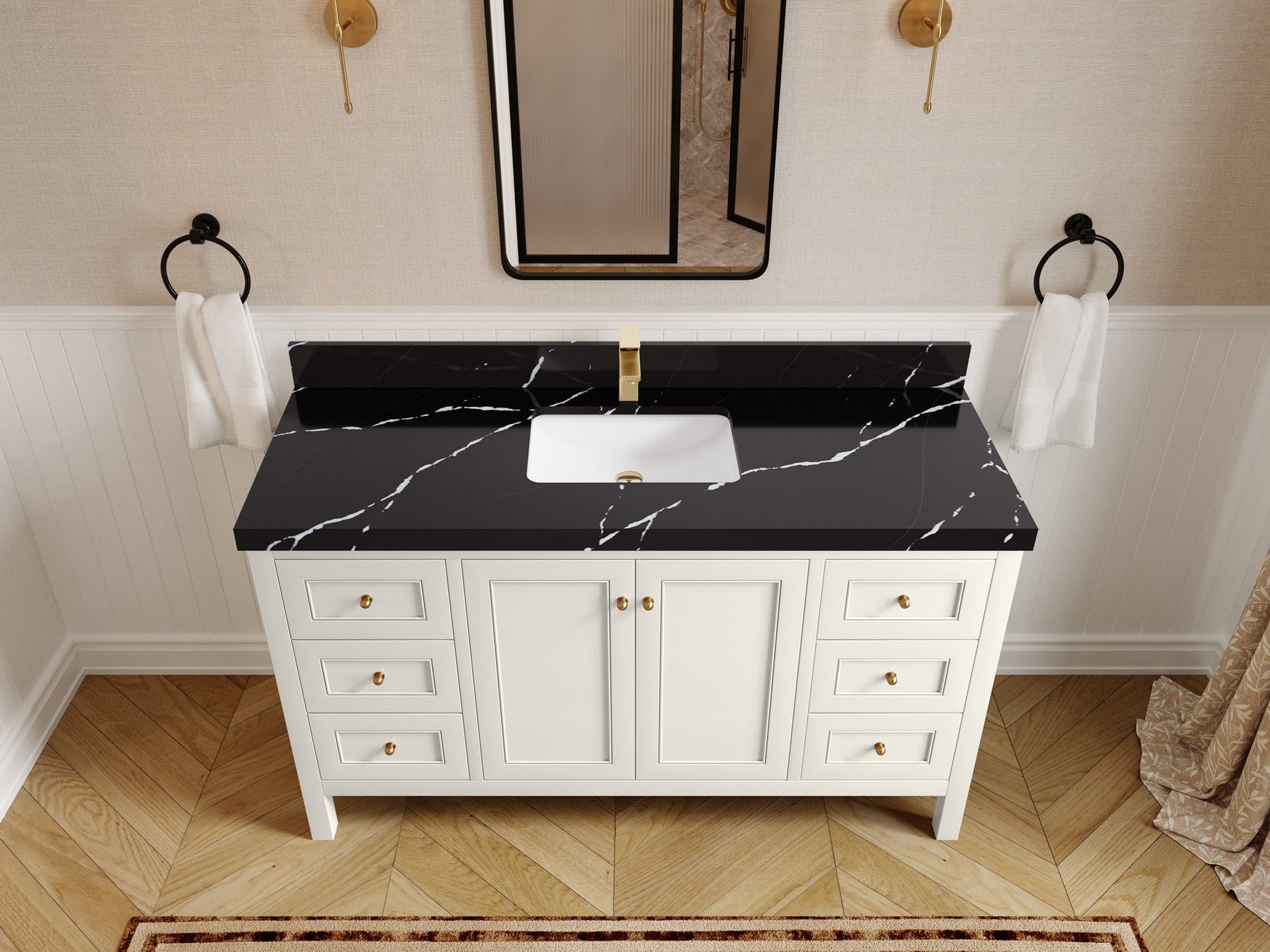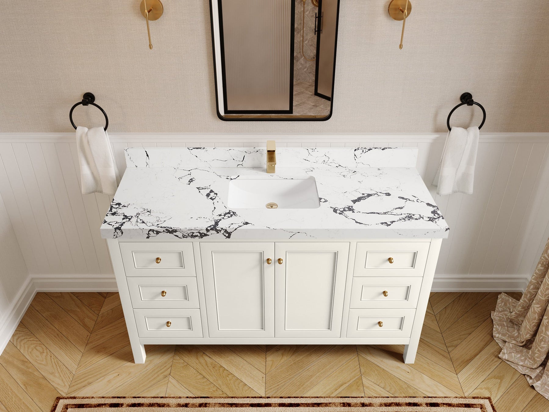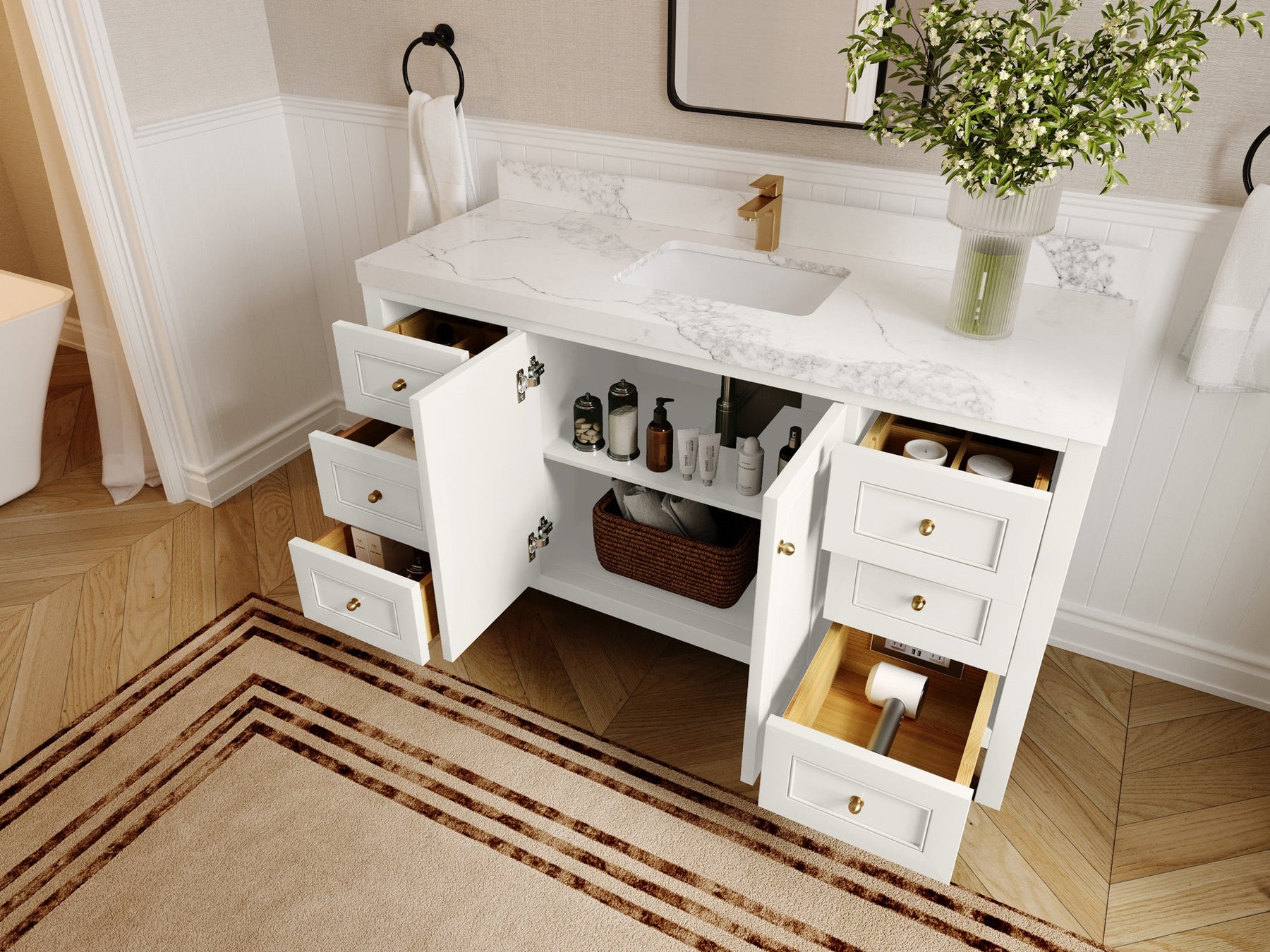 • 3 Customizable Options: Flexible in terms of cabinet color, countertop materials, and hardware finishes, allowing for a personalized touch.