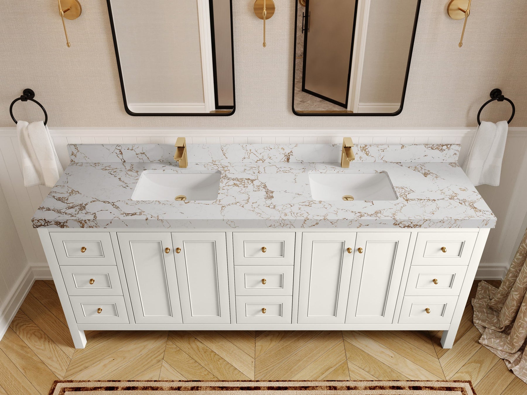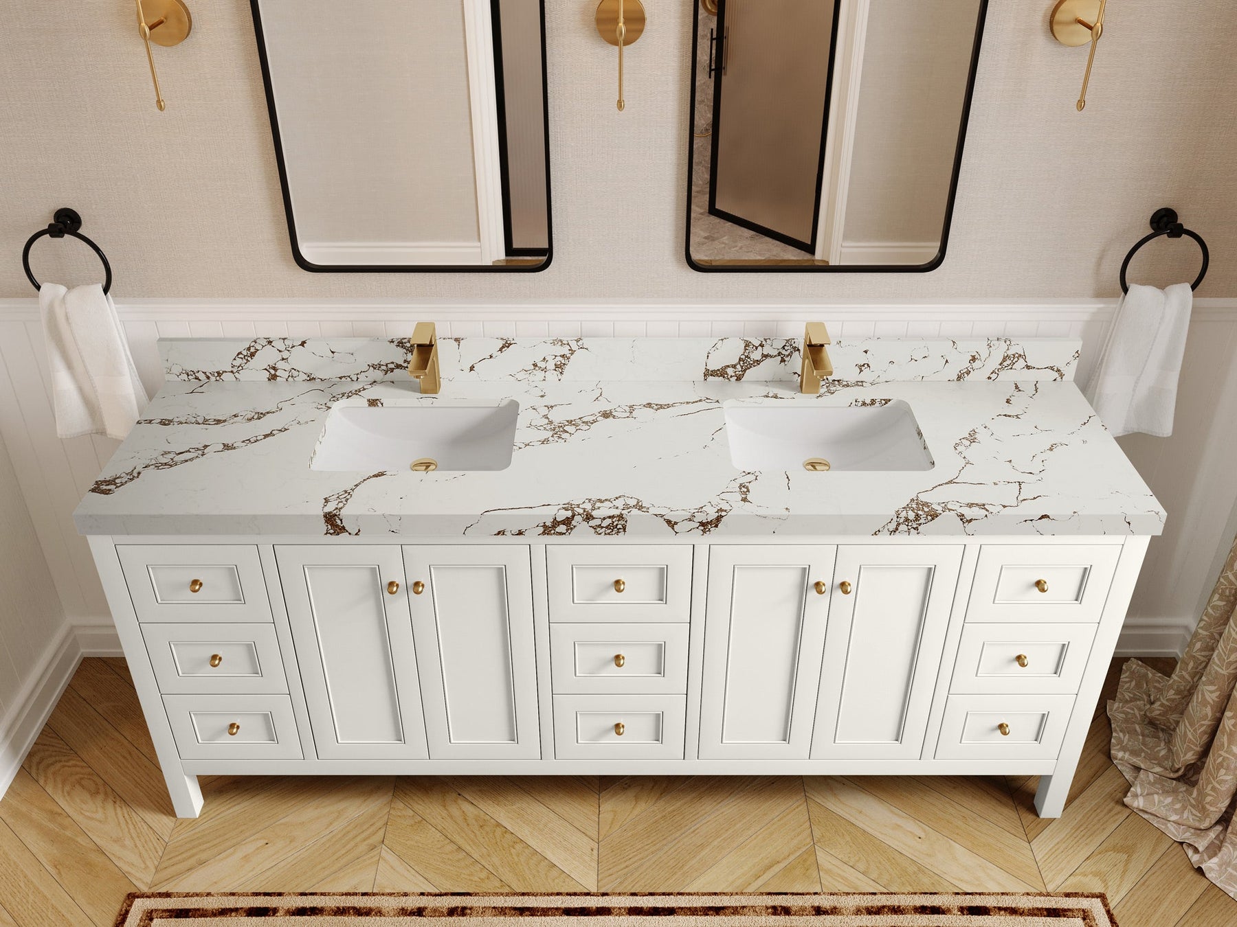 Vanity Countertops options: For Calacatta Laza Quartz, Empira White Quartz, Pure White Quartz, Palissandro Quartz we have 2 options Straight-Mitered Edge and Double Cove Edge; For Calacatta Nuvo Quartz, Carrara Marble, Carrara Quartz, Piatra Gray Quartz, Pearl Light Gray Quartz, Calacatta Black Quartz, Calacatta Gold Quartz, Calacatta Sienna Quartz, Calacatta Poanazzo Quartz, Venatino Quartz, Viola Brown Quartz, Viola Gold Quartz, Viola Night Quartz, Viola Biagio Quartz, Berkshire Brass Quartz, Frosty Carrara Quartz, Onyx Quartz we have Straight - Mitered Edge option.
