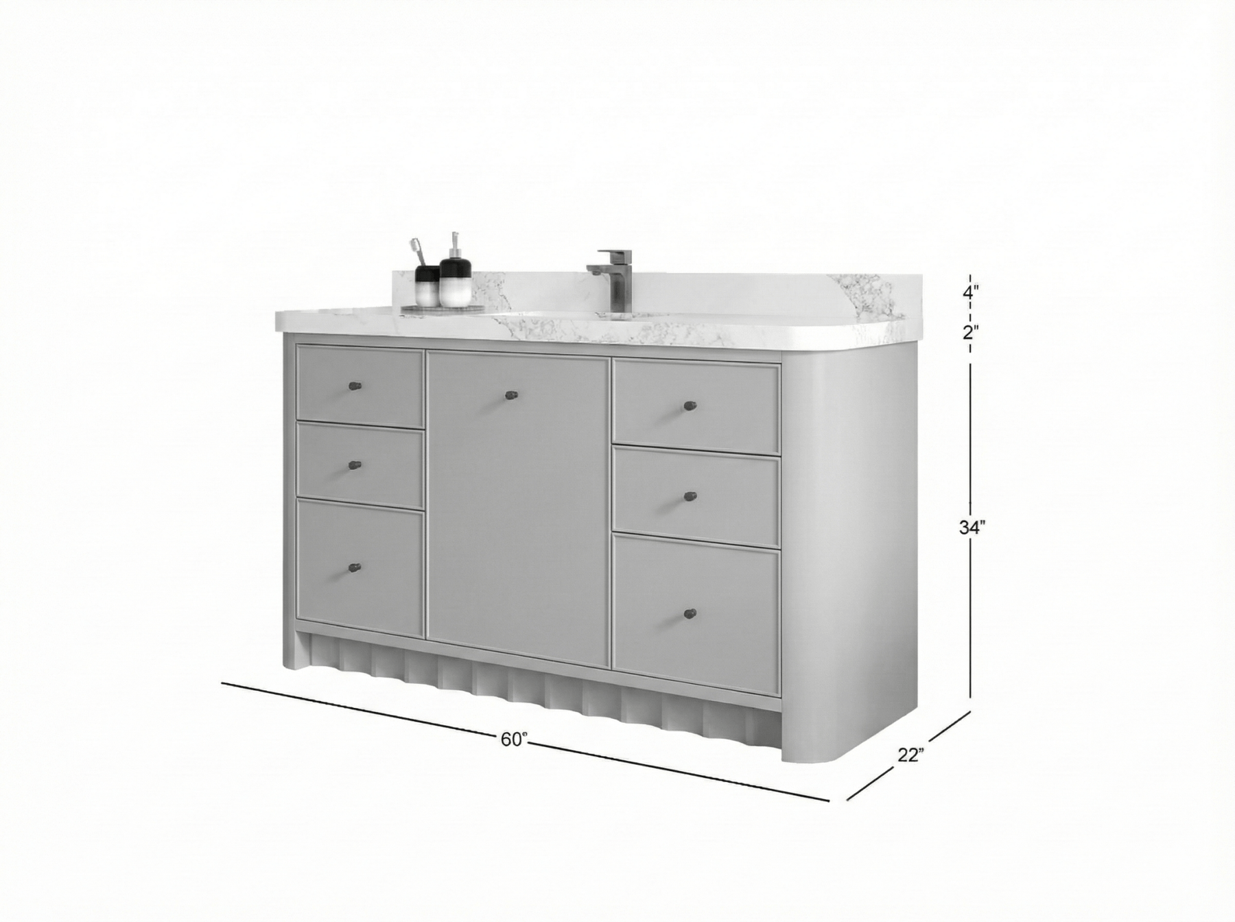 Inside, the vanity delivers generous storage with multiple drawers, open shelving, and spacious cabinet compartments—ideal for organizing towels, toiletries, skincare essentials, and grooming items. Its symmetrical, well-balanced layout keeps your bathroom neat, organized, and clutter-free while elevating both functionality and style.