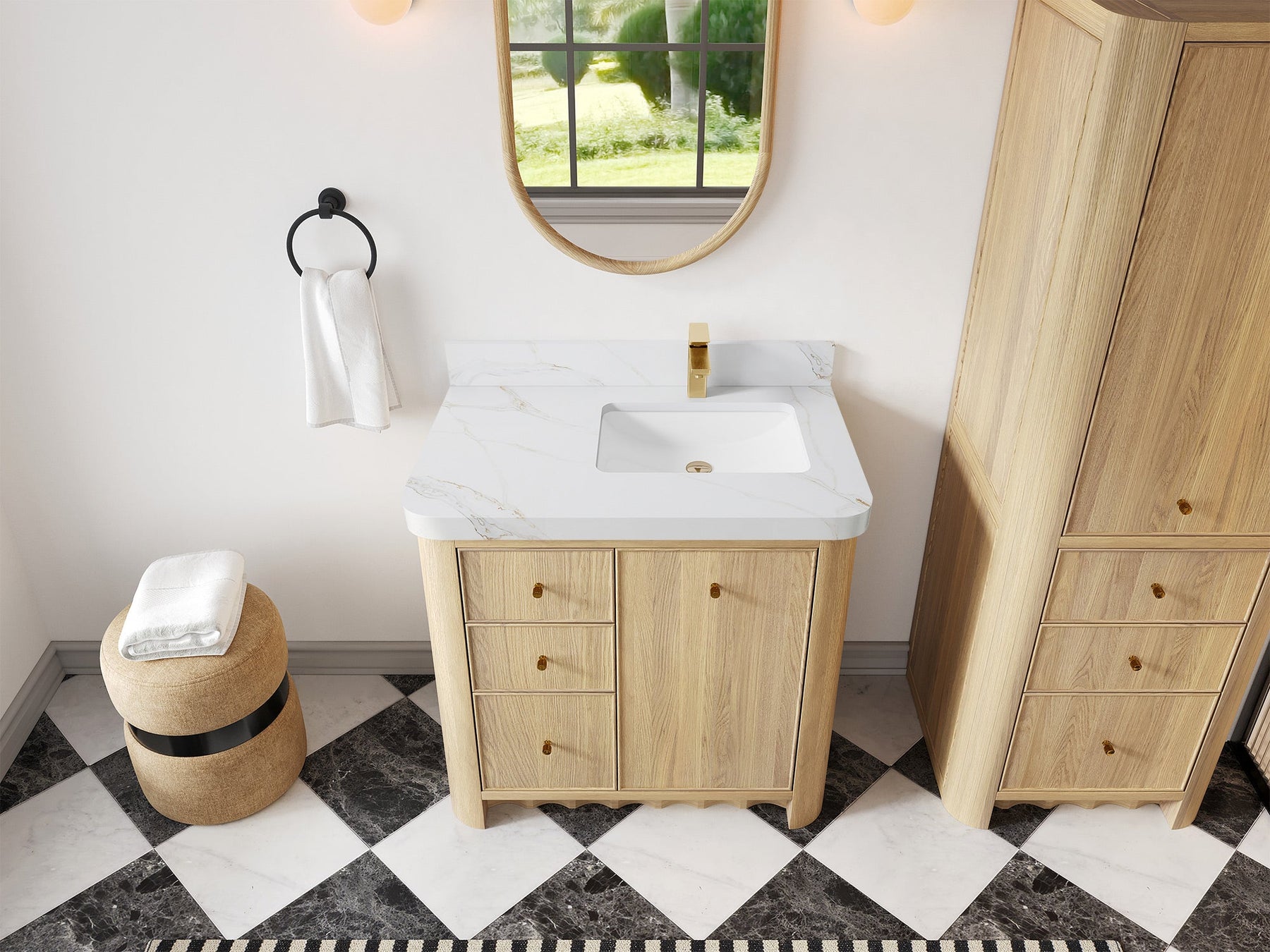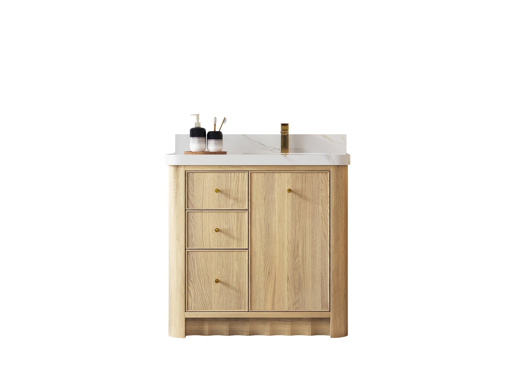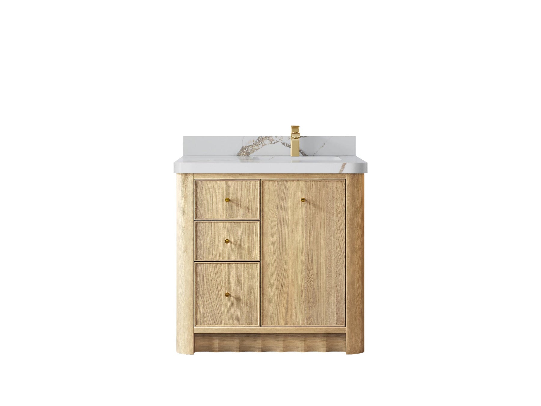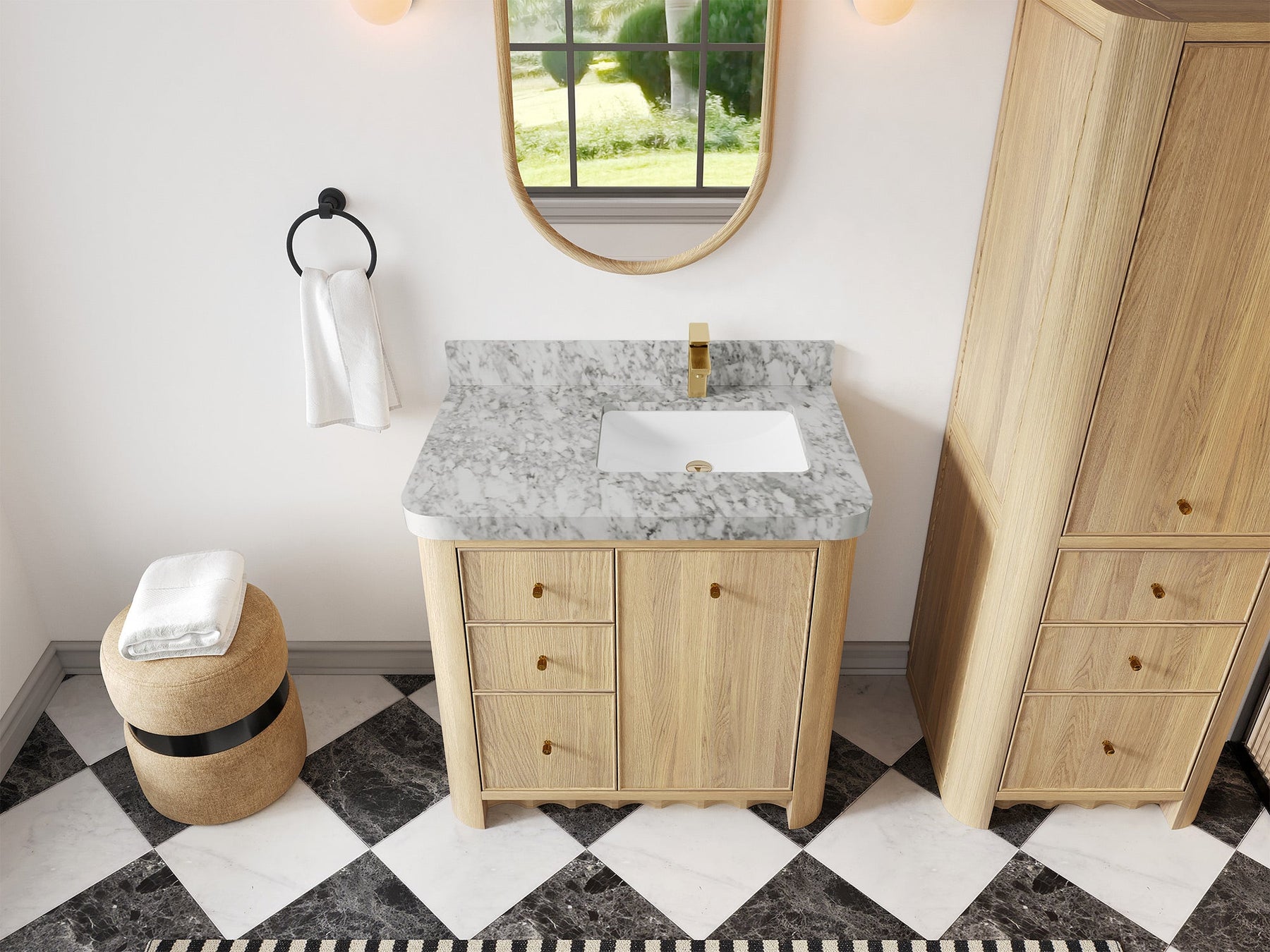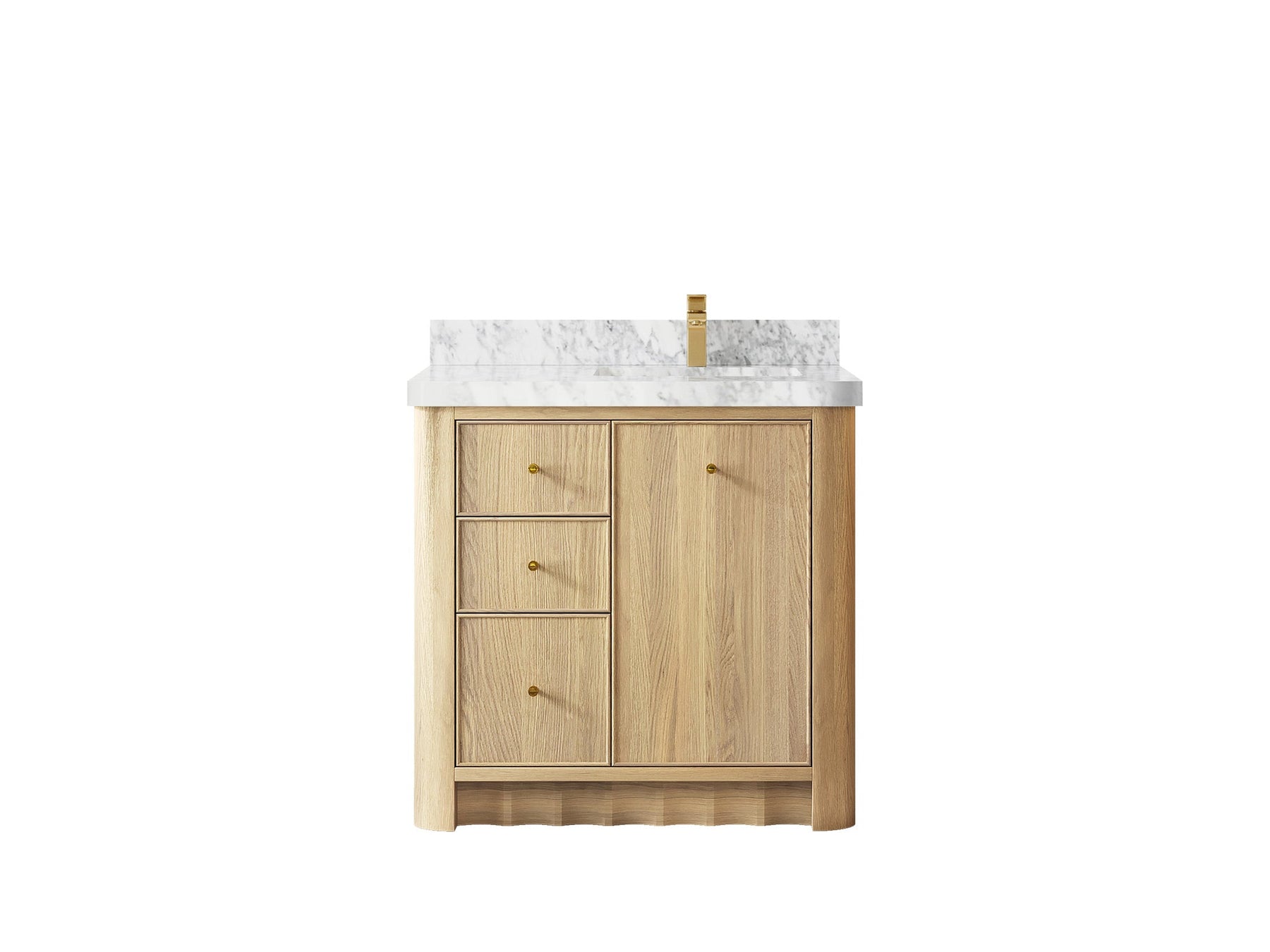 Vanity Countertops options: For Calacatta Laza Quartz, Empira White Quartz, Pure White Quartz we have 2 options Straight-Mitered Edge & Double Cove Edge, For Calacatta Black Quartz, Calacatta Gold Quartz, Calacatta Nuvo Quartz, Carrara Marble, Carrara Quartz, Pearl Light Gray Quartz, Piatra Gray Quartz, Venatino Quartz, and Light Concrete Gray Quartz we only have Straight - Mitered Edge option.