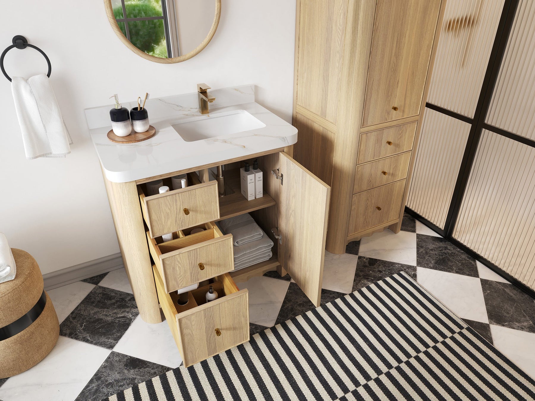 Faucet Hole(S): Comes with Single Faucet, 8 (in.) Widespread Faucet, Wall mount Faucets - Only Available for White Quartz and Carrara Quartz. (PLEASE ADD THIS CONFIGURATION UNDER COUNTERTOPS SECTION )