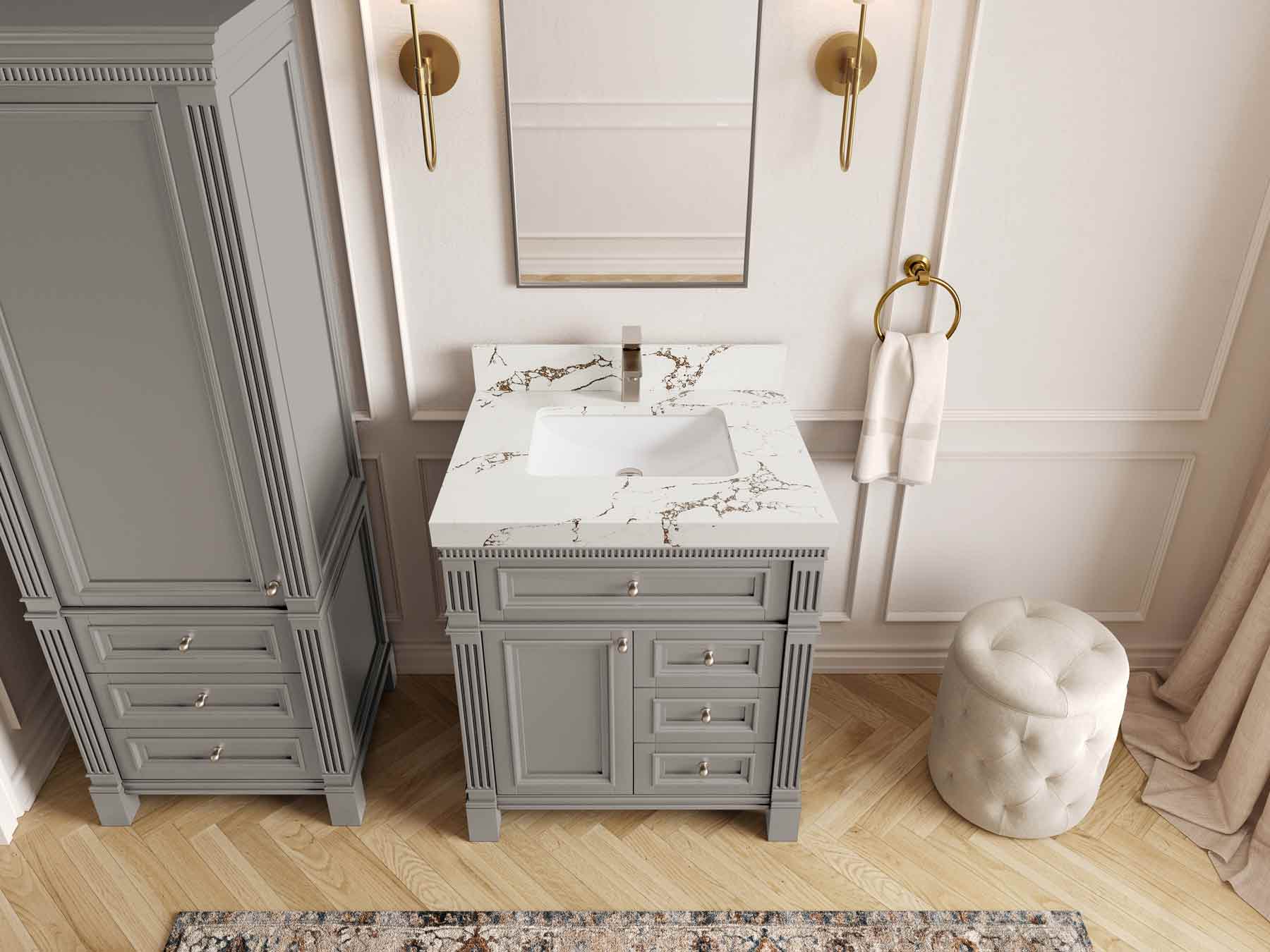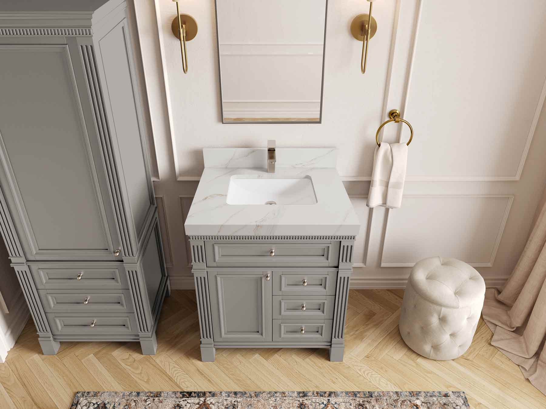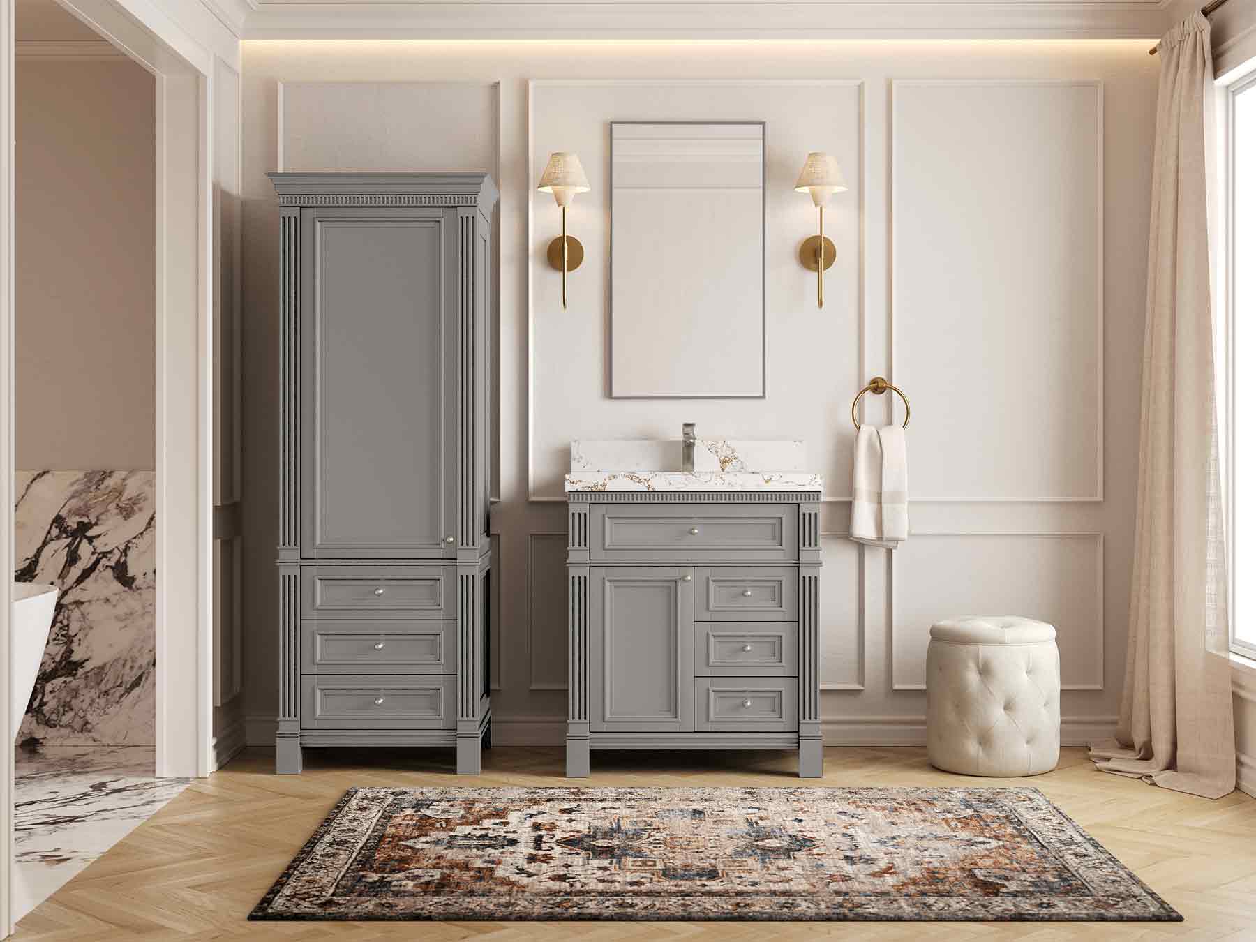 1. Elegant Design: The Paris Cabinet Collection features a classic yet contemporary design, with intricate molding and luxurious finishes that add a touch of sophistication to any bathroom.