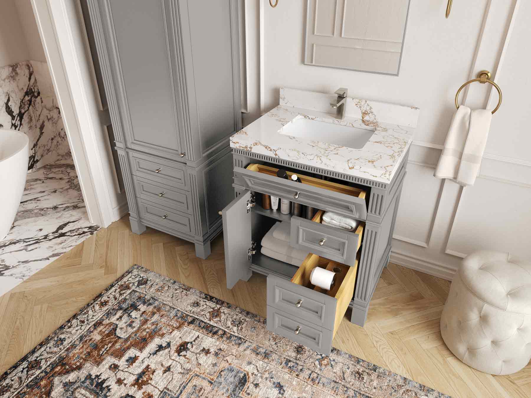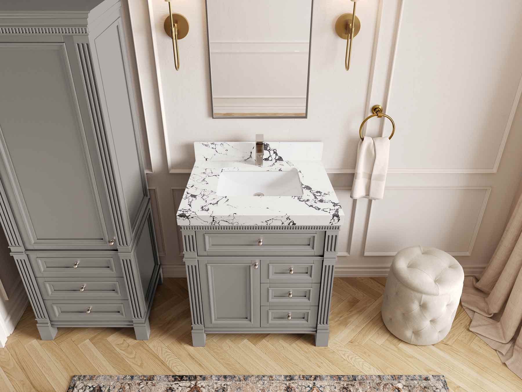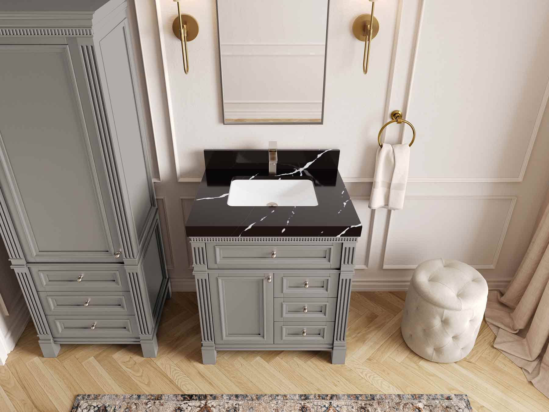 1. Elegant Design: The Paris Cabinet Collection features a classic yet contemporary design, with intricate molding and luxurious finishes that add a touch of sophistication to any bathroom.