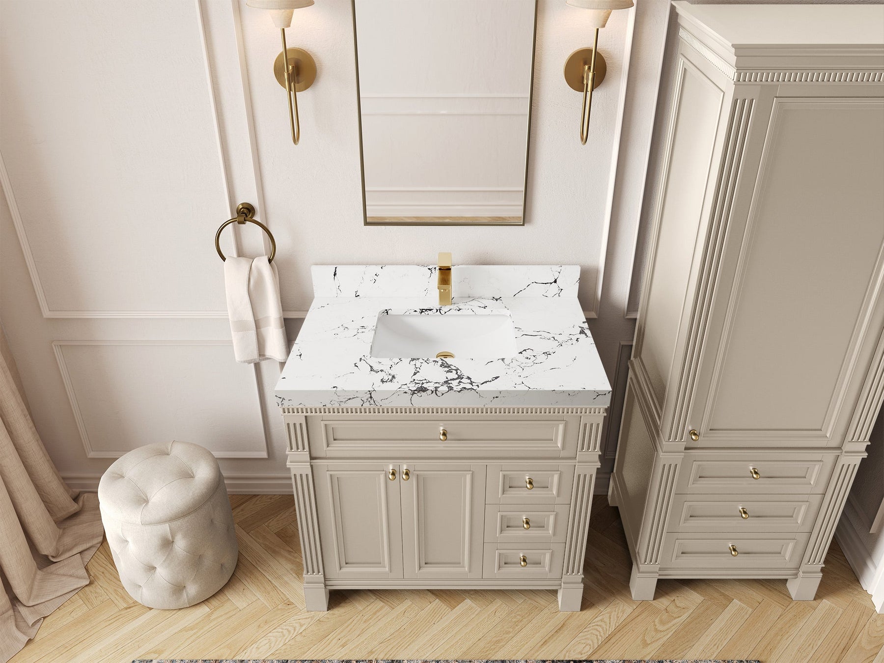 2. Durable Countertop Options - Choose from our range of bathroom vanities with quartz countertop to perfectly match your bathroom's style and color scheme. Our countertops are designed to withstand daily use and are resistant to scratches, stains, and heat.