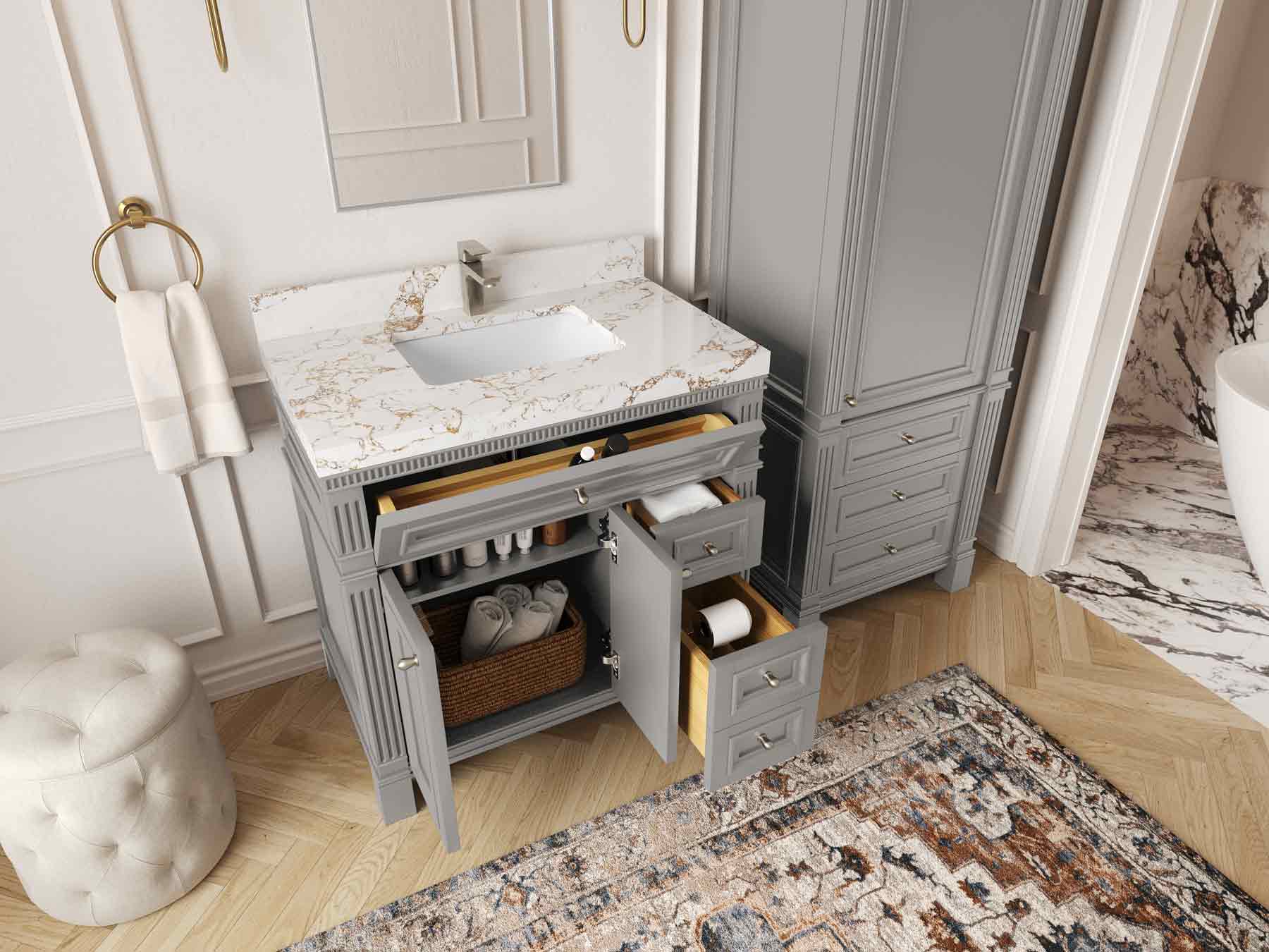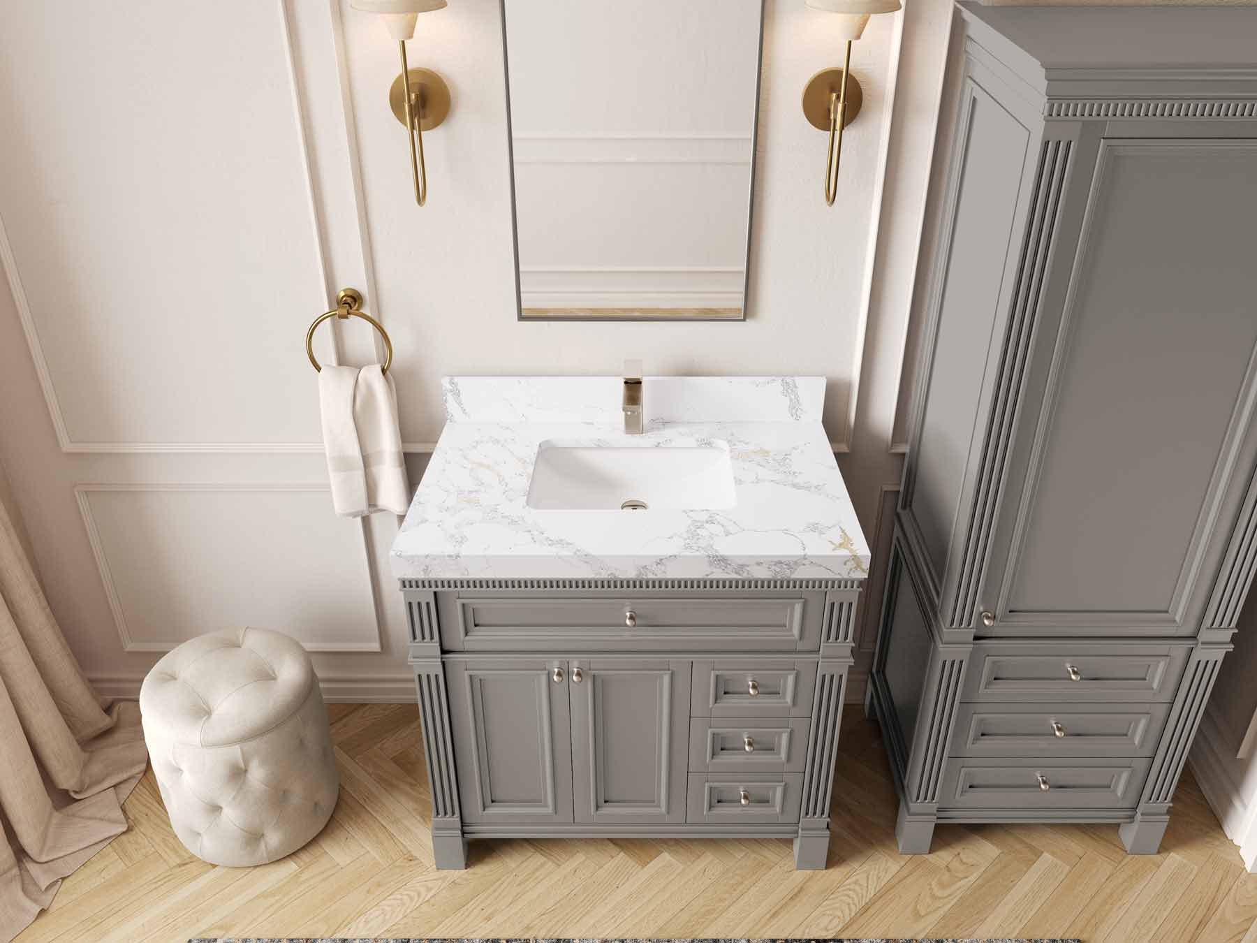 1. Elegant Design: The Paris Cabinet Collection features a classic yet contemporary design, with intricate molding and luxurious finishes that add a touch of sophistication to any bathroom.