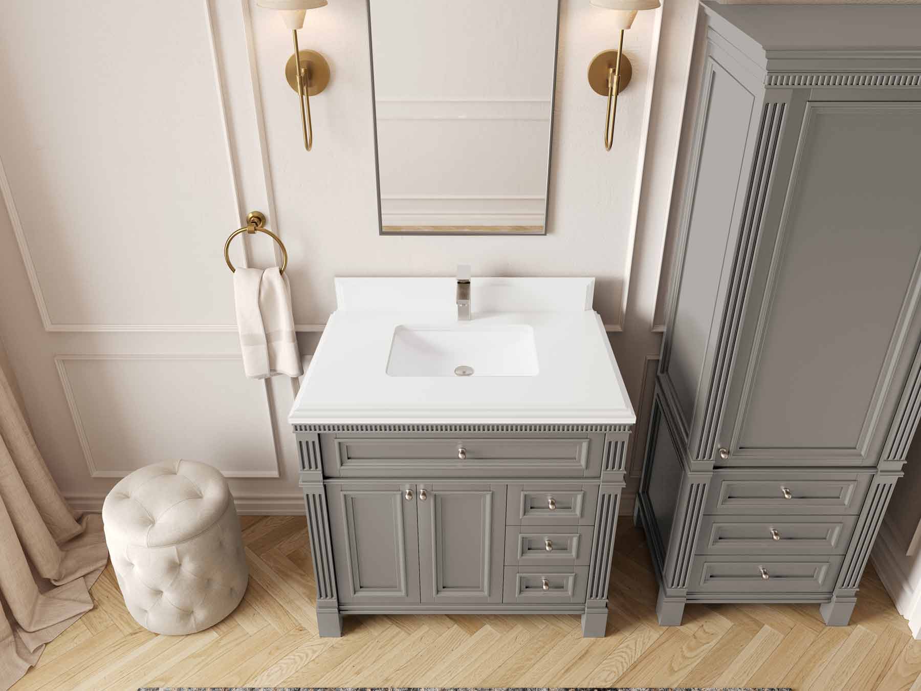 2. Durable Countertop Options - Choose from our range of bathroom vanities with quartz countertop to perfectly match your bathroom's style and color scheme. Our countertops are designed to withstand daily use and are resistant to scratches, stains, and heat.