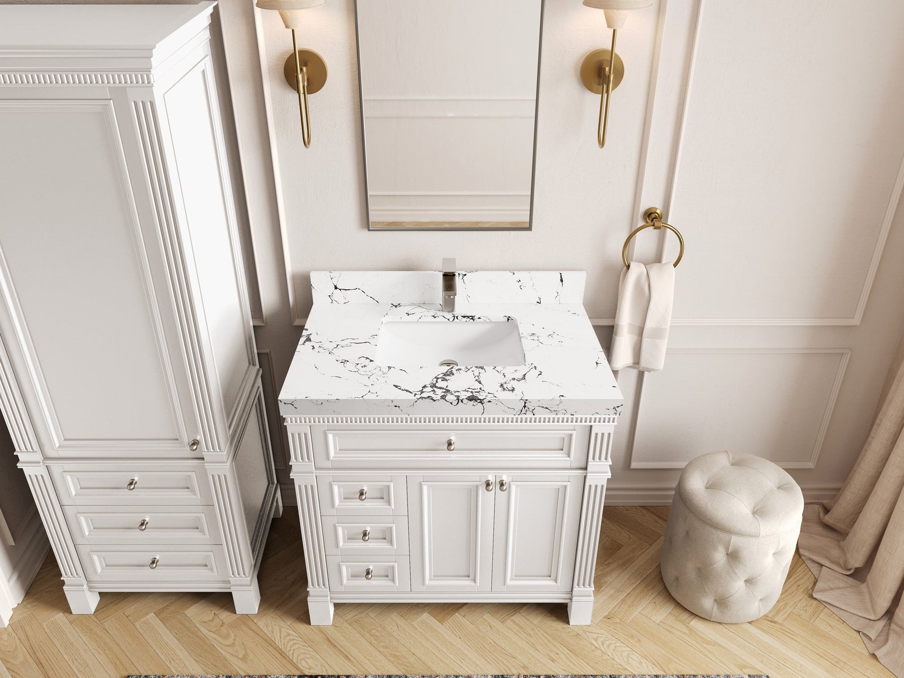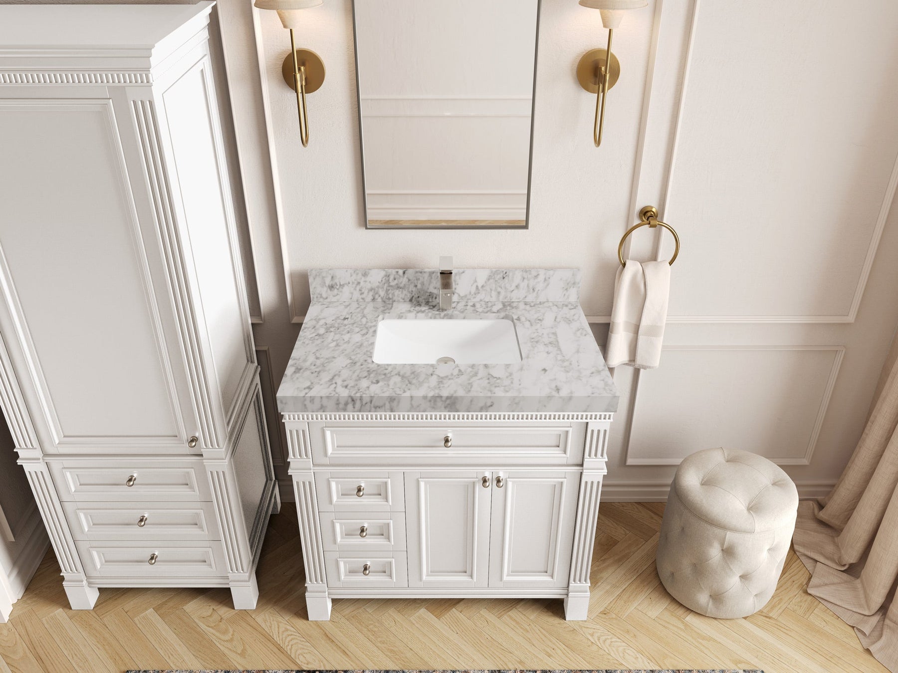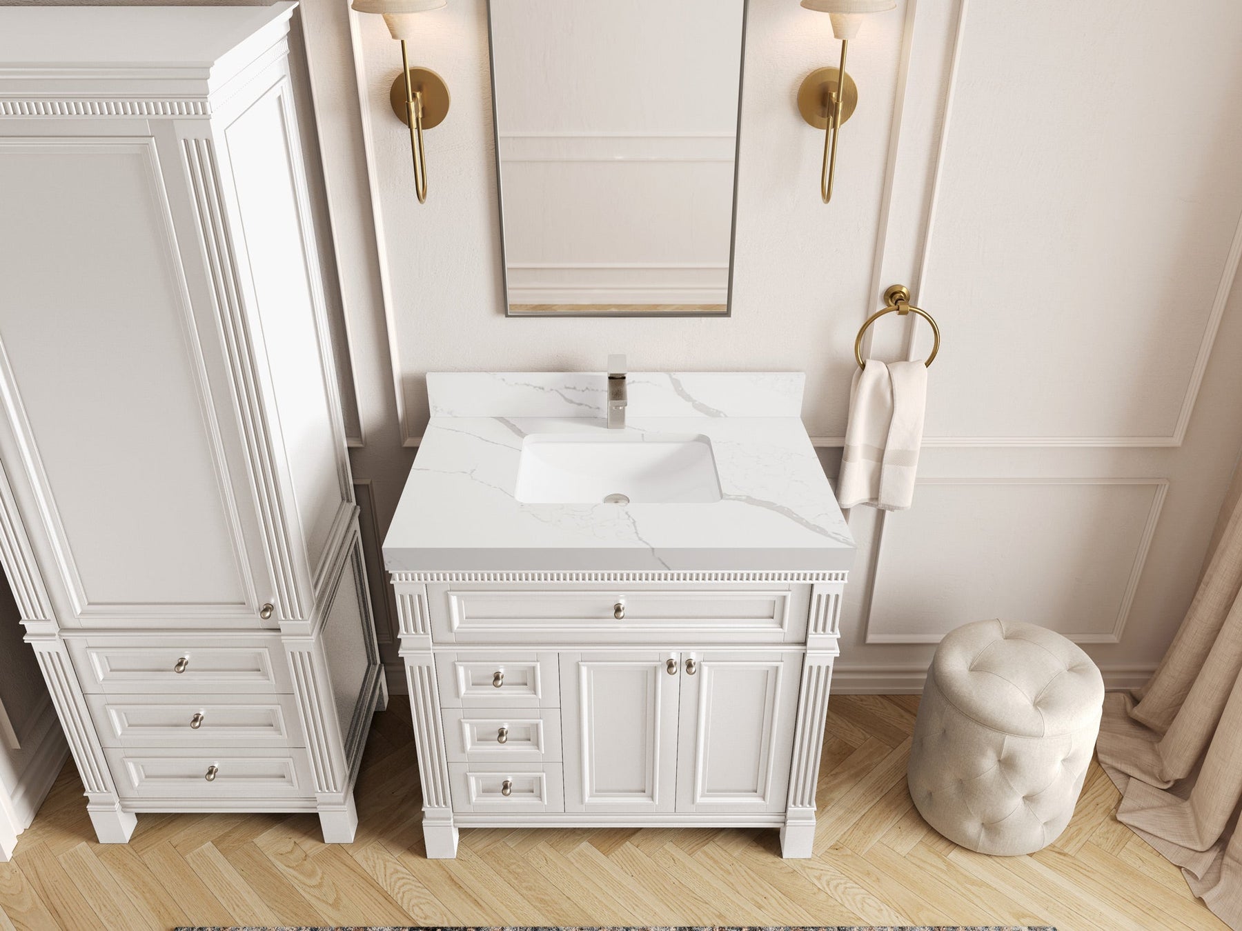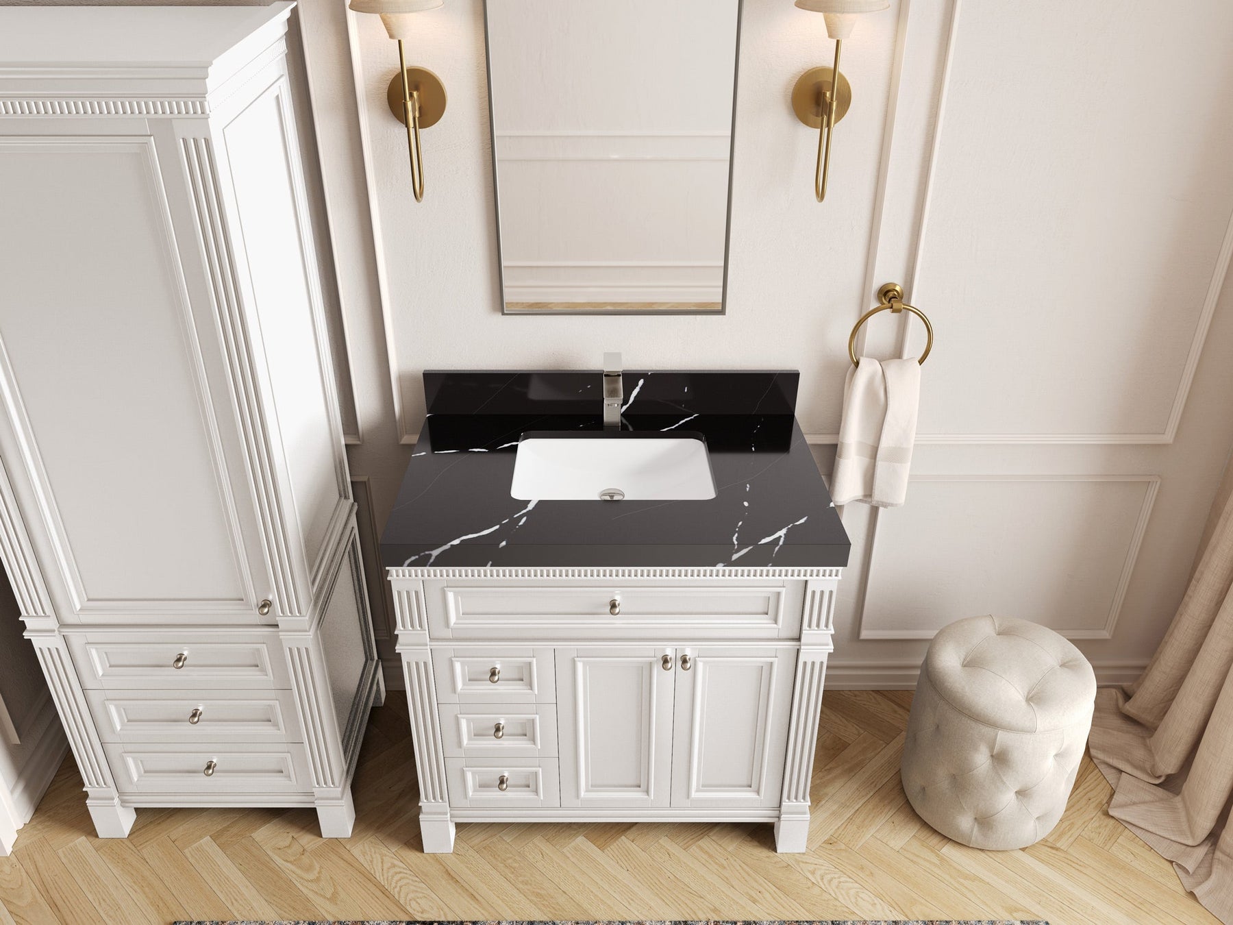 1. Elegant Design: The Paris Cabinet Collection features a classic yet contemporary design, with intricate molding and luxurious finishes that add a touch of sophistication to any bathroom.