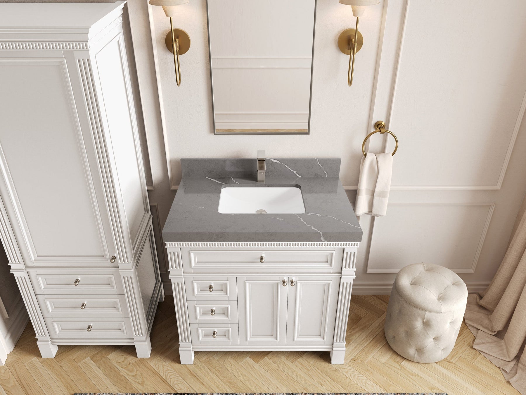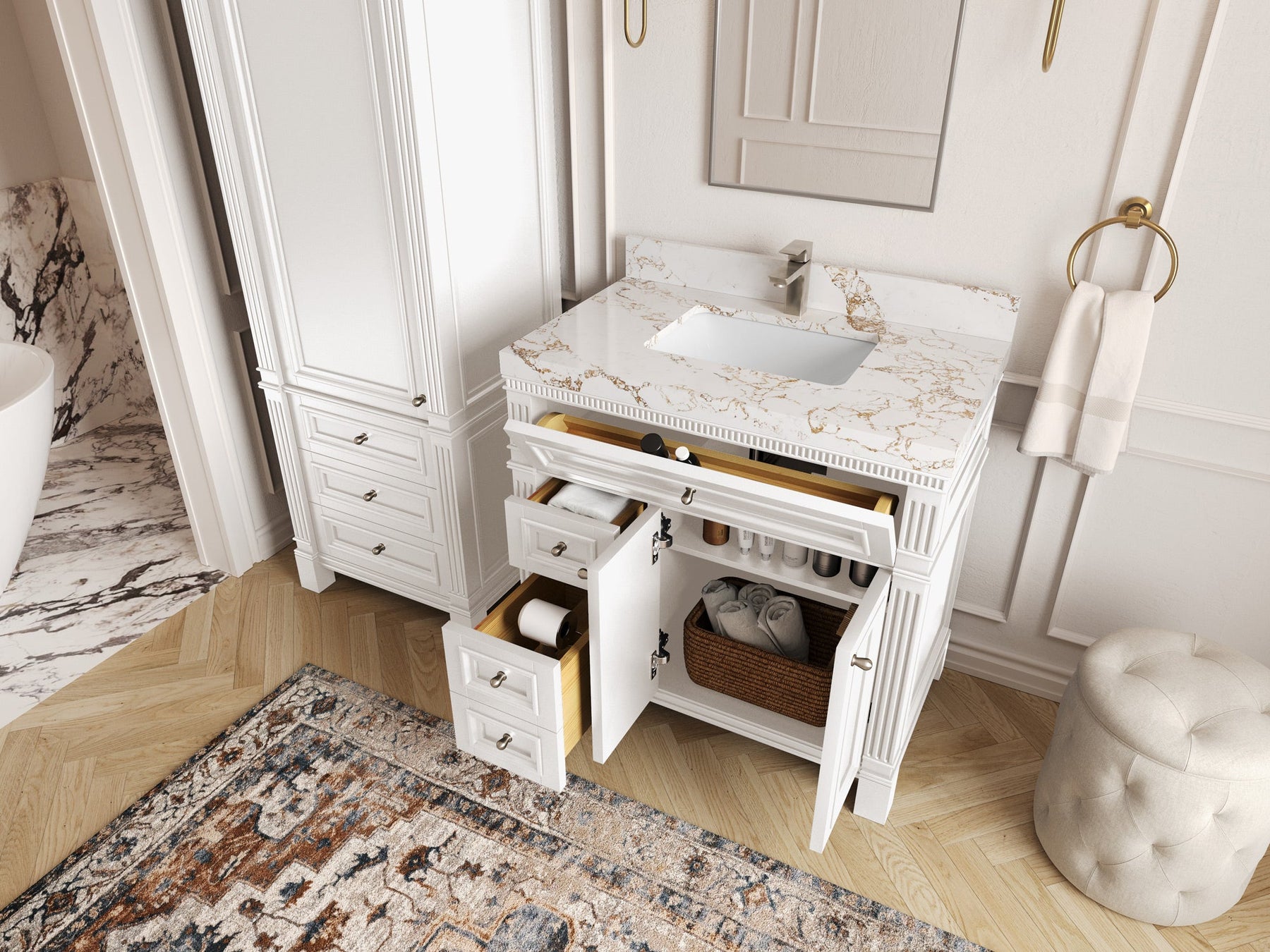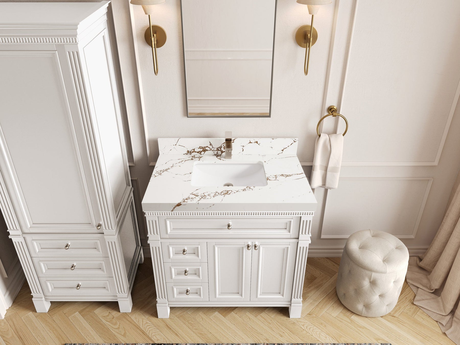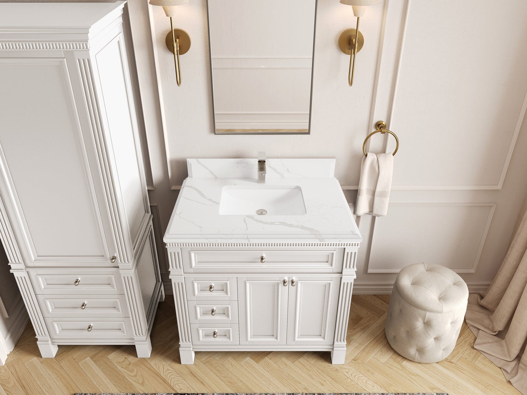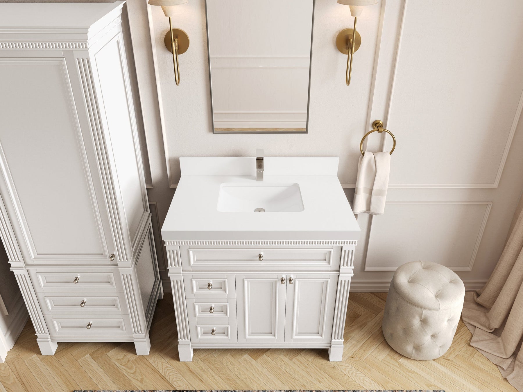 1. Elegant Design: The Paris Cabinet Collection features a classic yet contemporary design, with intricate molding and luxurious finishes that add a touch of sophistication to any bathroom.