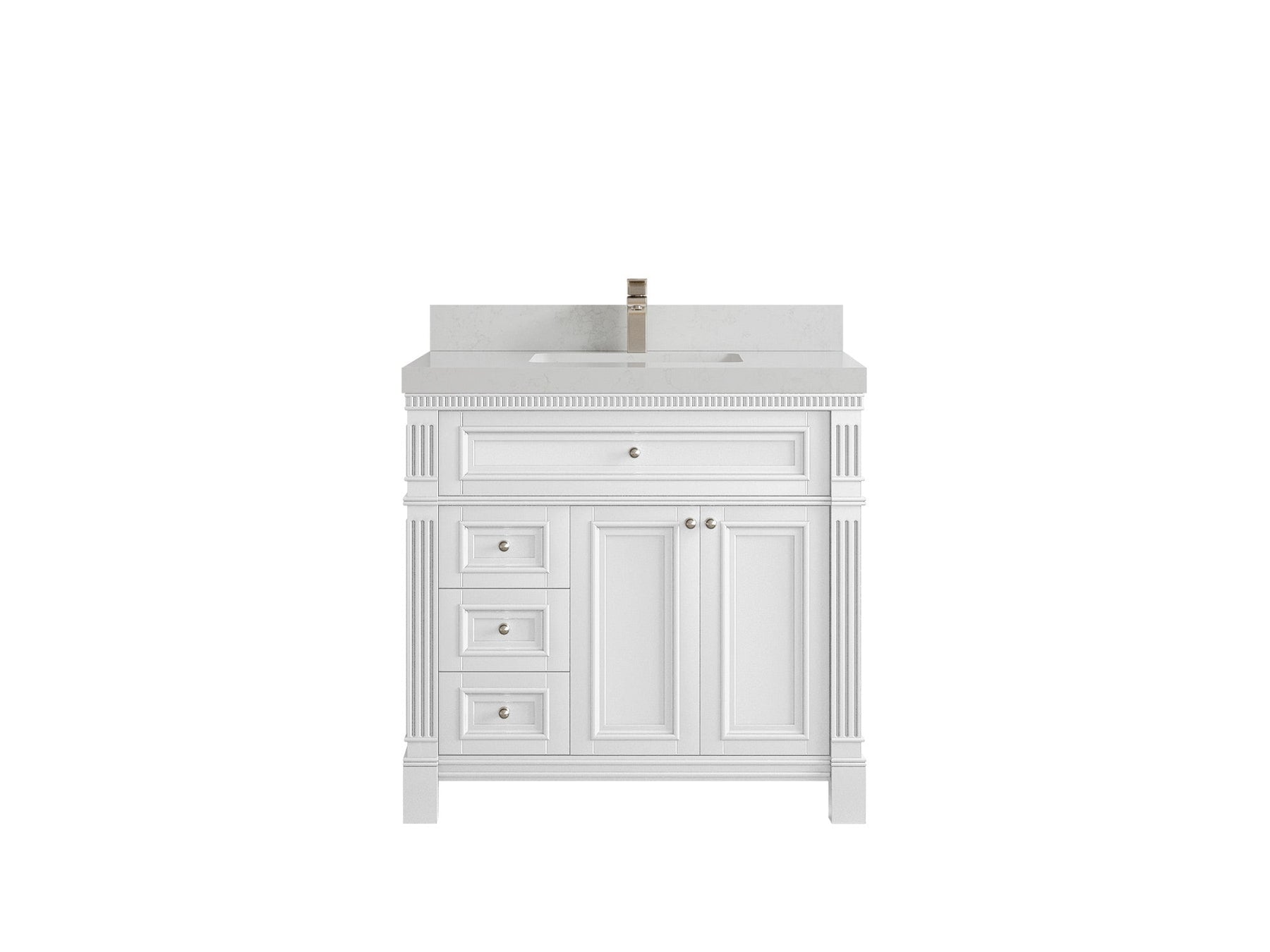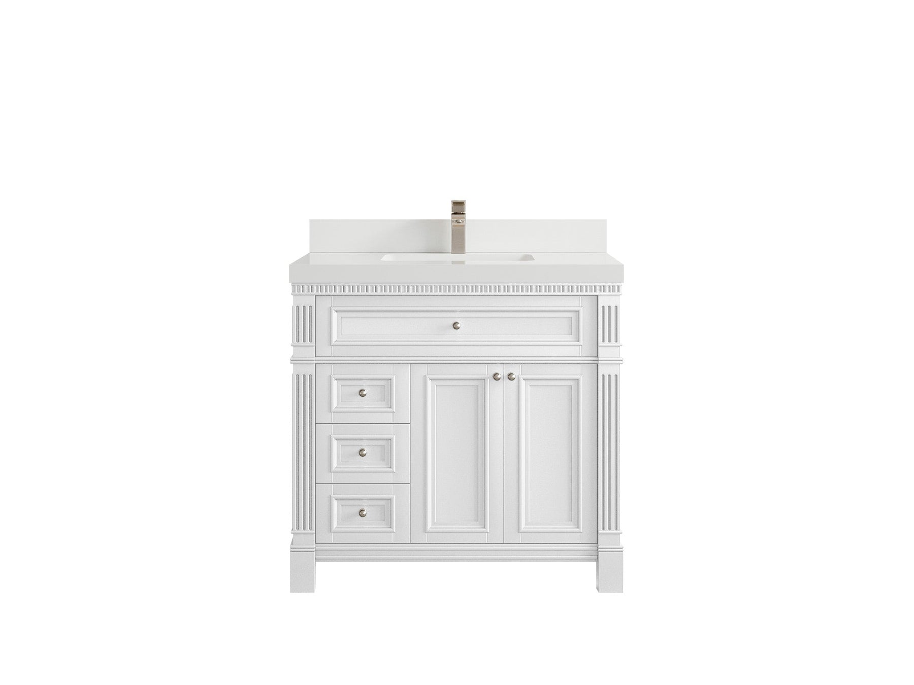Paris 36 in. W x 22 in. D Center Sink Bathroom Vanity in  White with Countertop - Dimension