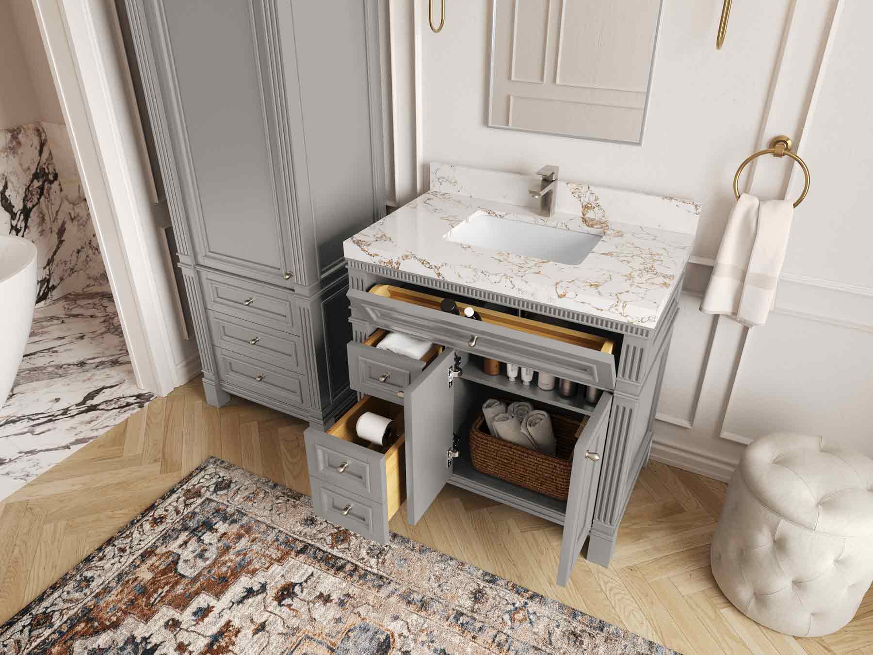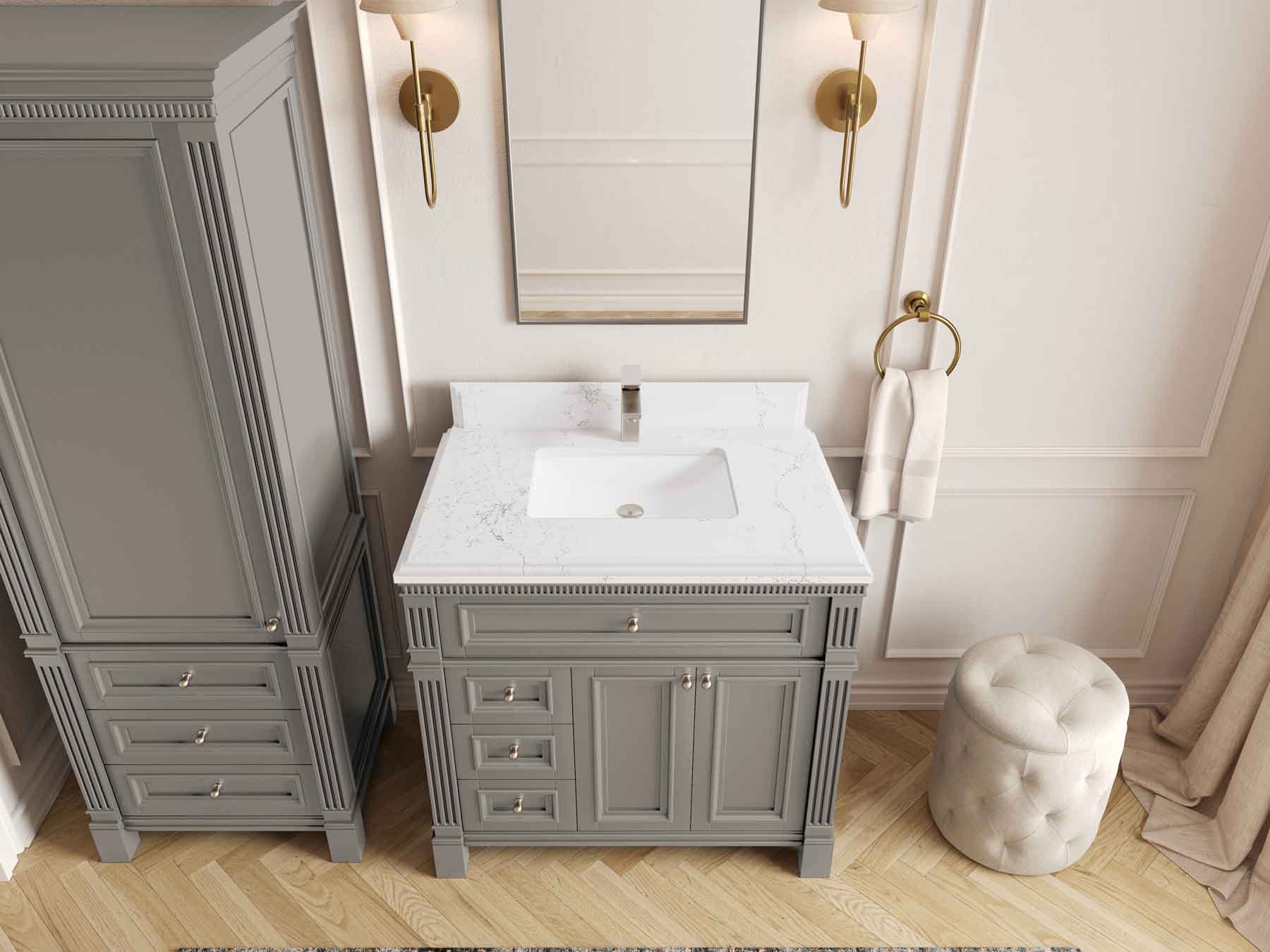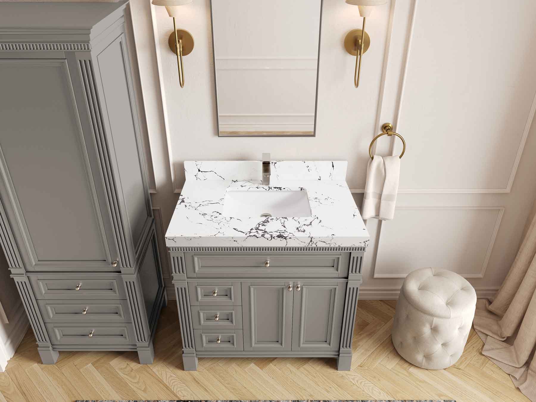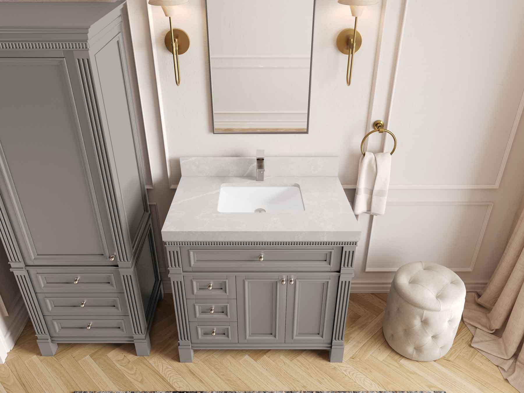 1. Elegant Design: The Paris Cabinet Collection features a classic yet contemporary design, with intricate molding and luxurious finishes that add a touch of sophistication to any bathroom.