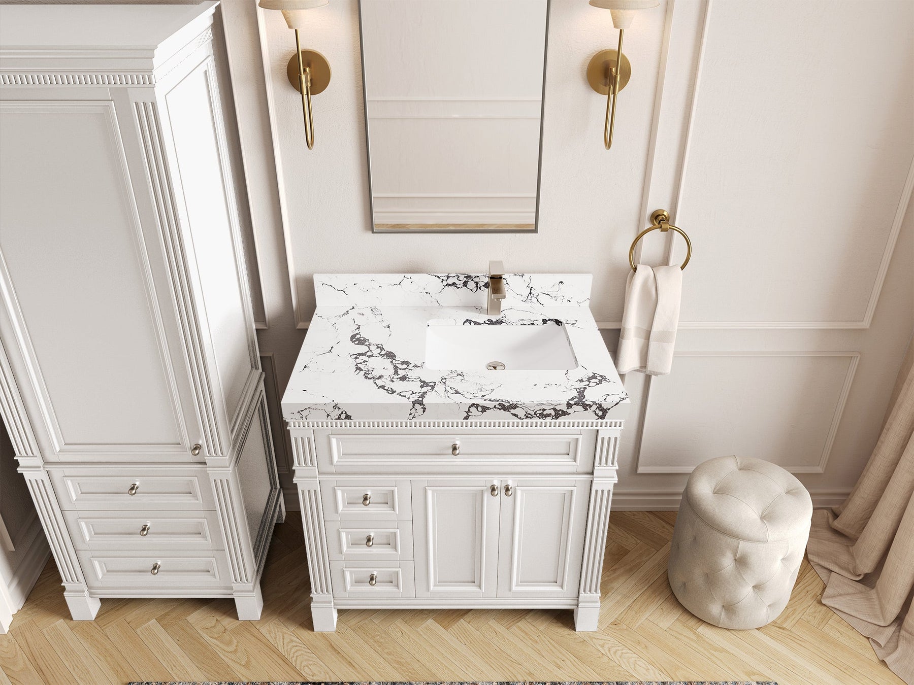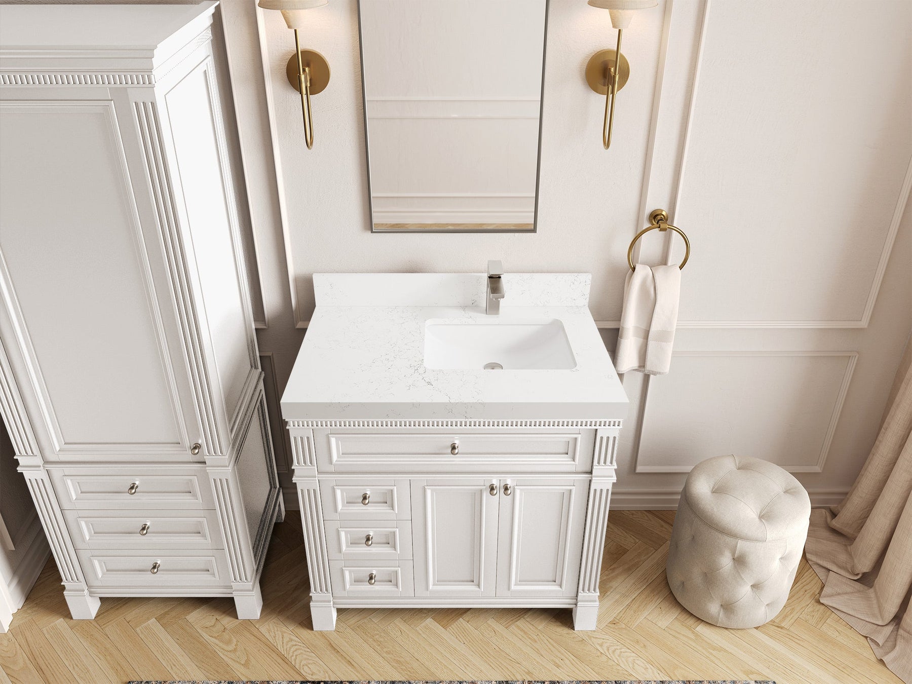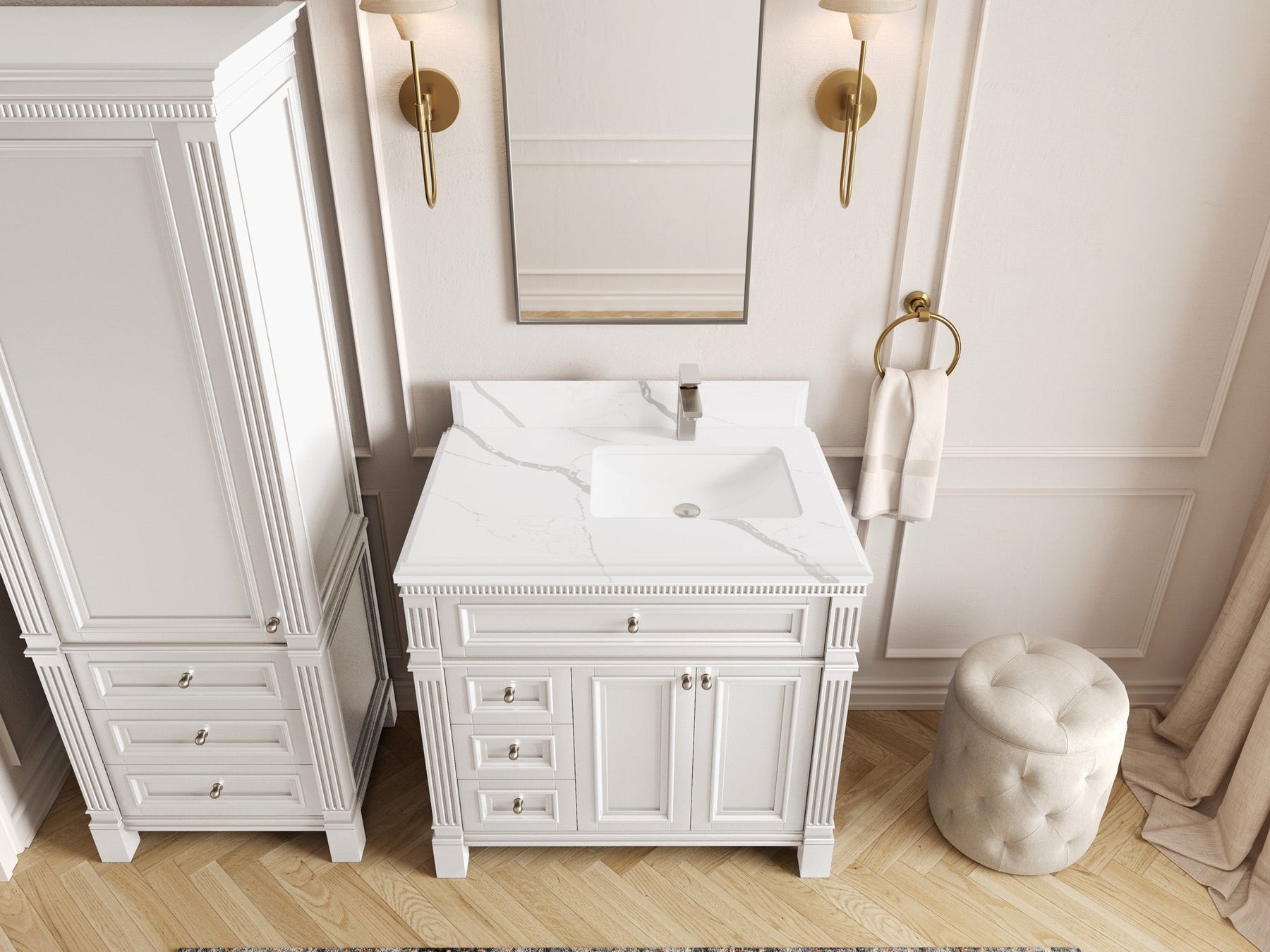 Paris 36 in. W x 22 in. D Right Offset Sink Bathroom Vanity in  White with Countertop - Dimension