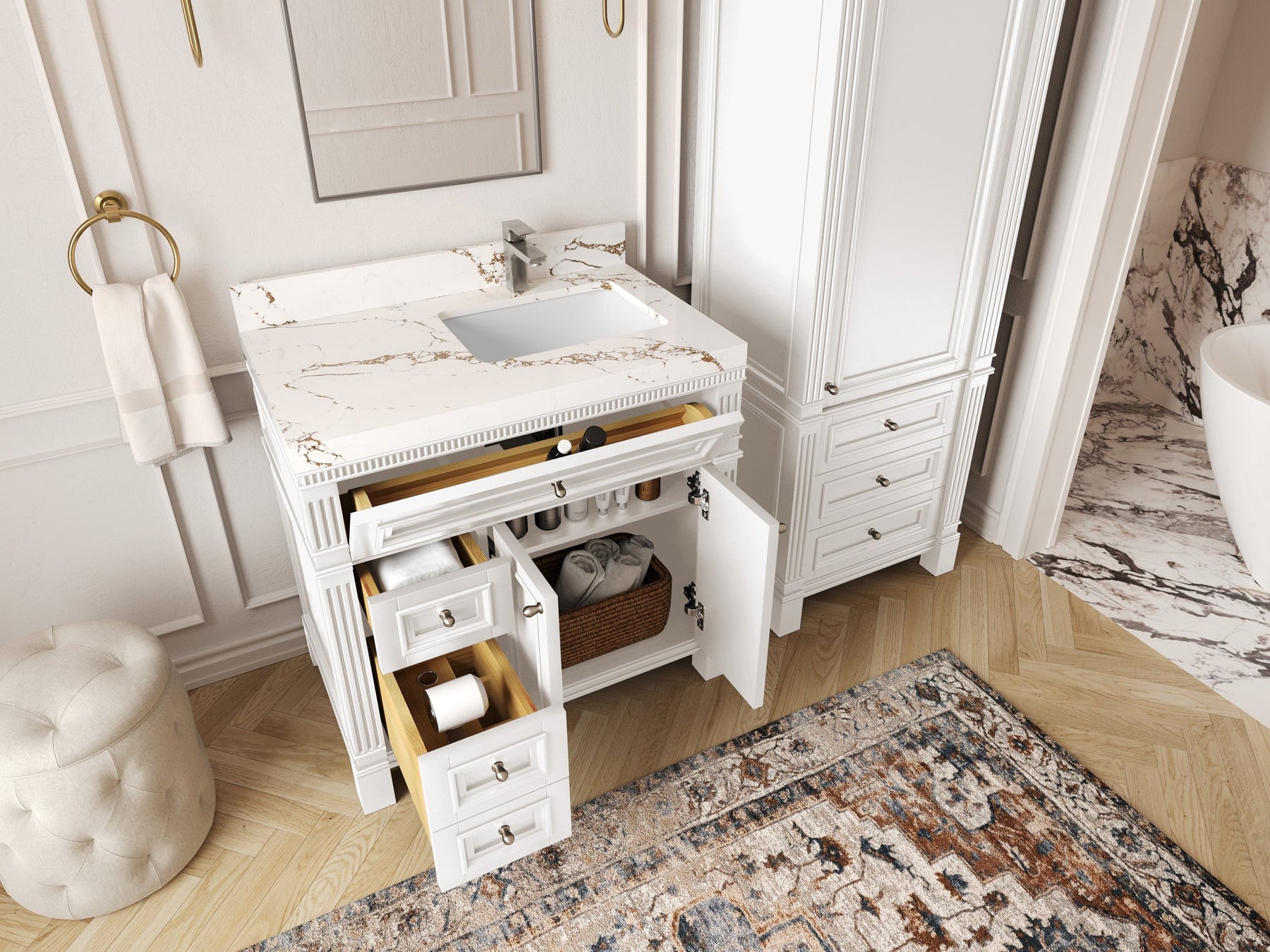 Paris 36 in. W x 22 in. D Right Offset Sink Bathroom Vanity | White