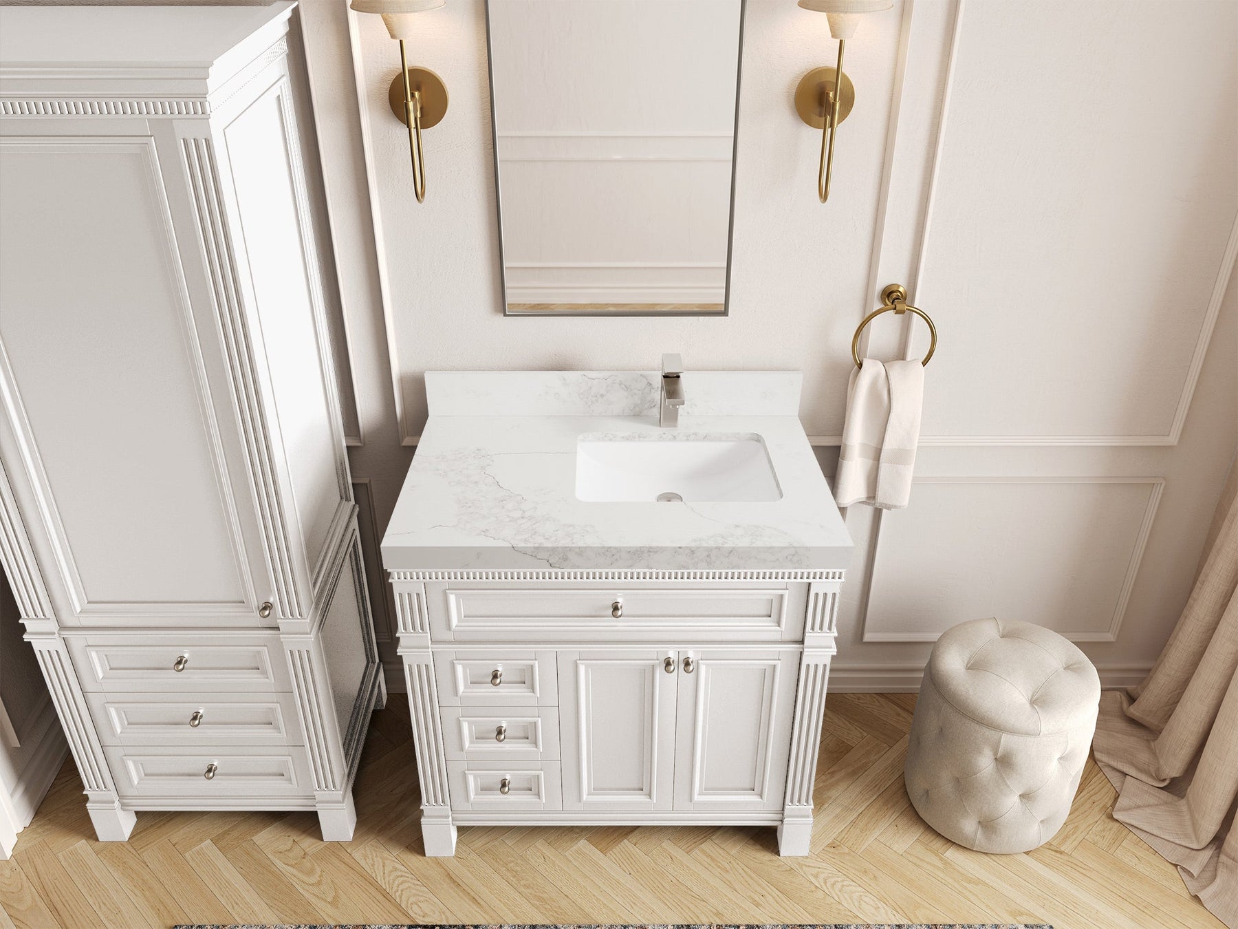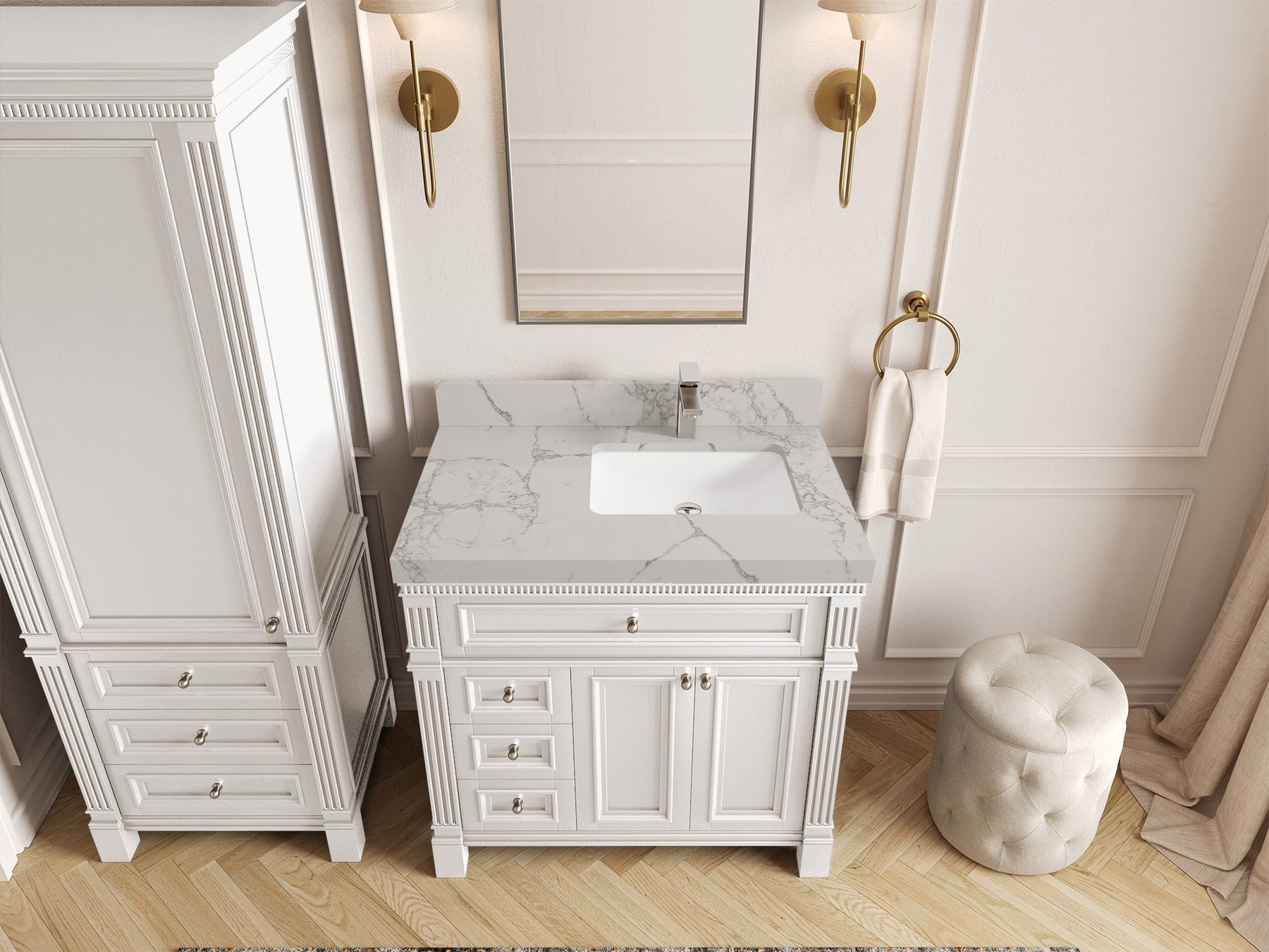2. Durable Countertop Options - Choose from our range of bathroom vanities with quartz countertop to perfectly match your bathroom's style and color scheme. Our countertops are designed to withstand daily use and are resistant to scratches, stains, and heat.