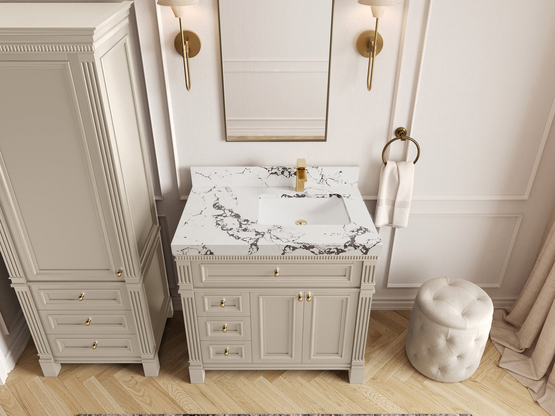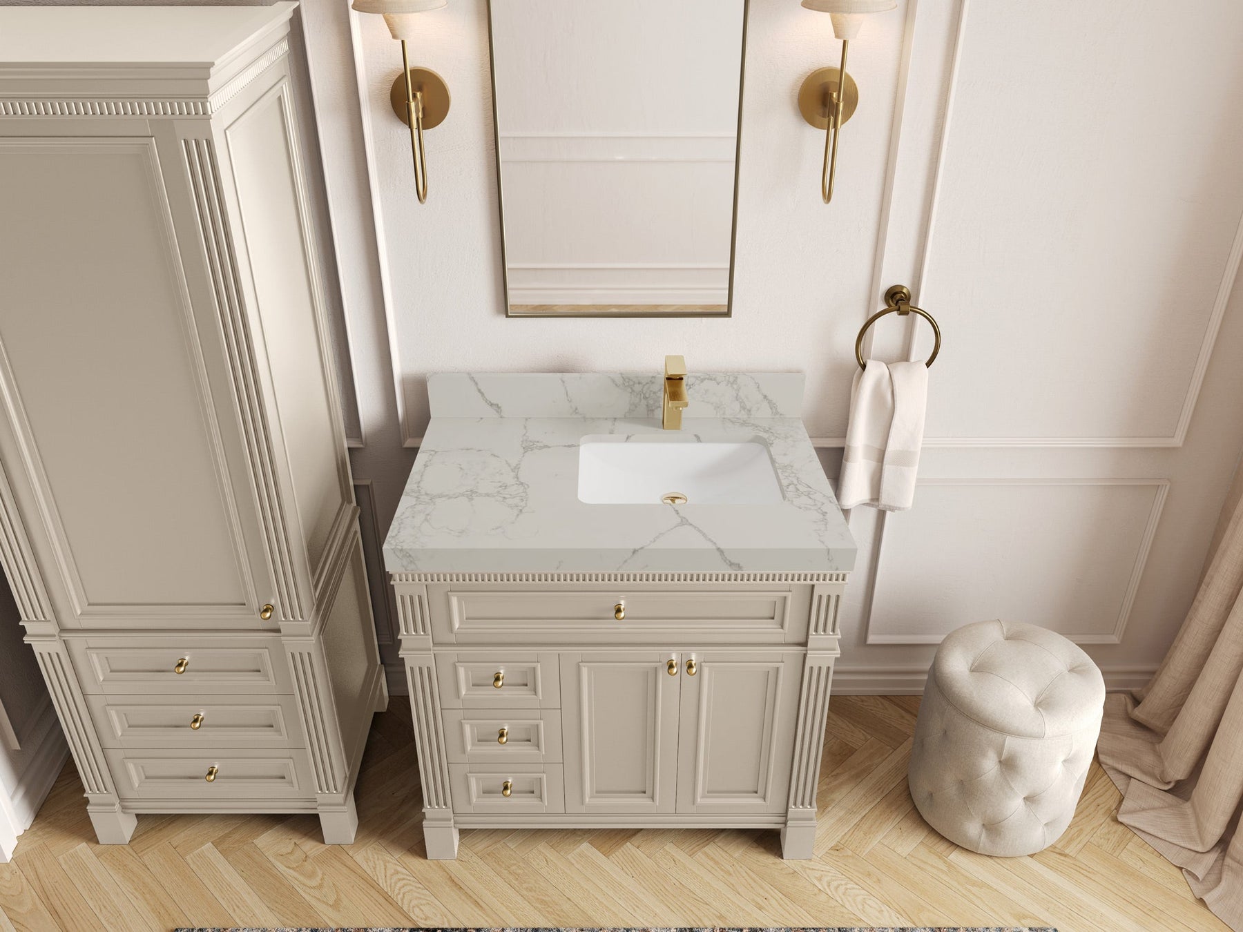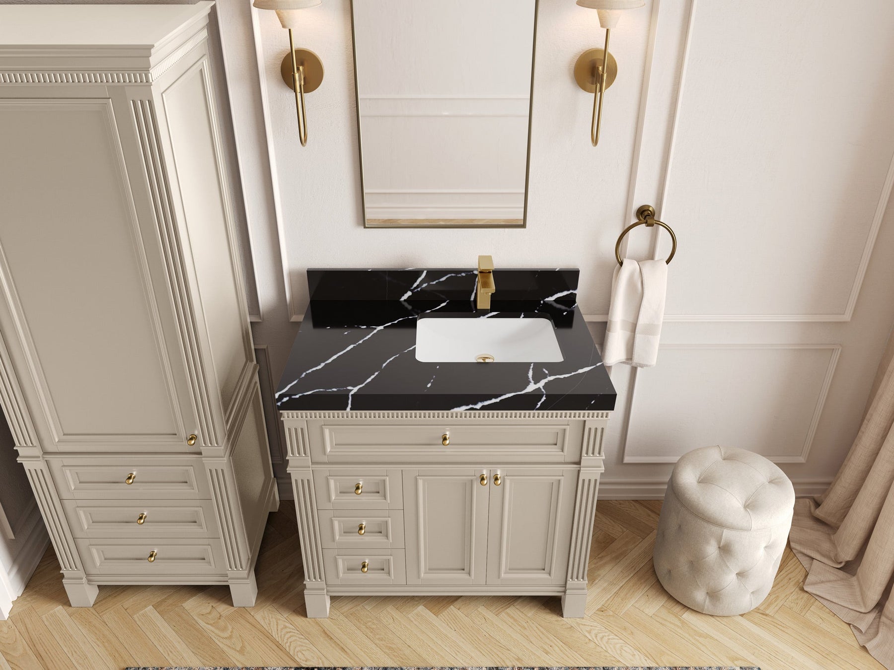 1. Elegant Design: The Paris Cabinet Collection features a classic yet contemporary design, with intricate molding and luxurious finishes that add a touch of sophistication to any bathroom.