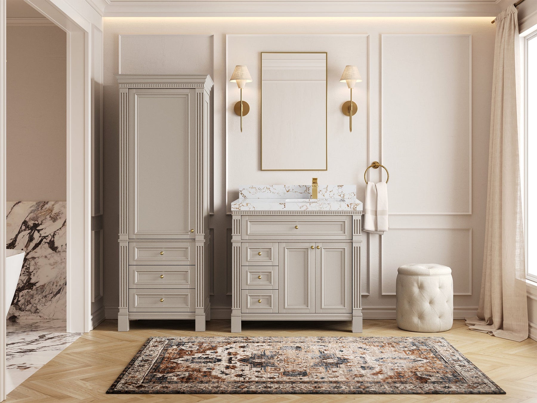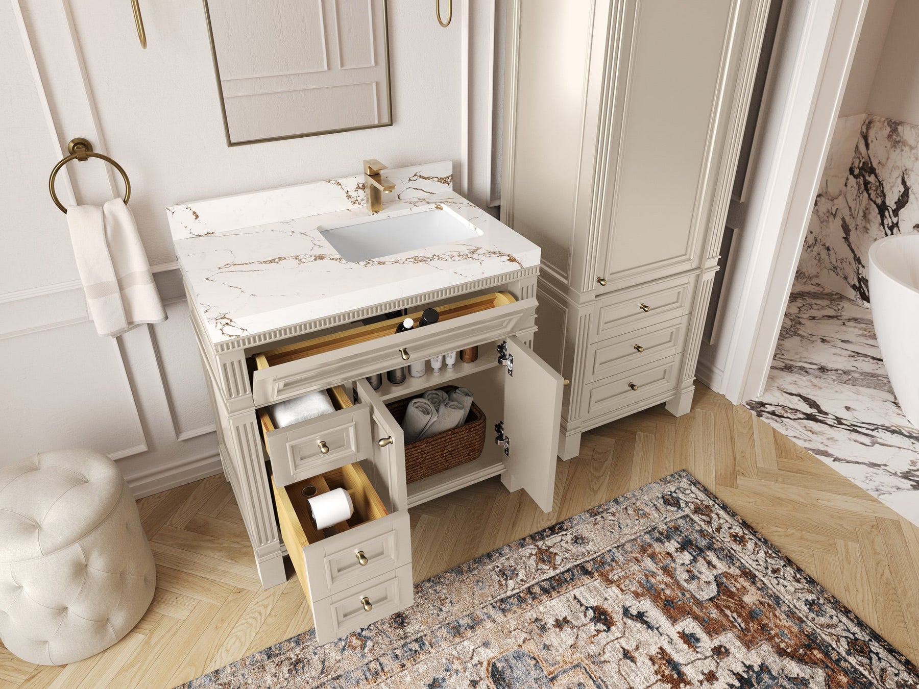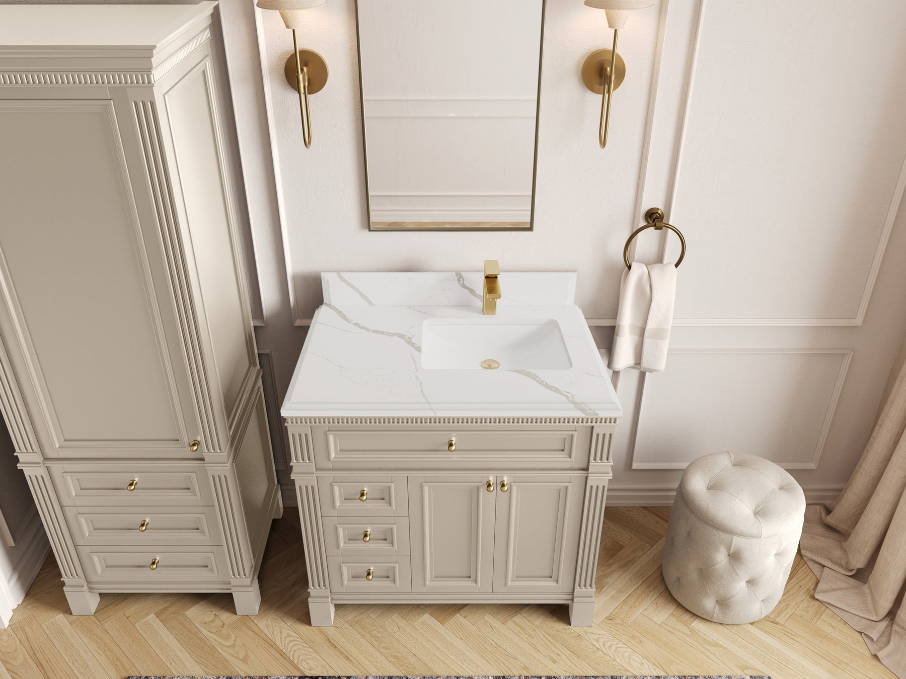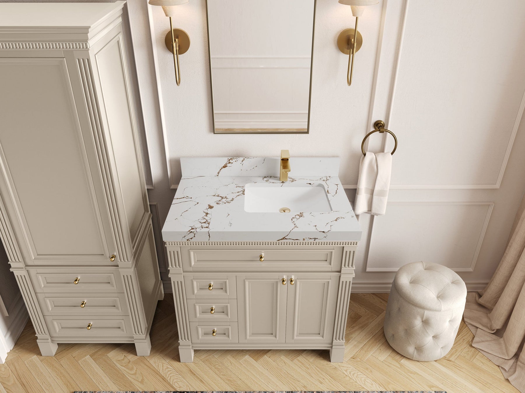 1. Elegant Design: The Paris Cabinet Collection features a classic yet contemporary design, with intricate molding and luxurious finishes that add a touch of sophistication to any bathroom.