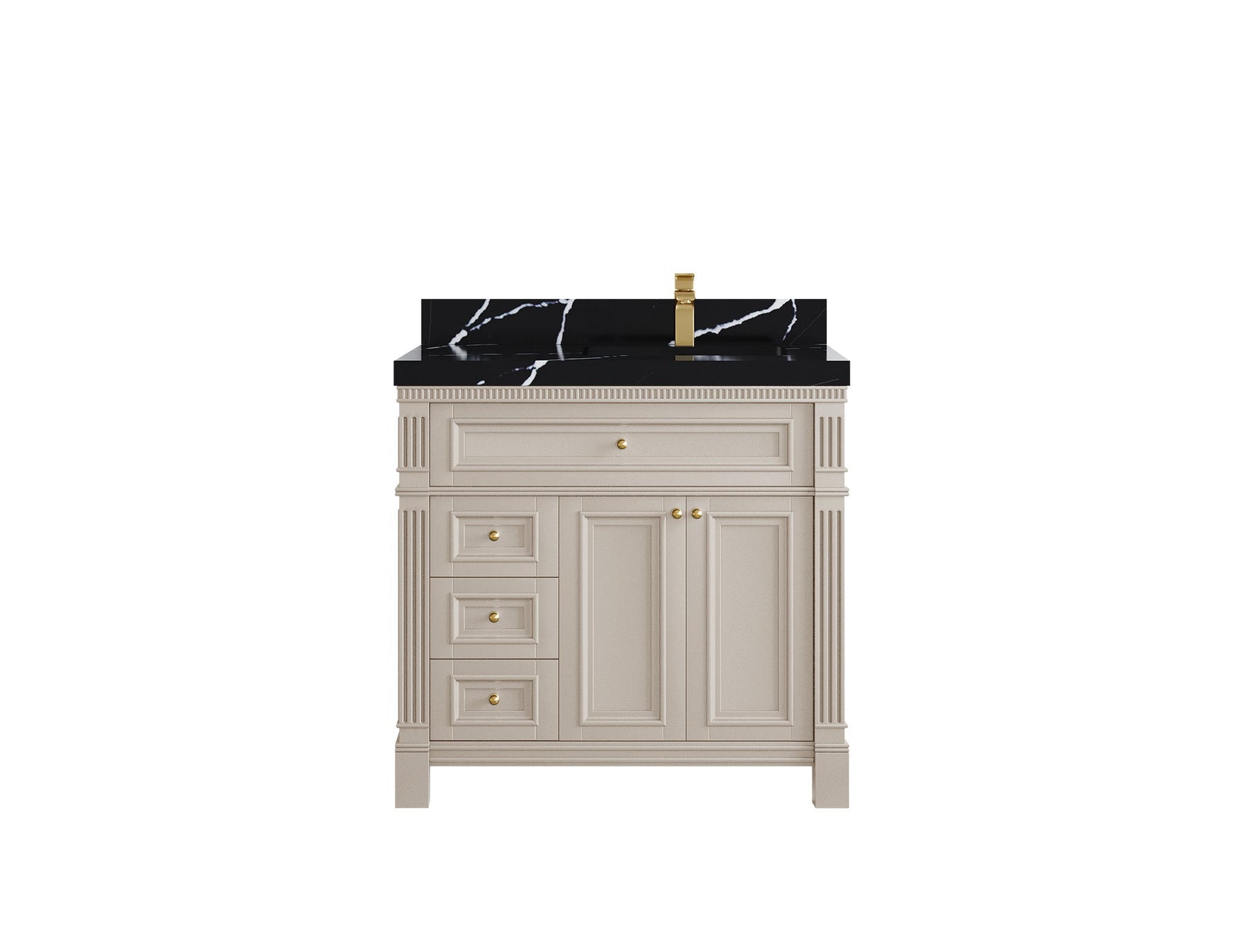 Includes cabinet base only. Countertop, sink, and faucet are not included.