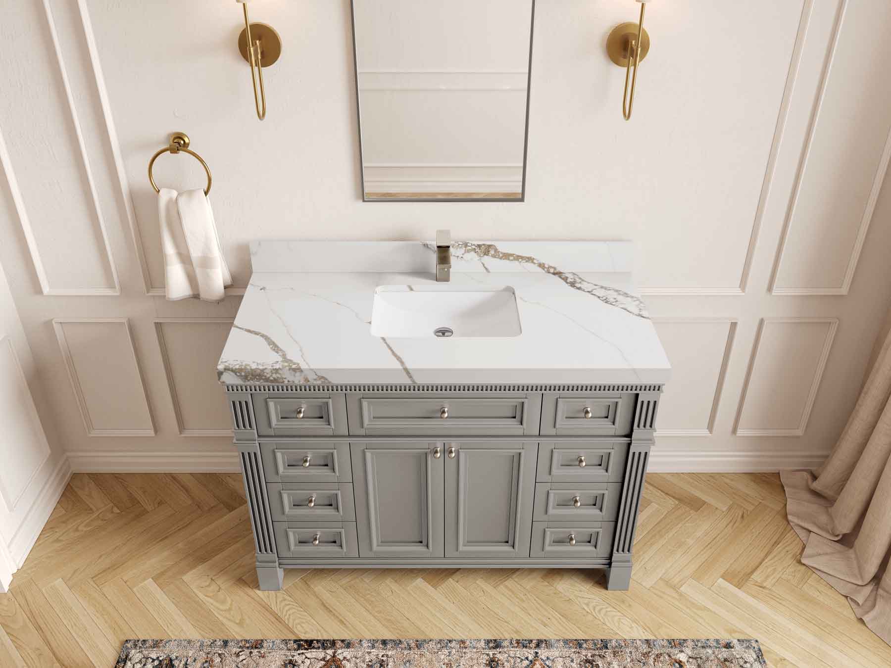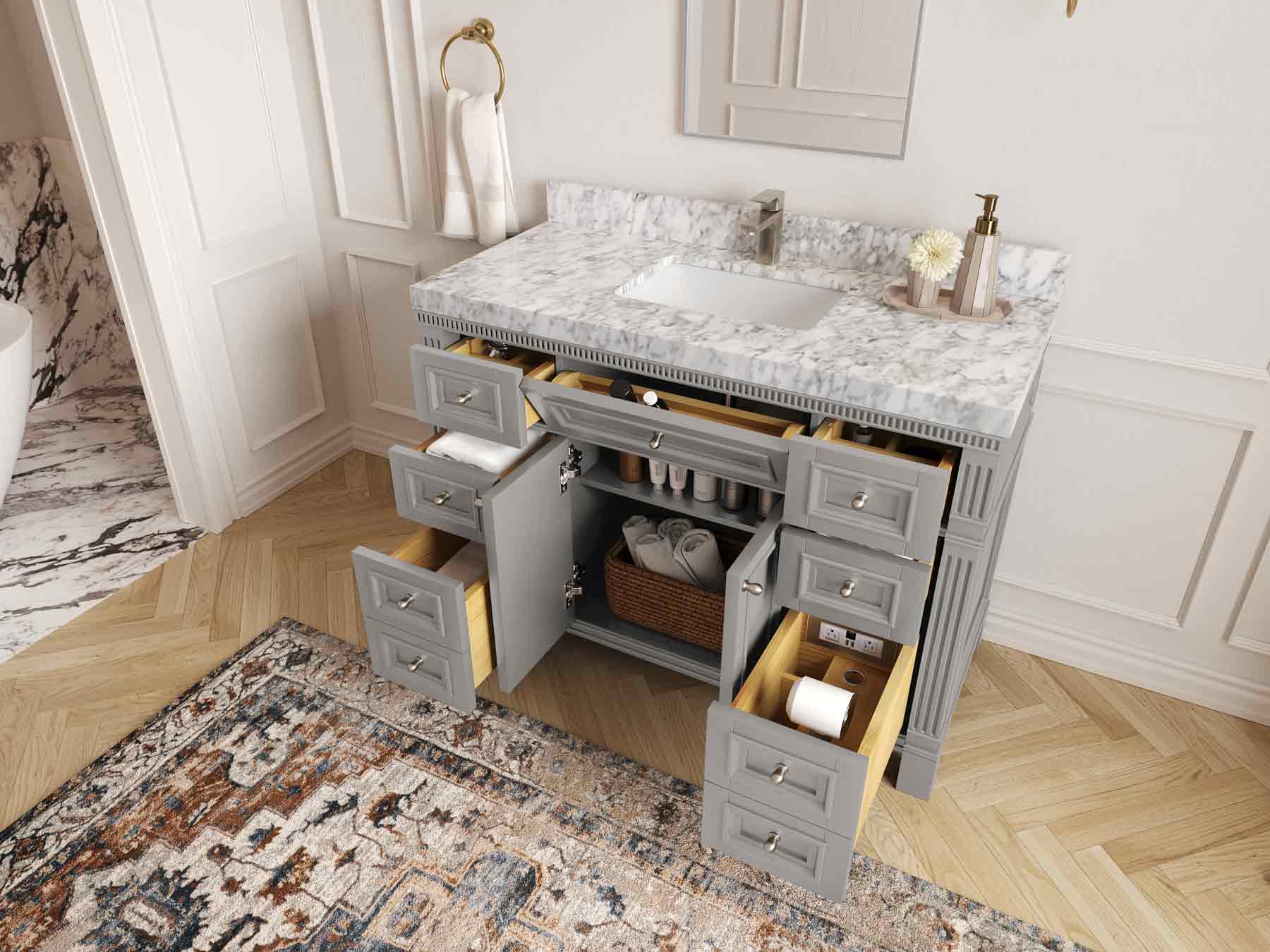 1. Elegant Design: The Paris Cabinet Collection features a classic yet contemporary design, with intricate molding and luxurious finishes that add a touch of sophistication to any bathroom.