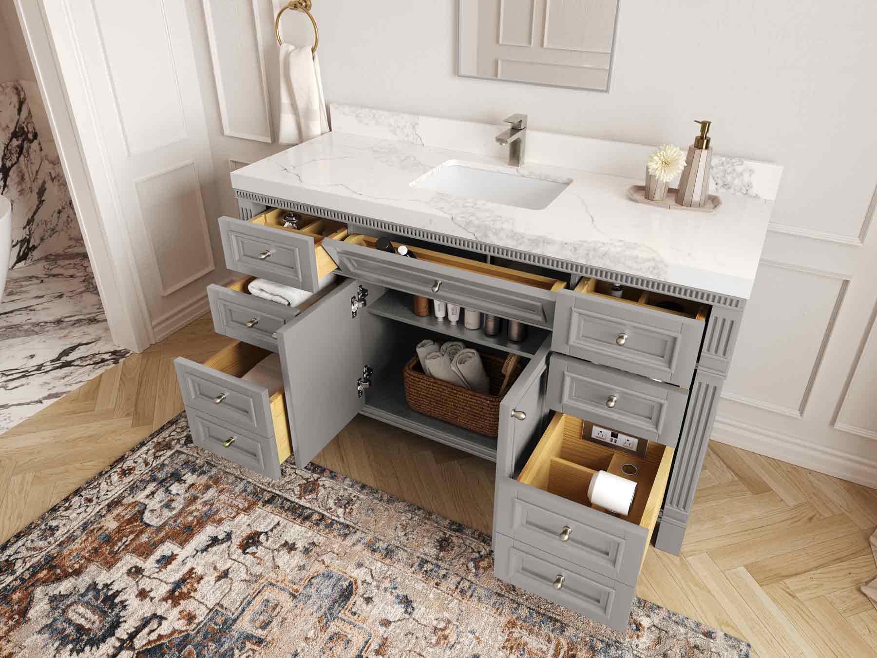 1. Elegant Design: The Paris Cabinet Collection features a classic yet contemporary design, with intricate molding and luxurious finishes that add a touch of sophistication to any bathroom.