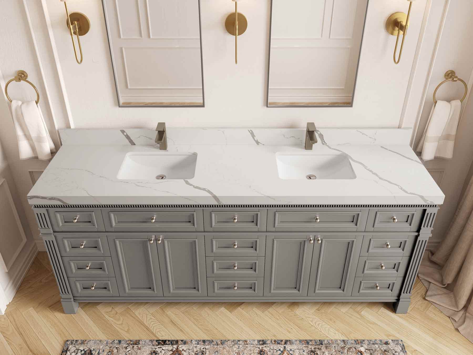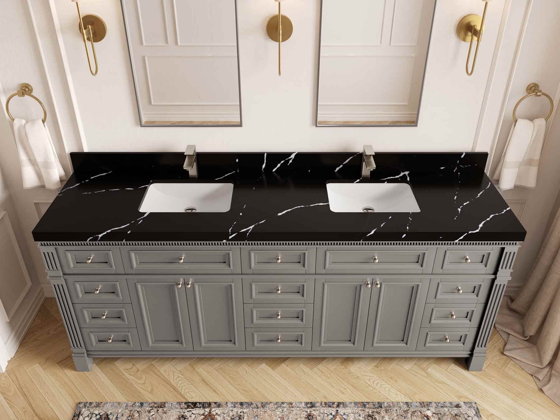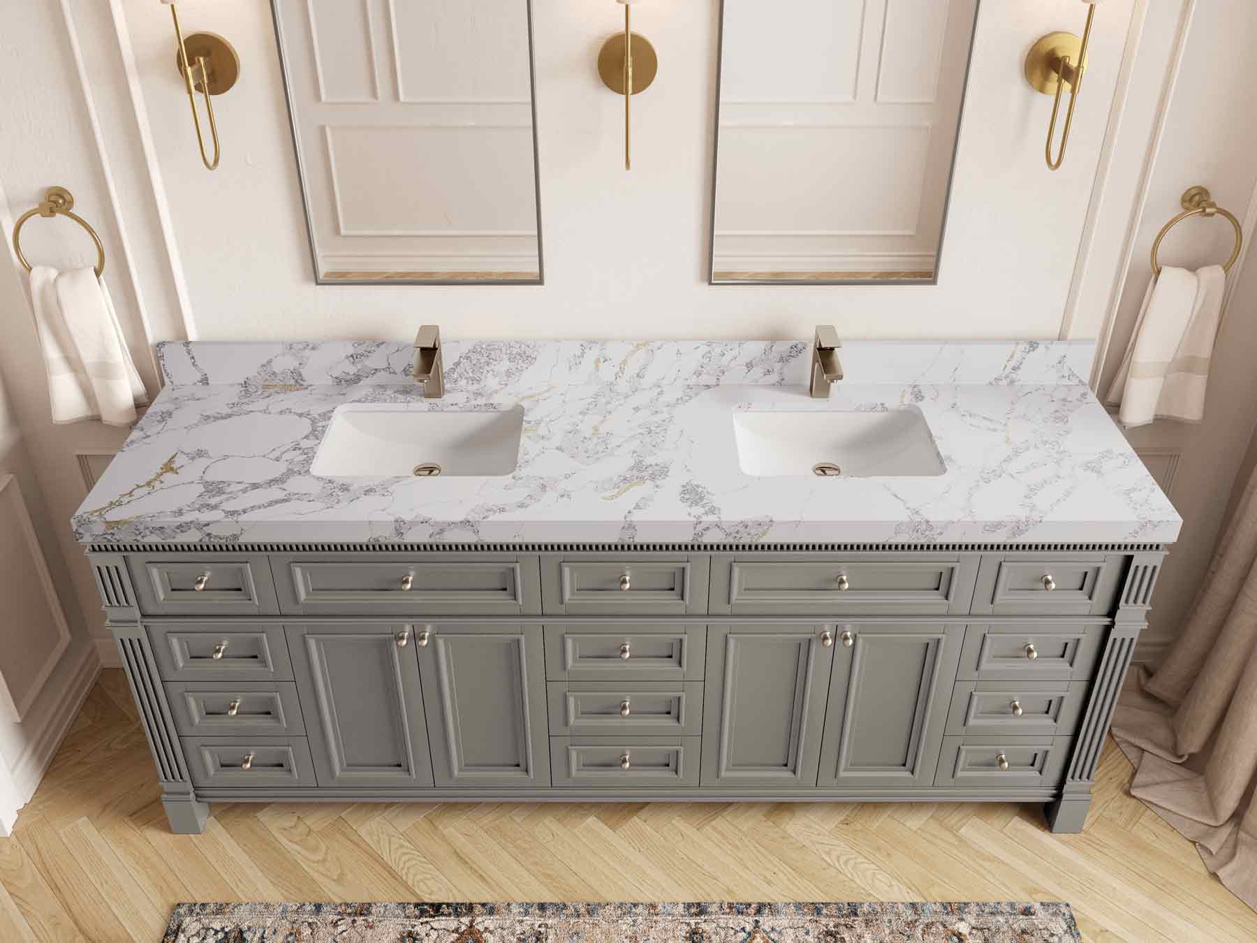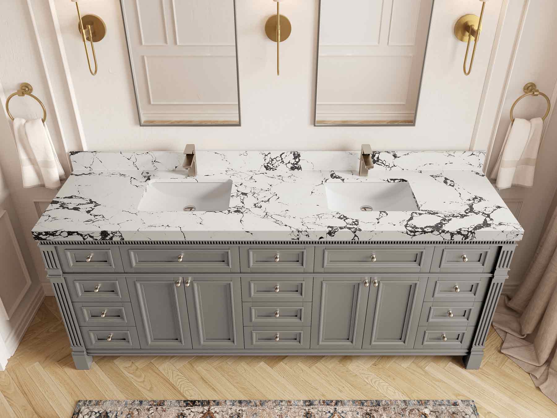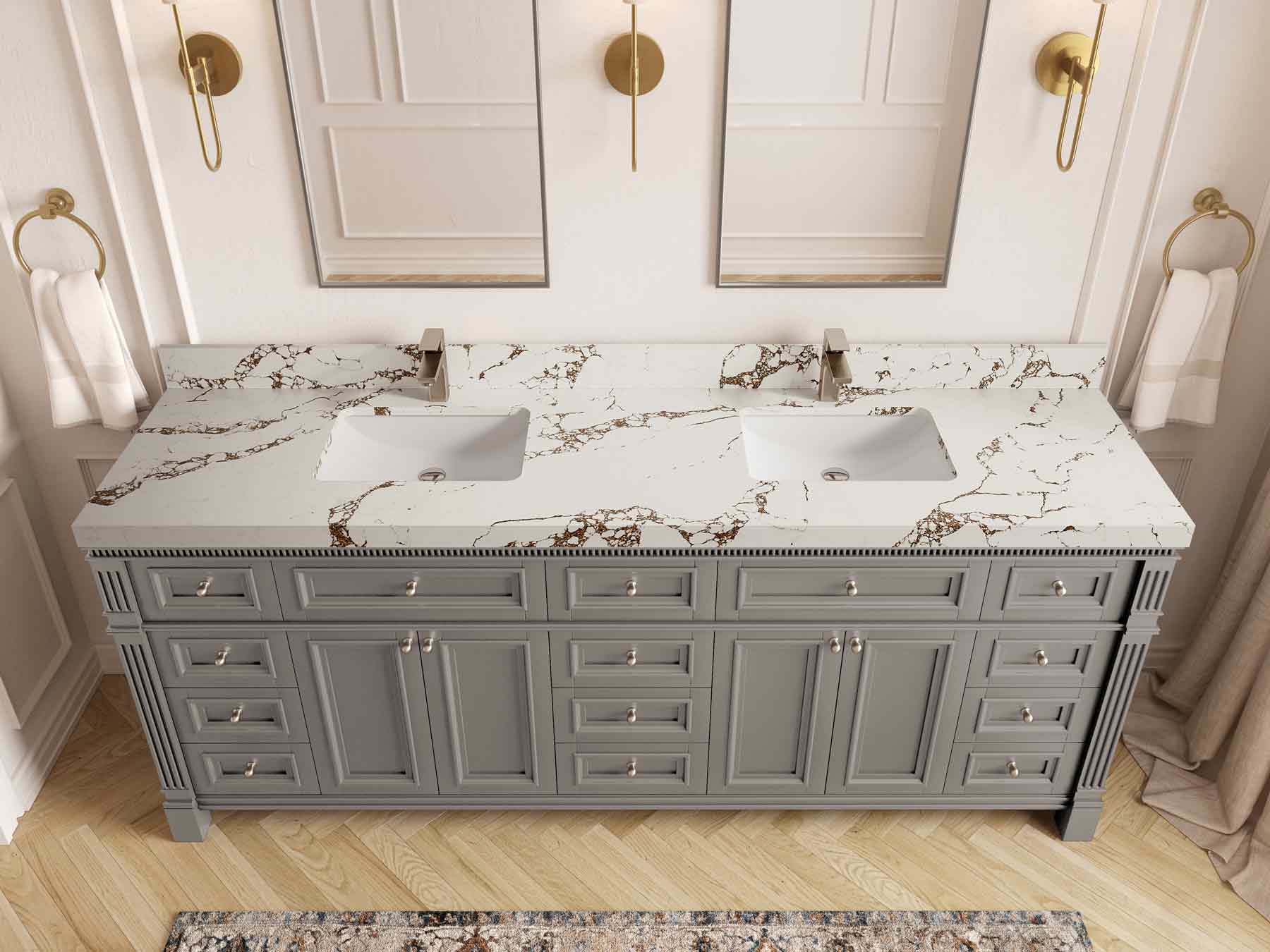 Vanity Countertops options: For Calacatta Laza Quartz, Empira White Quartz, Pure White Quartz we have 2 options Straight-Mitered Edge and Double Cove Edge; For Calacatta Nuvo Quartz, Carrara Marble, Carrara Quartz, Piatra Gray Quartz, Calacatta Black, Calacatta Gold, Venatino Quartz, Pearl Light Gray, Viola Brown, Viola Gold, Viola Night, Viola Biagio, Calacatta Sienna, Calacatta Poanazzo we only have Straight - Mitered Edge option.