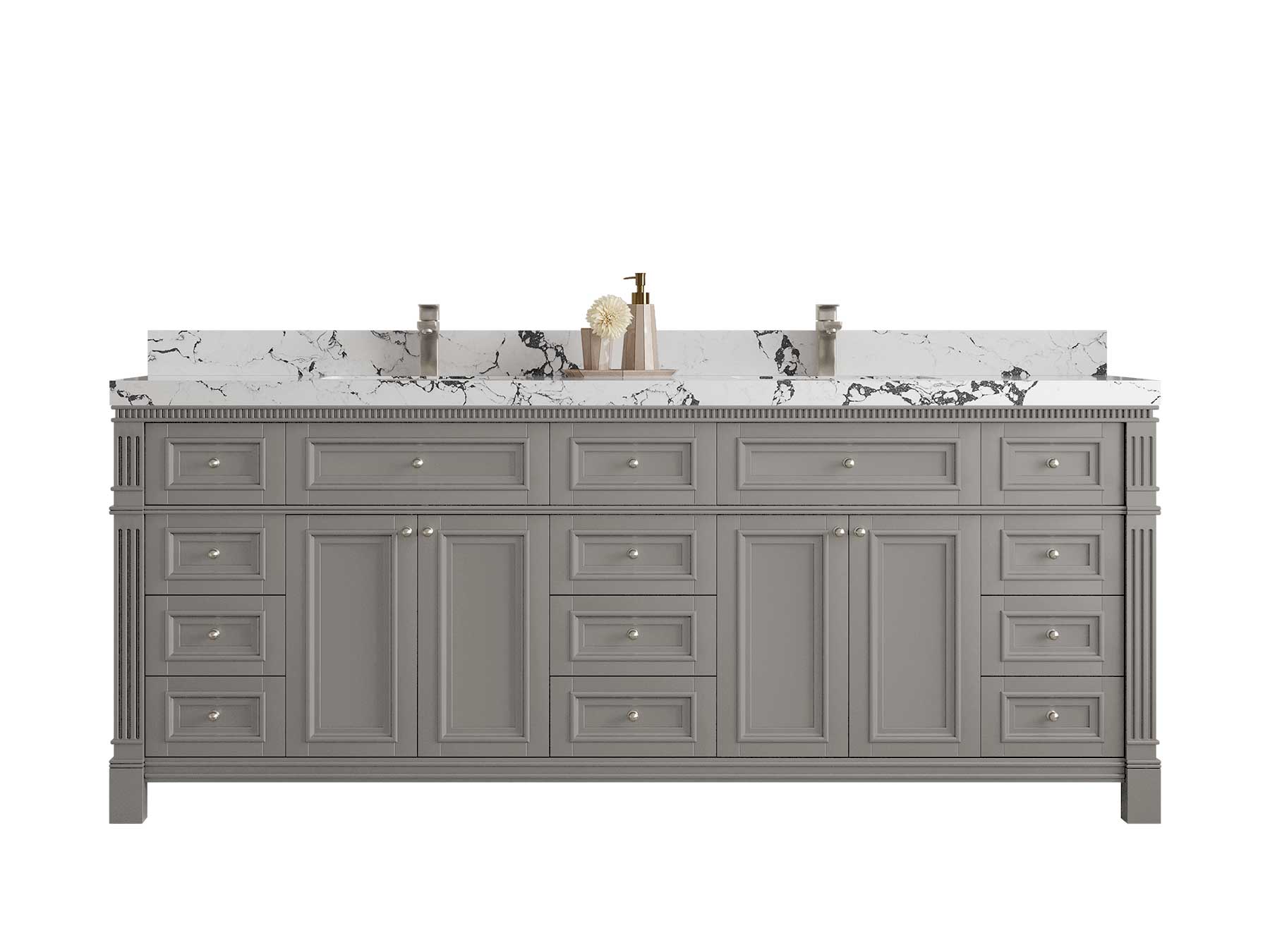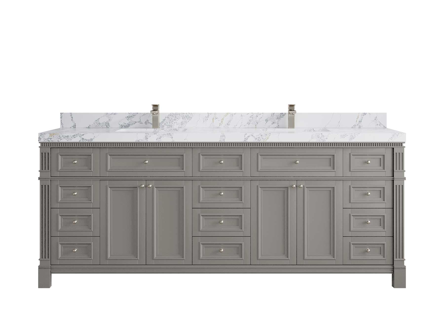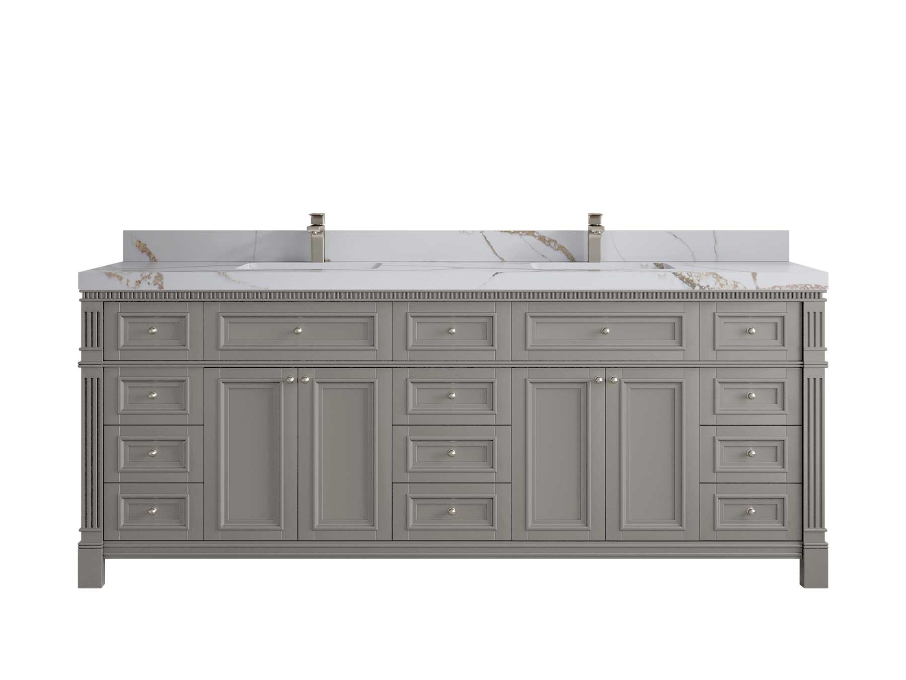 Paris 84 in. W x 22 in. D Double Sink Bathroom Vanity | Elephant Skin Gray