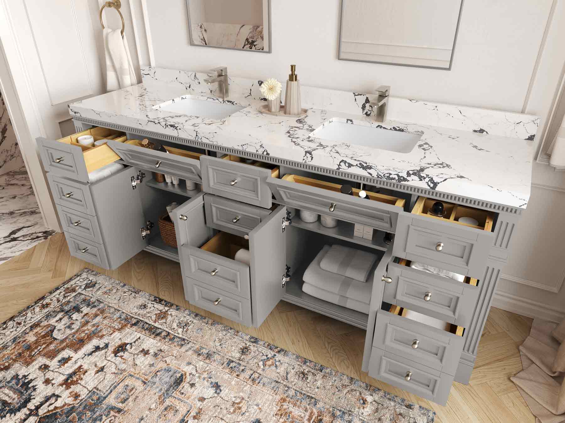 1. Elegant Design: The Paris Cabinet Collection features a classic yet contemporary design, with intricate molding and luxurious finishes that add a touch of sophistication to any bathroom.