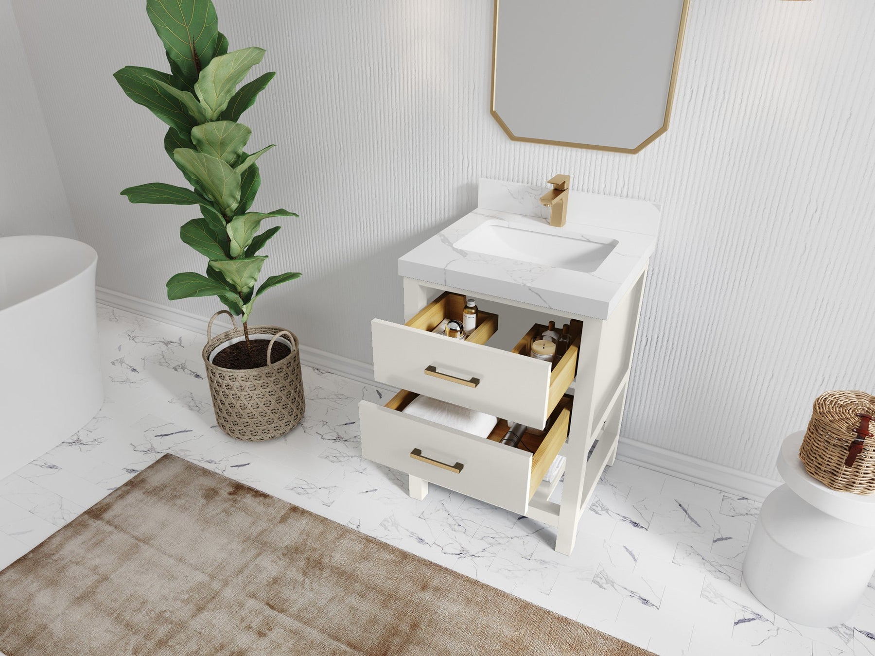 Pairing modern functionality with enduring beauty, Willow Bath & Vanity offers one of the largest selections of bathroom vanities in the U.S.—over 55,000 variations to choose from. Each piece is crafted from premium woods like birch, white oak, teak, and mango, and finished with elegant quartz, marble, or terrazzo countertops.