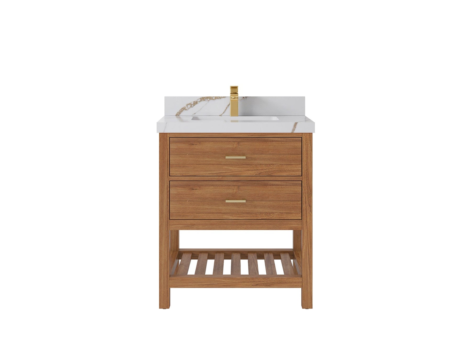 Parker Teak Wood 30 in. W x 22 in. D Single Sink Bathroom Vanity | Golden Teak