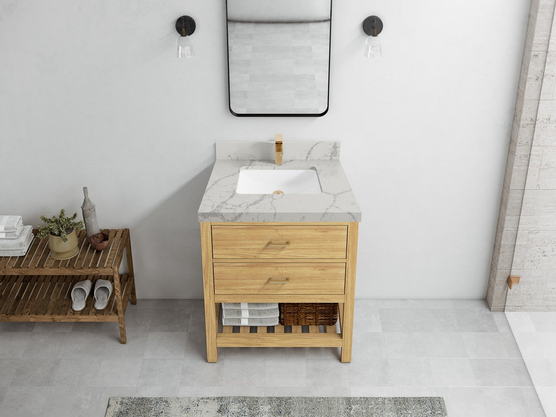 Parker Teak  30 in. W x 22 in. D Single Sink Bathroom Vanity in Light Natural with 2 in Calacatta Laza Quartz Countertop