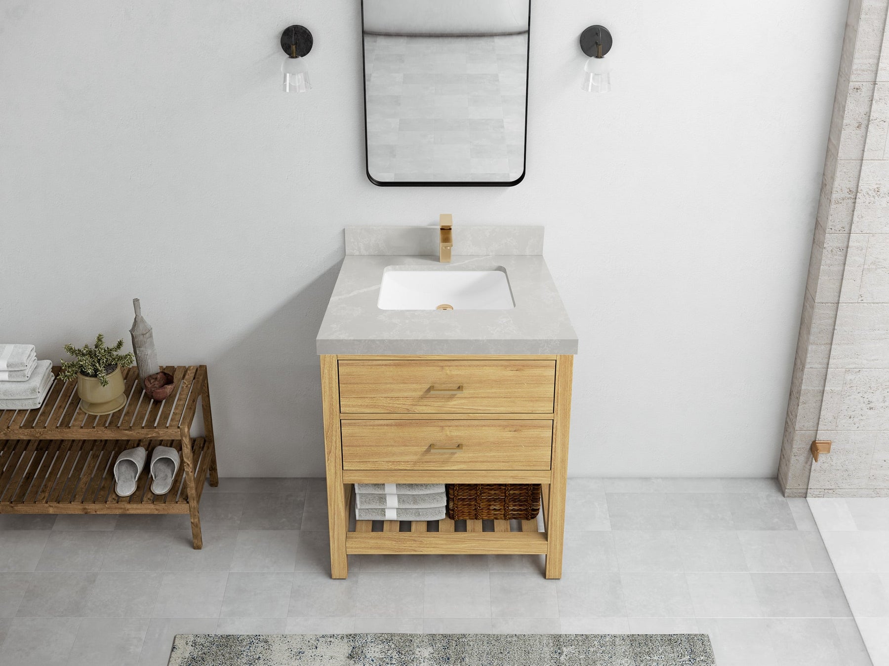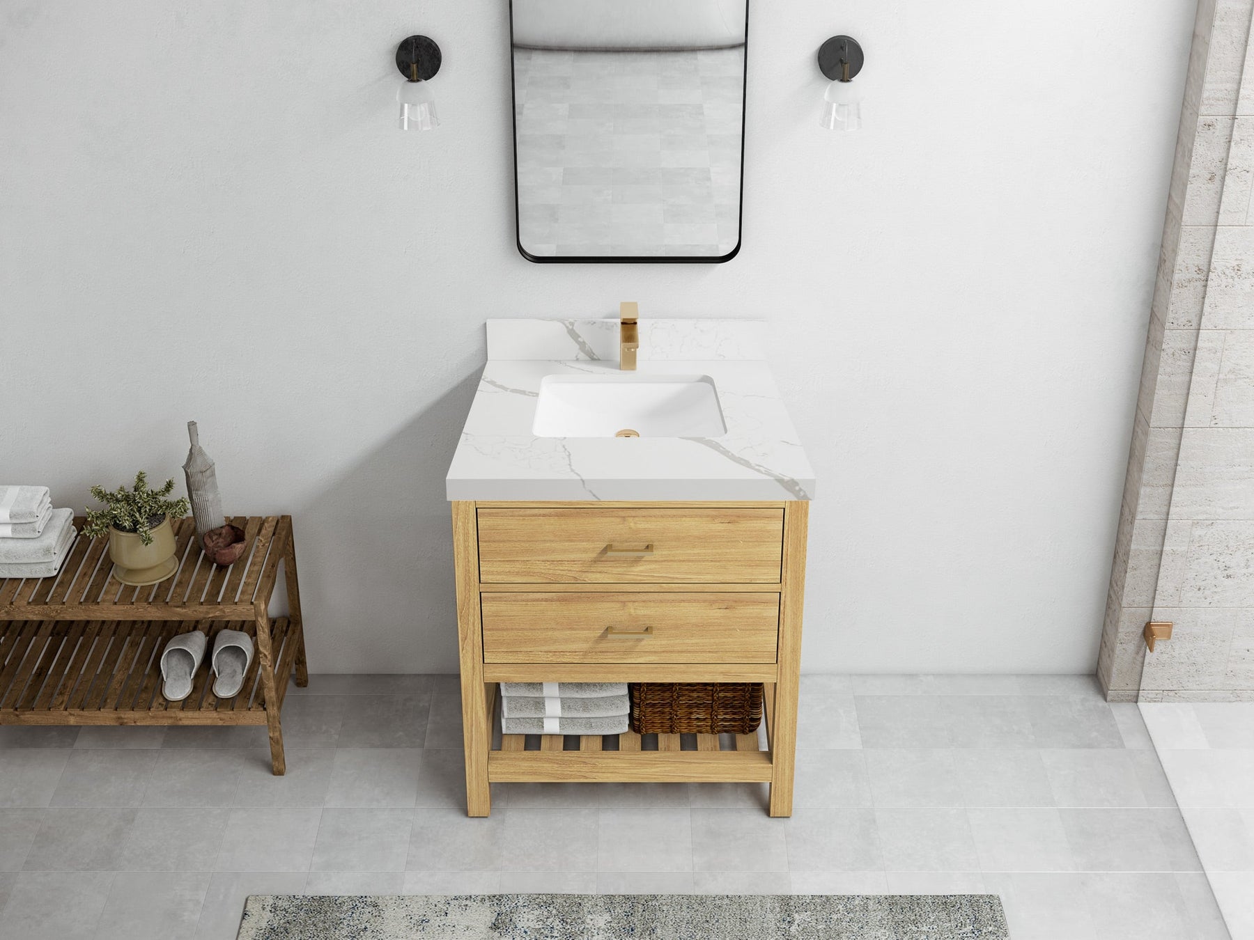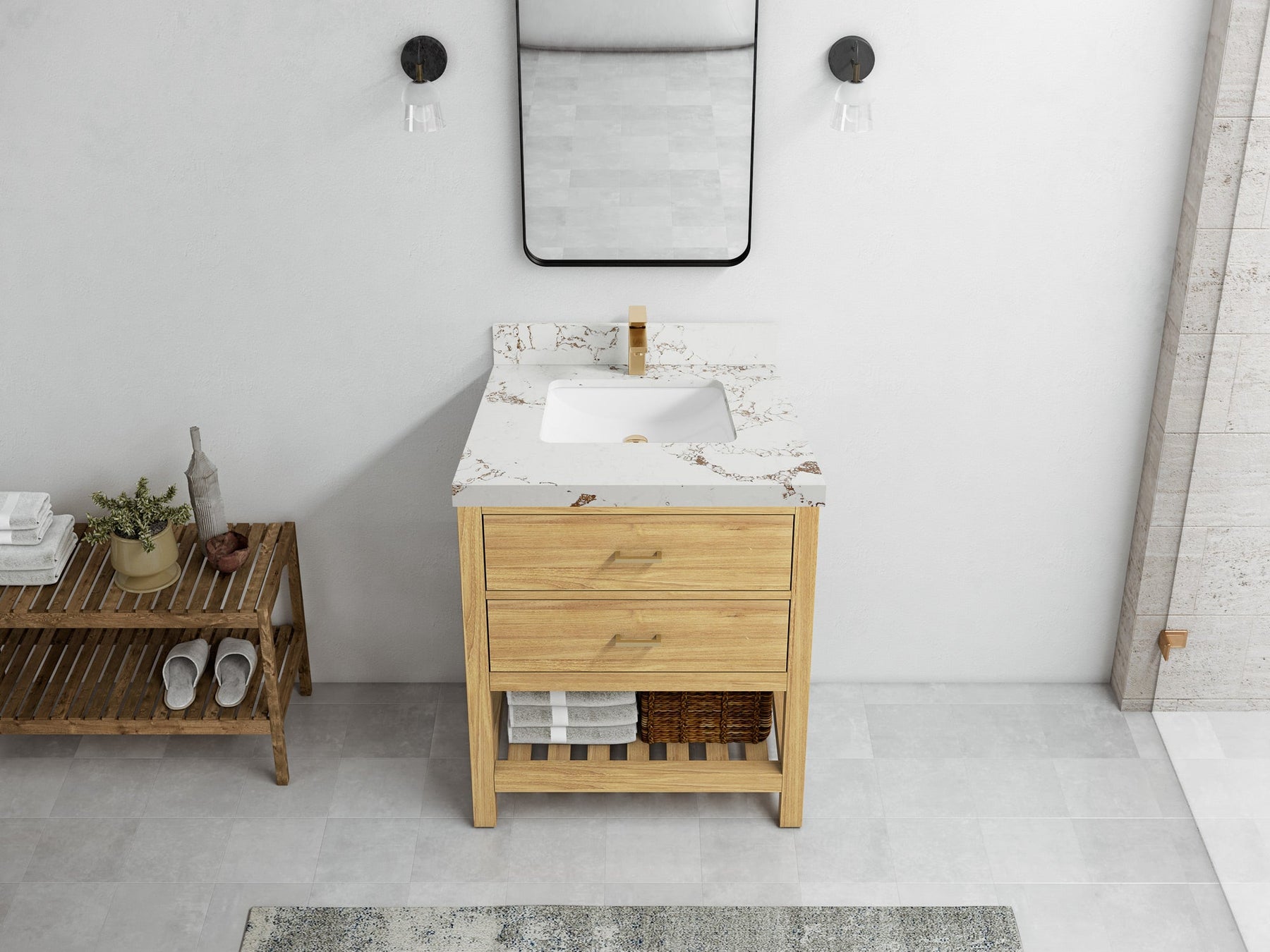 Parker Teak  30 in. W x 22 in. D Single Sink Bathroom Vanity in Light Natural with 2 in Venatino Quartz Countertop