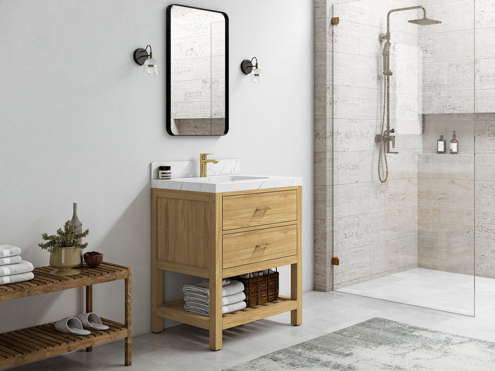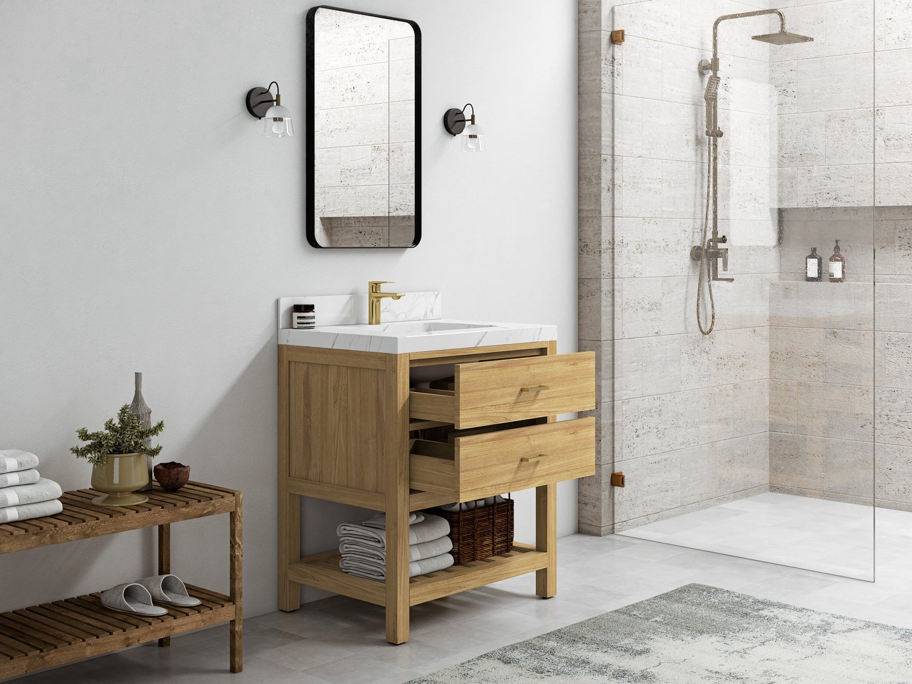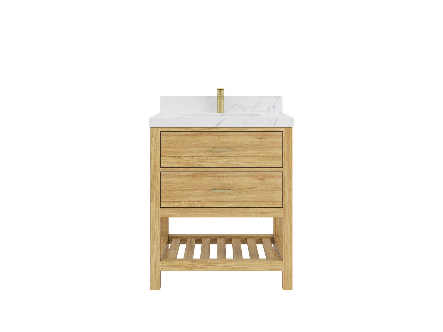 Parker Teak  30 in. W x 22 in. D Single Sink Bathroom Vanity in Light Natural with 2 in Calacatta Nuvo Quartz Countertop