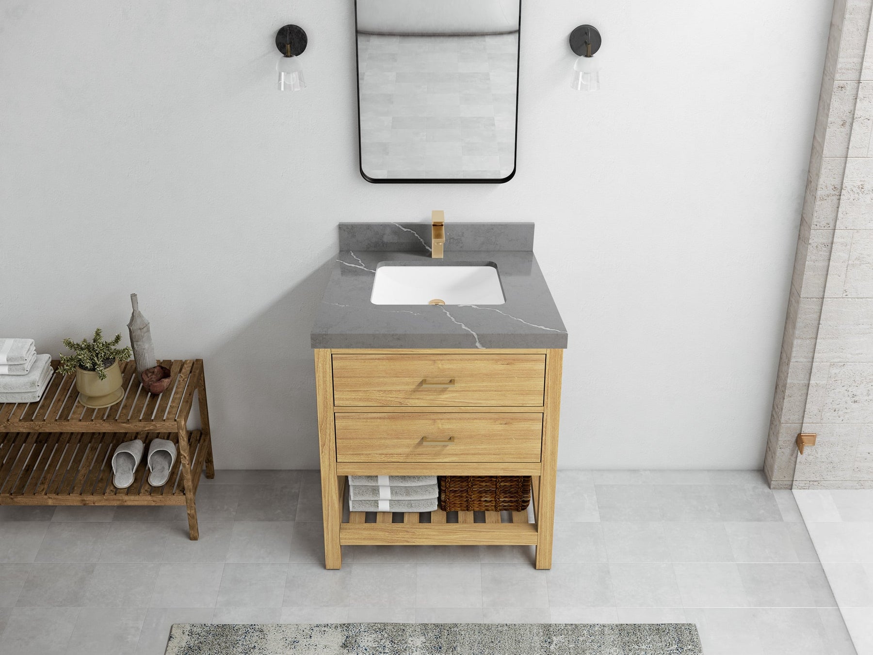 Parker Teak  30 in. W x 22 in. D Single Sink Bathroom Vanity in Light Natural with 2 in Piatra Gray Quartz Countertop