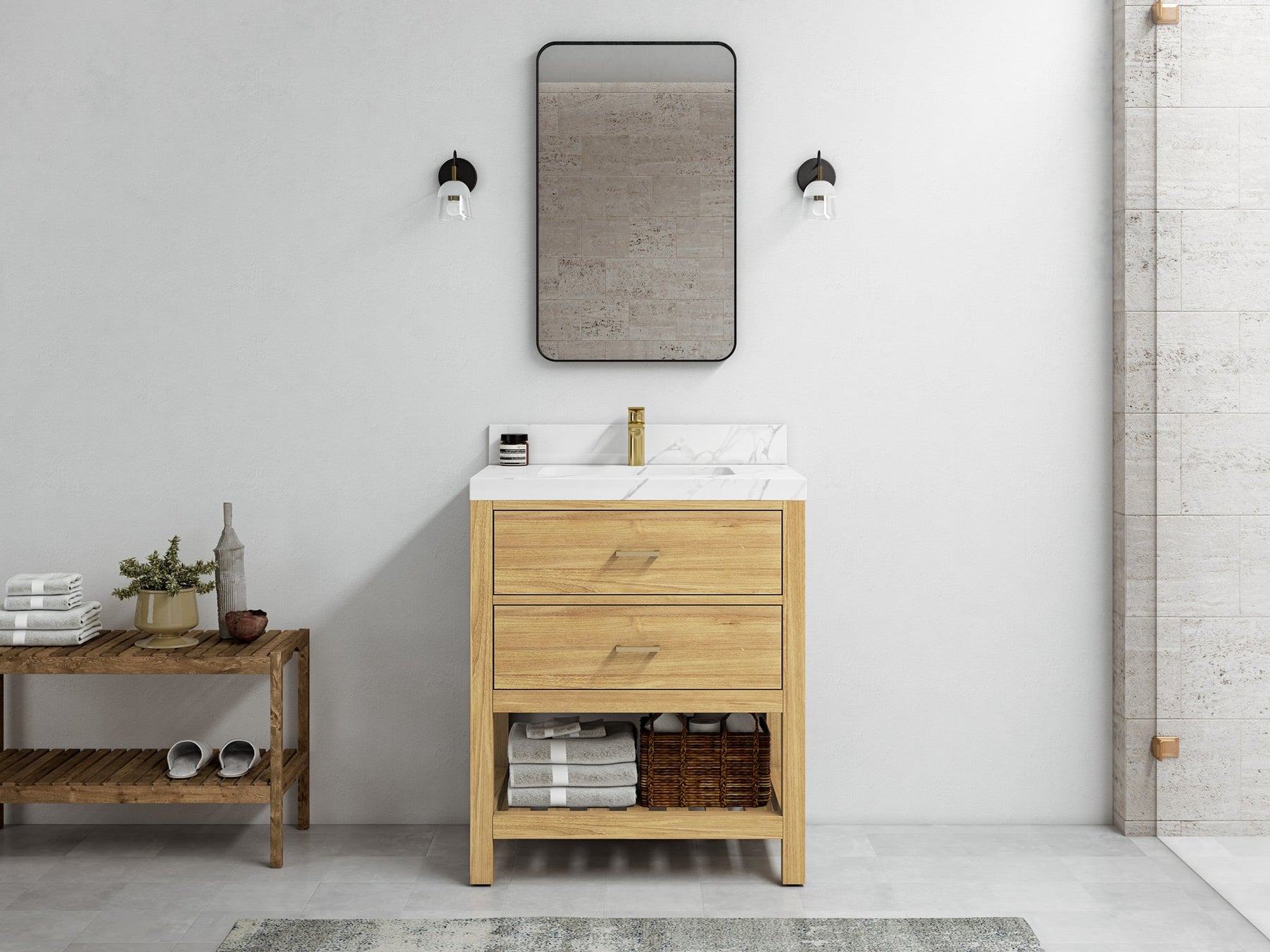 Parker Teak  30 in. W x 22 in. D  Single  Sink Bathroom Vanity in Light Natural with 2 in Calacatta Sienna Quartz Countertop