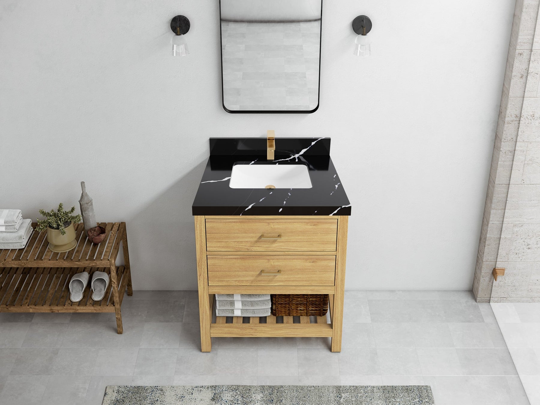 Parker Teak  30 in. W x 22 in. D Single Sink Bathroom Vanity in Light Natural with 2 in Calacatta Black Quartz Countertop