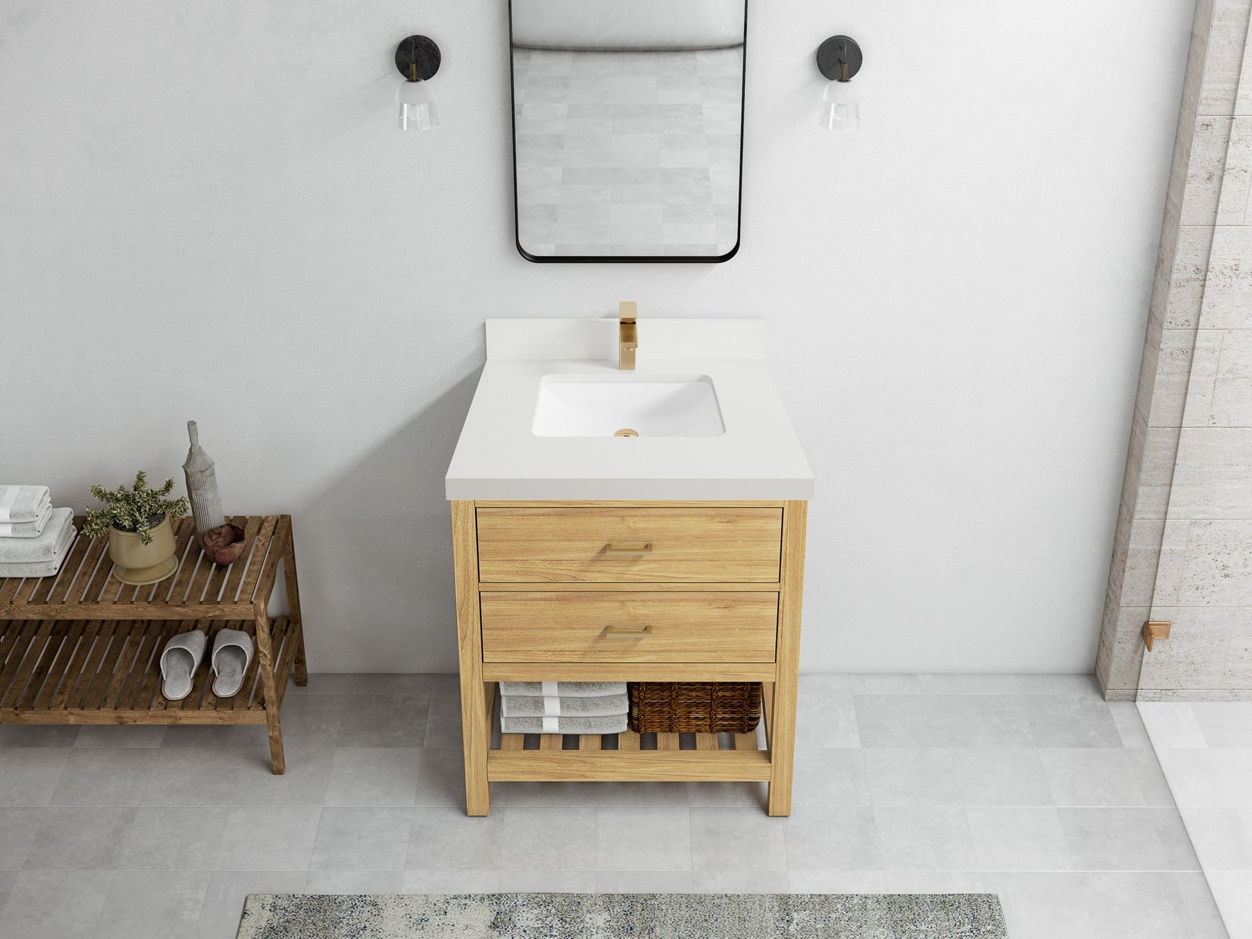 Parker Teak  30 in. W x 22 in. D Single Sink Bathroom Vanity in Light Natural with 2 in White Quartz Countertop