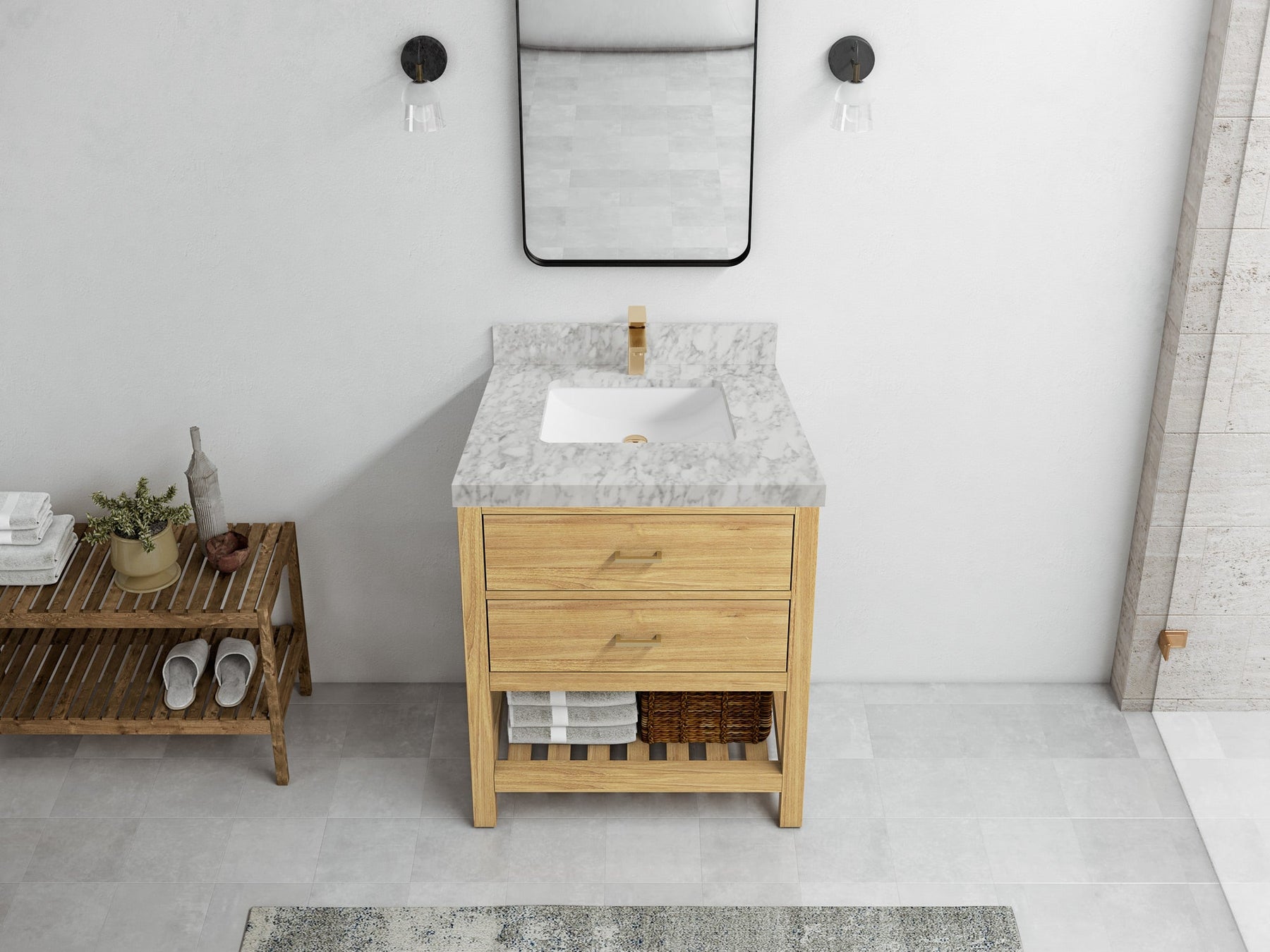 Parker Teak  30 in. W x 22 in. D Single Sink Bathroom Vanity in Light Natural with 2 in Carrara Marble Countertop