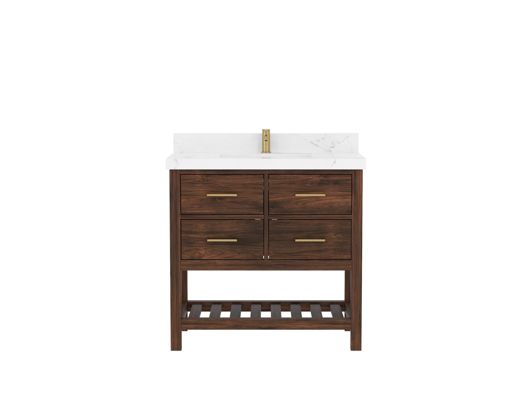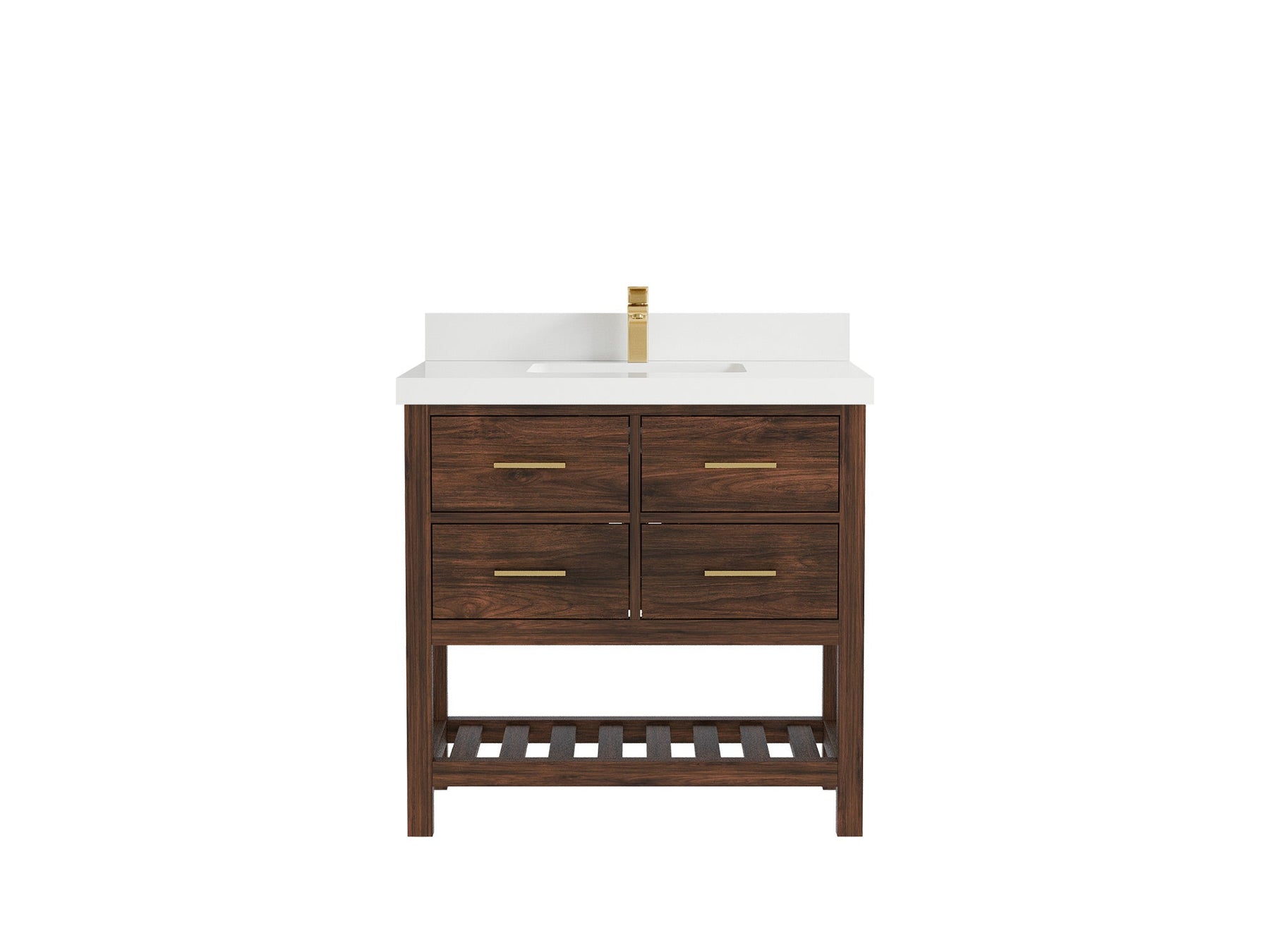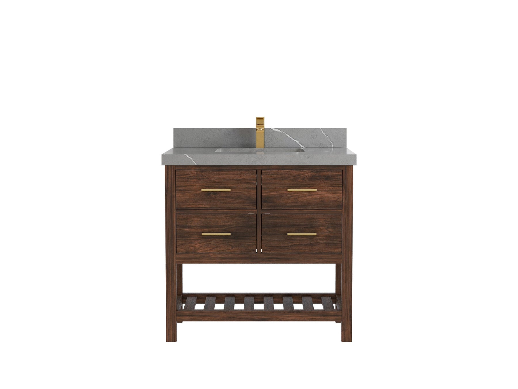 Parker Teak  36 in. W x 22 in. D Center Sink Bathroom Vanity in Dark Walnut  with Countertop - Dimension