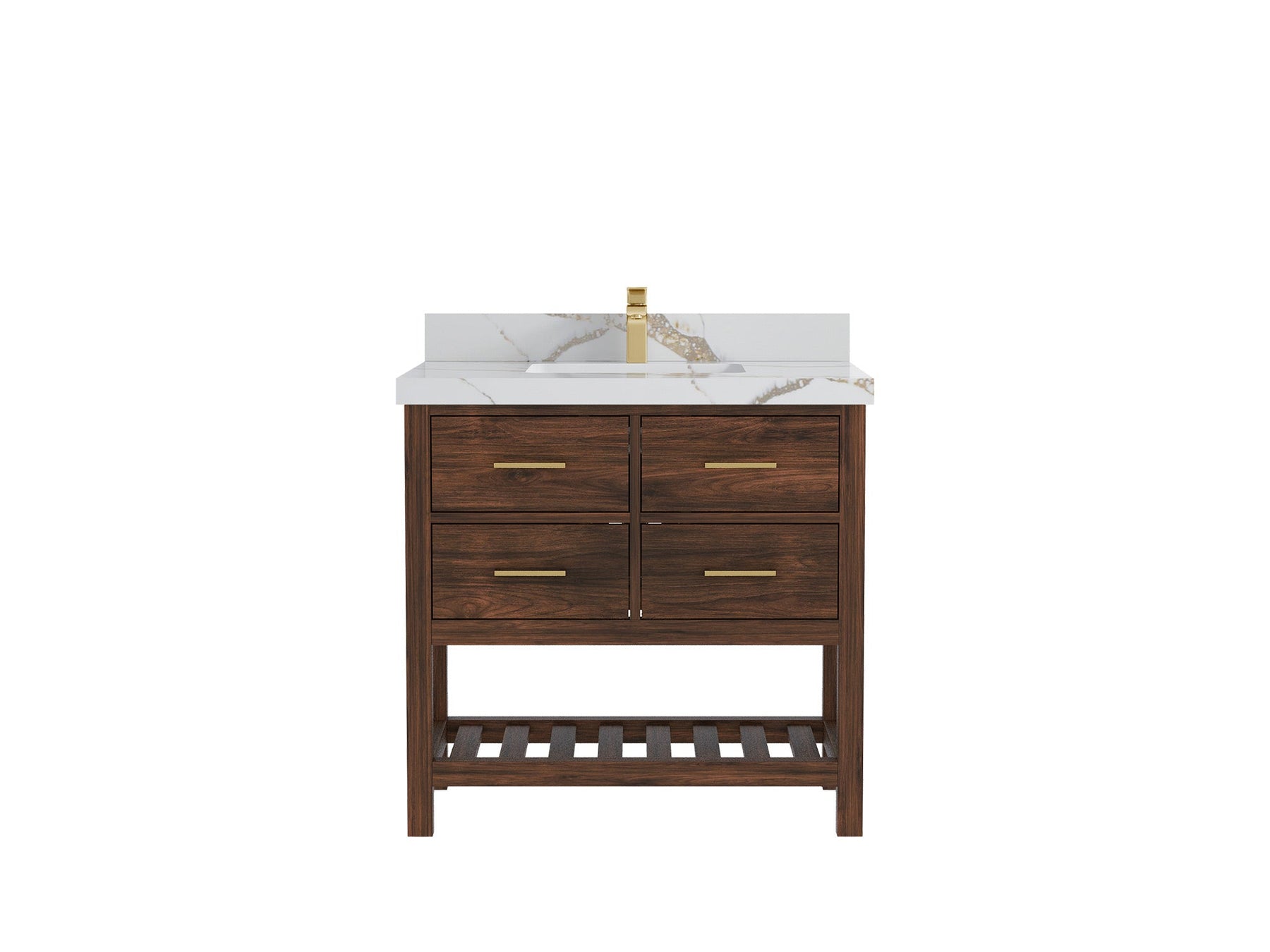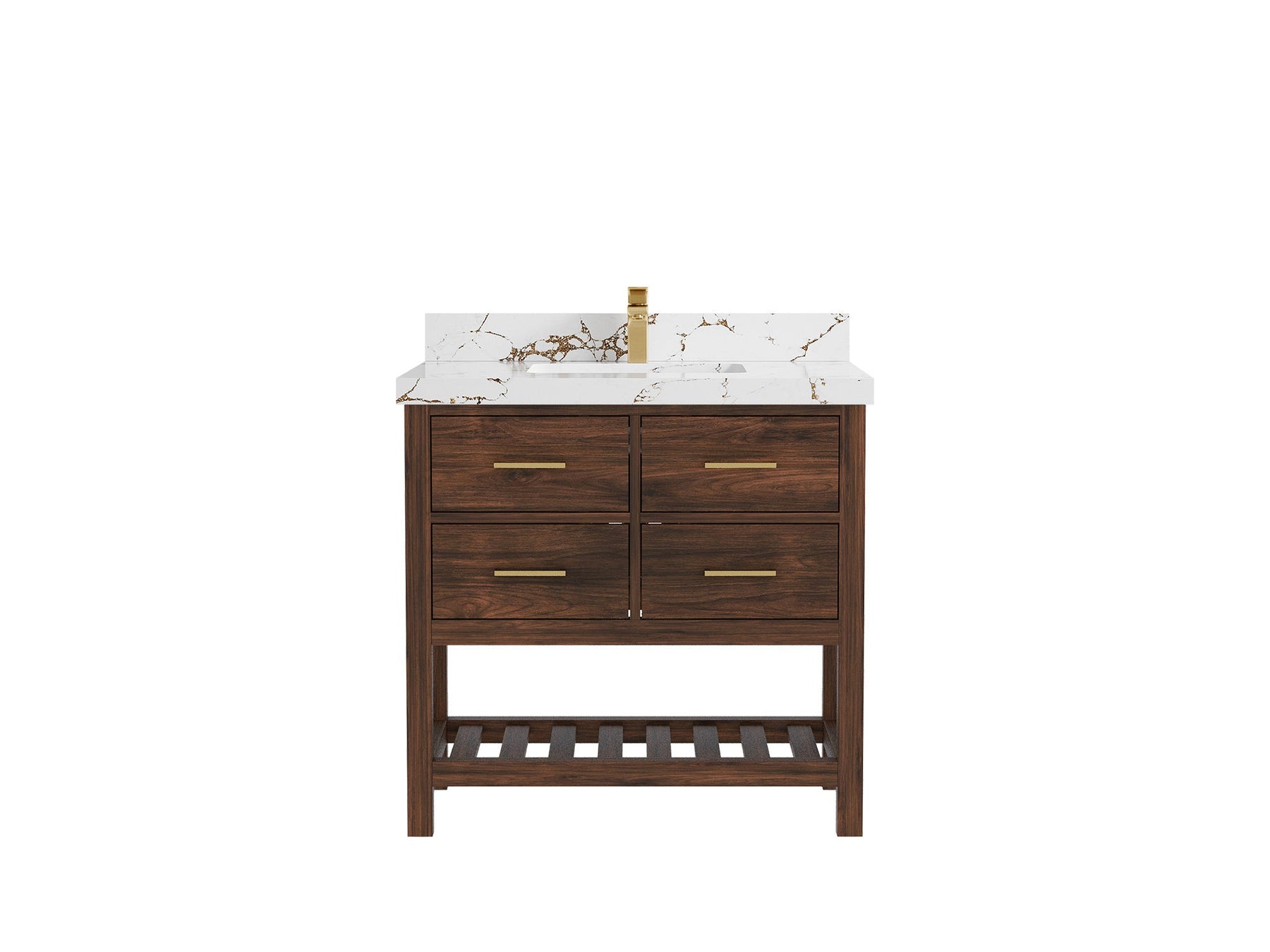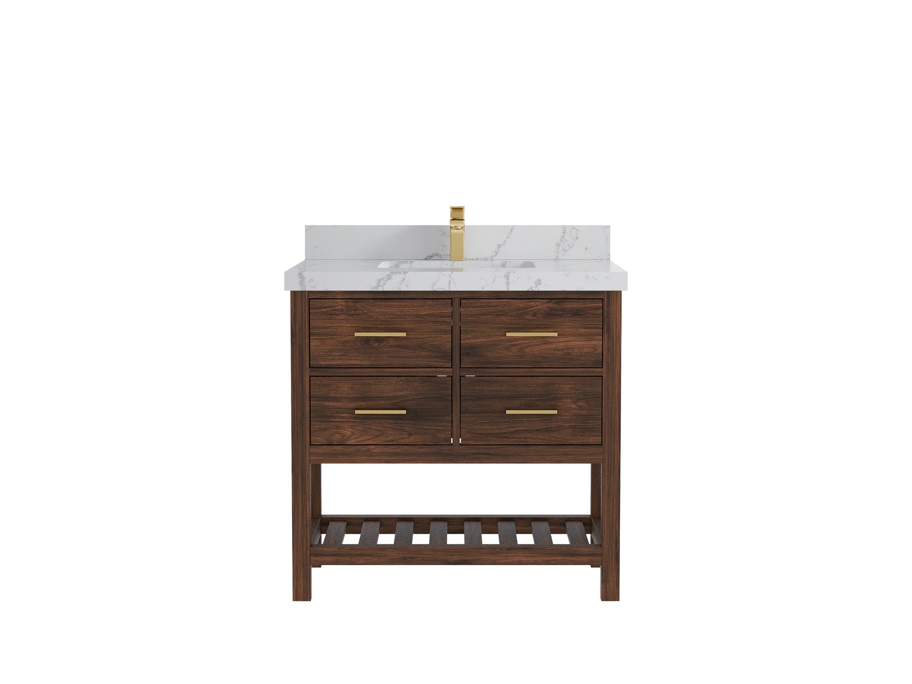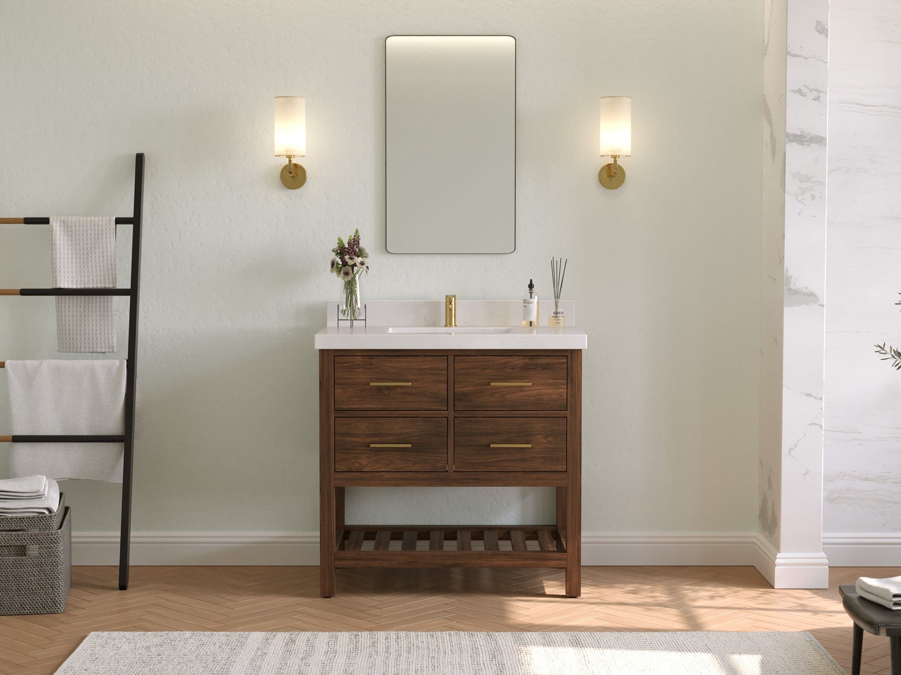 Parker Teak  36 in. W x 22 in. D Center Sink Bathroom Vanity in Dark Walnut  with Countertop - Dimension