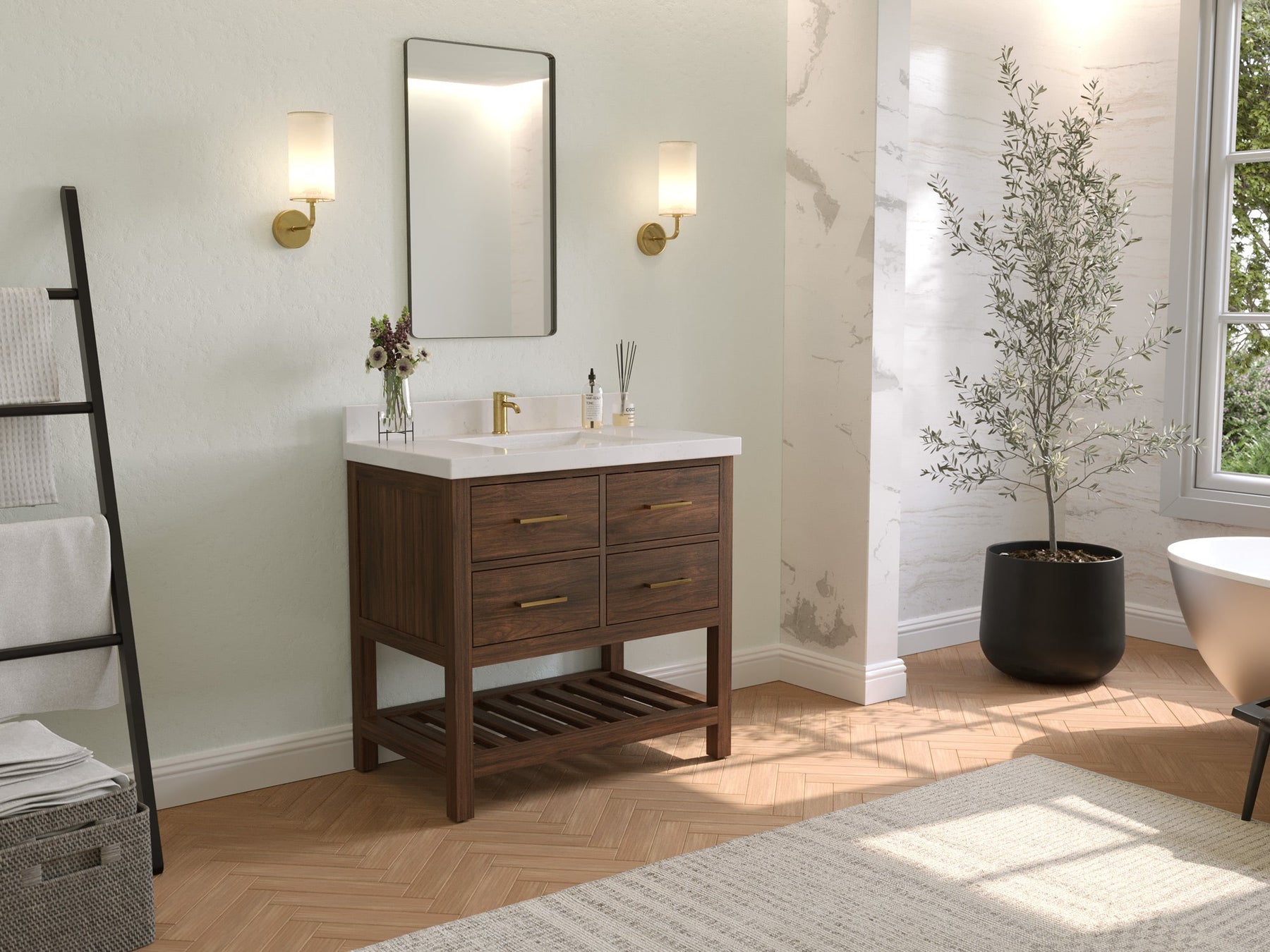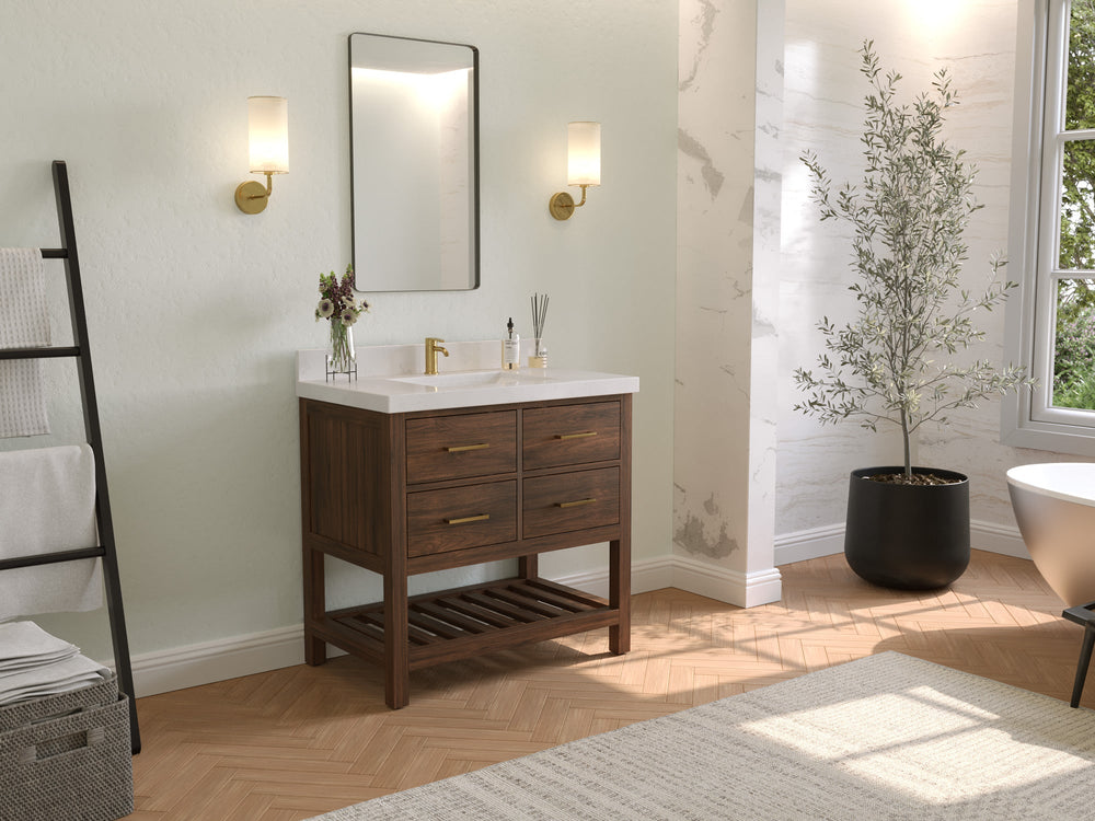 Pairing modern functionality with enduring beauty, Willow Bath & Vanity offers one of the largest selections of bathroom vanities in the U.S.—over 55,000 variations to choose from. Each piece is crafted from premium woods like birch, white oak, teak, and mango, and finished with elegant quartz, marble, or terrazzo countertops.