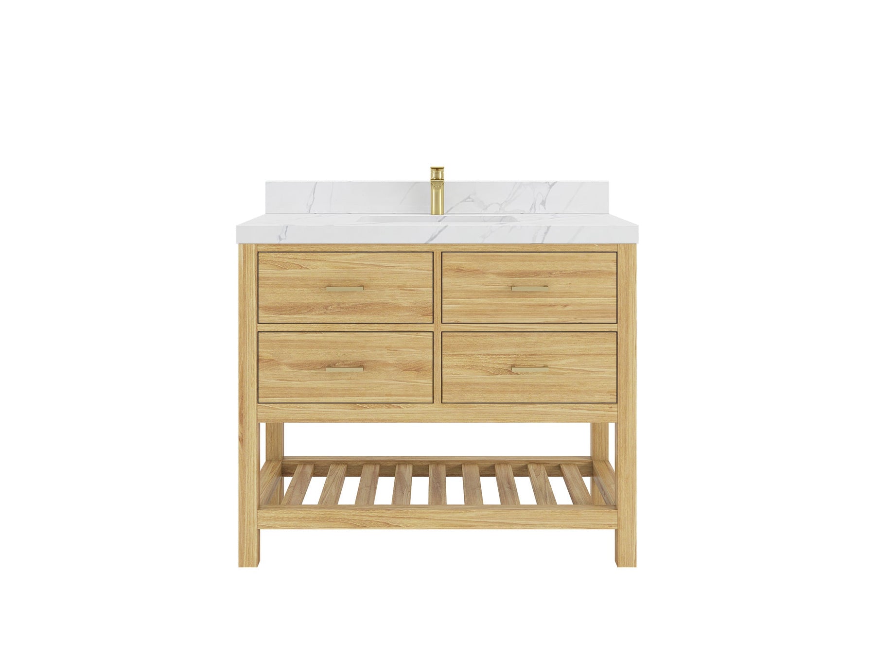 Parker Teak  42 in. W x 22 in. D  Single  Sink Bathroom Vanity in Light Natural with 2 in Calacatta Gold Quartz Countertop