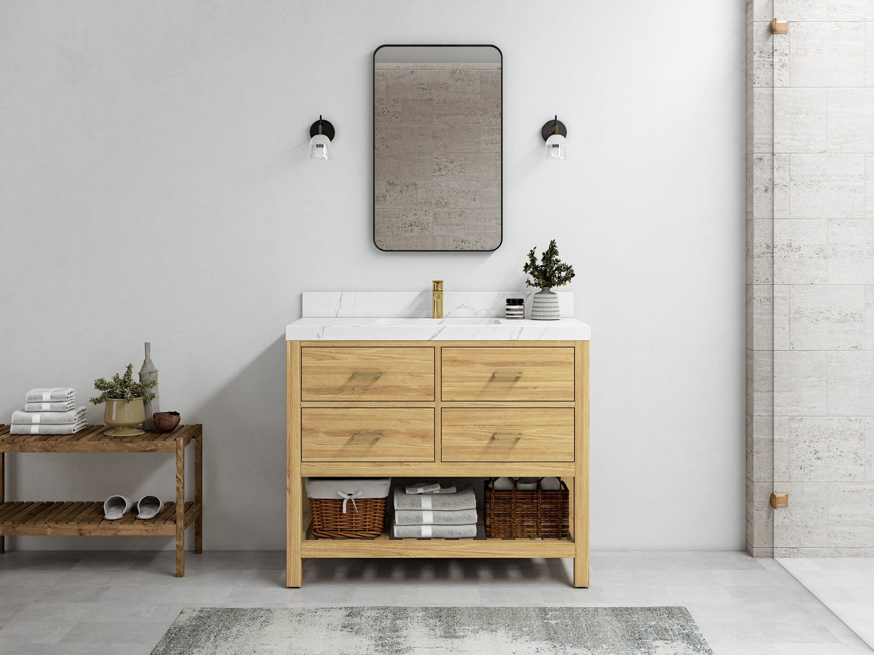 Pairing modern functionality with enduring beauty, Willow Bath & Vanity offers one of the largest selections of bathroom vanities in the U.S.—over 55,000 variations to choose from. Each piece is crafted from premium woods like birch, white oak, teak, and mango, and finished with elegant quartz, marble, or terrazzo countertops.