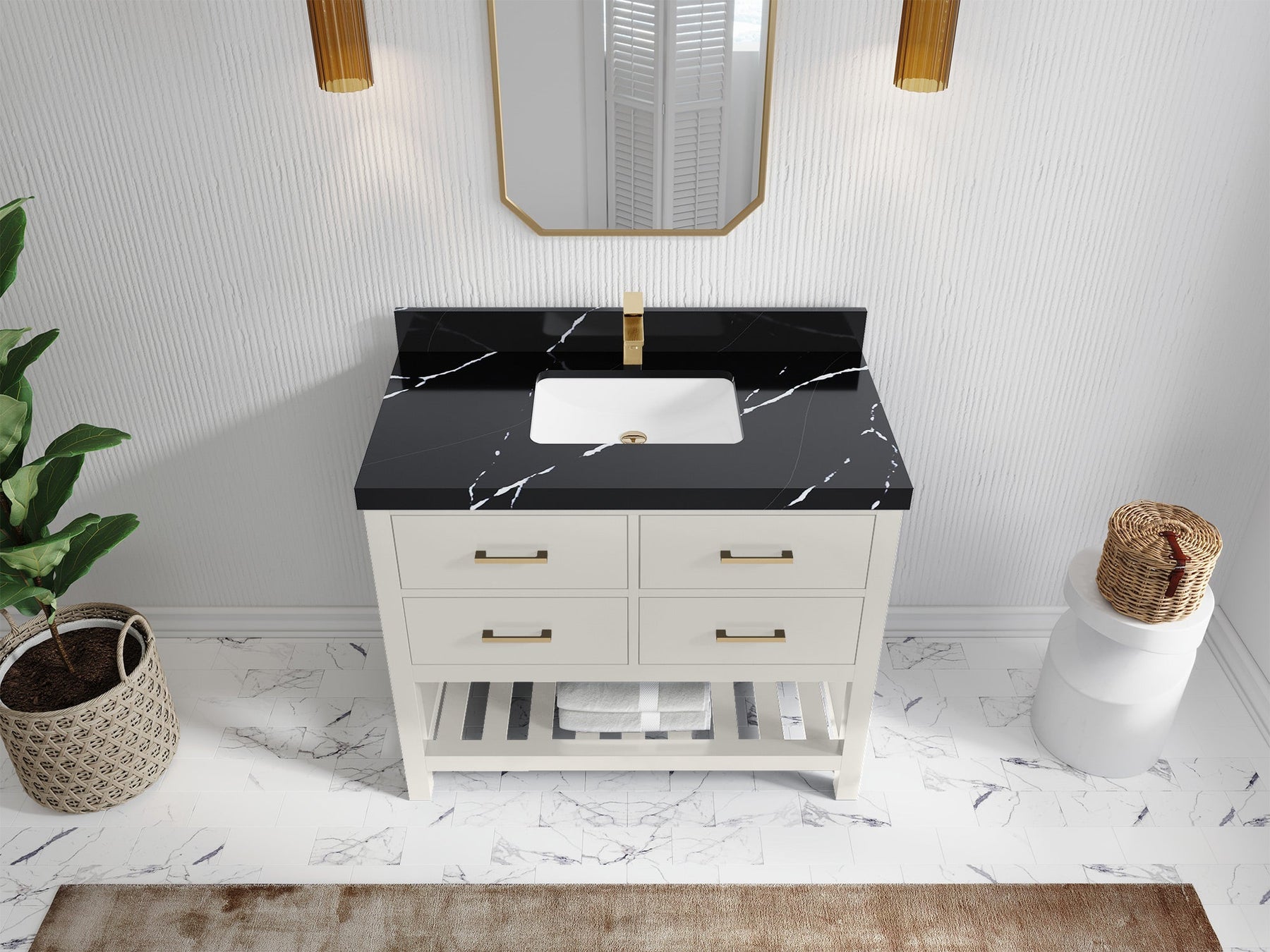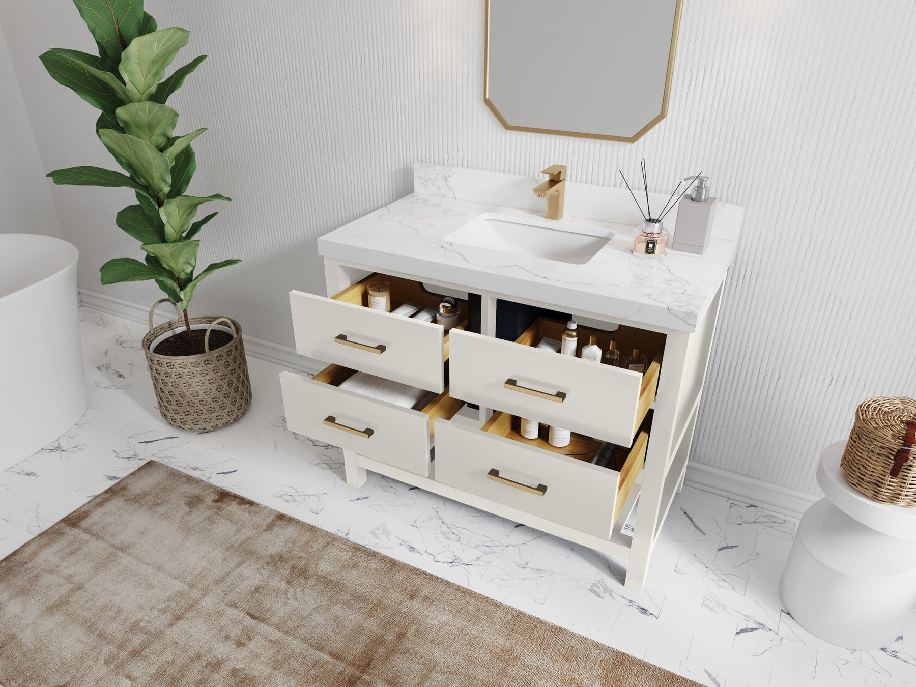 4. Plenty of storage space - this vanity comes with plenty of cabinet space to store all your bathroom essentials.