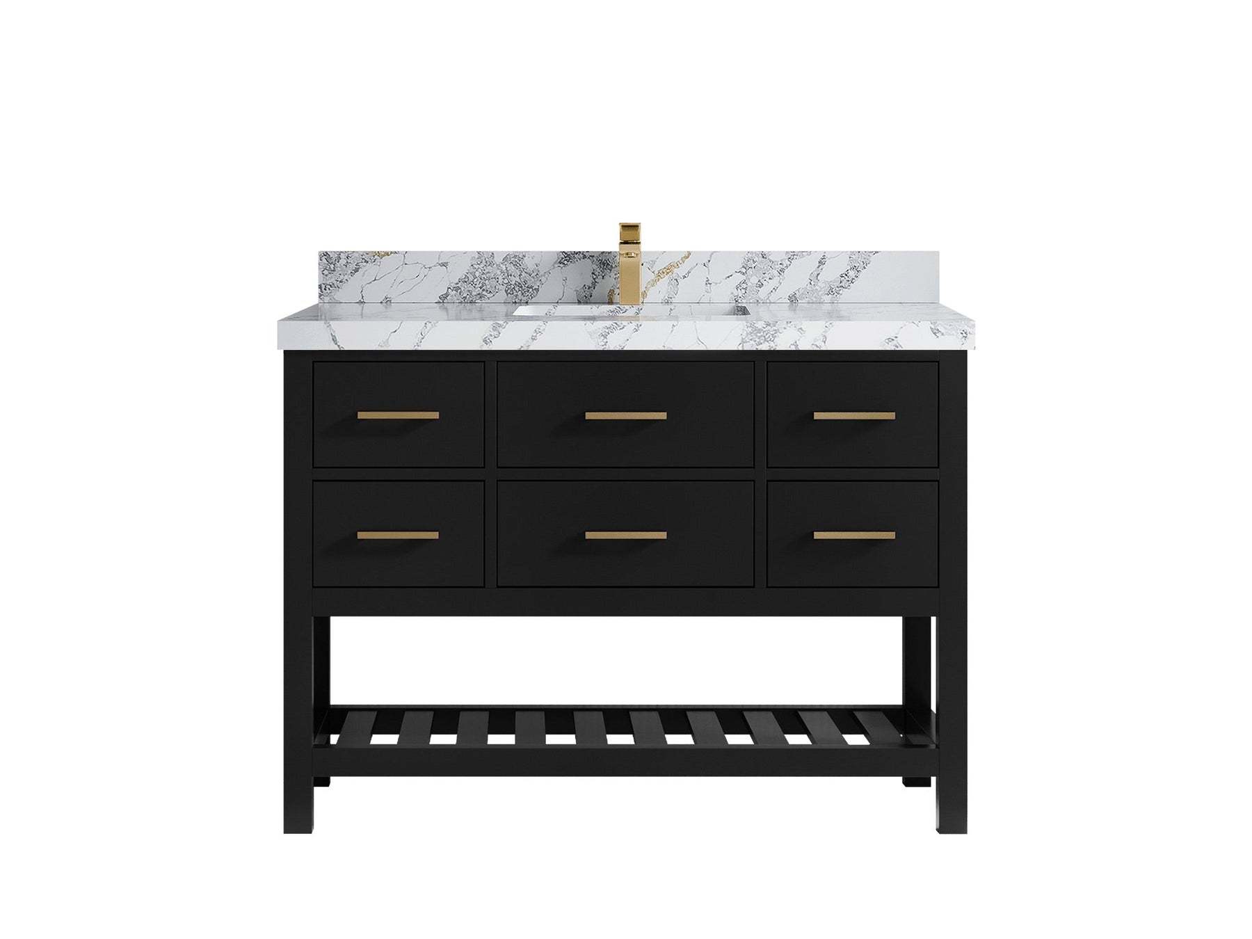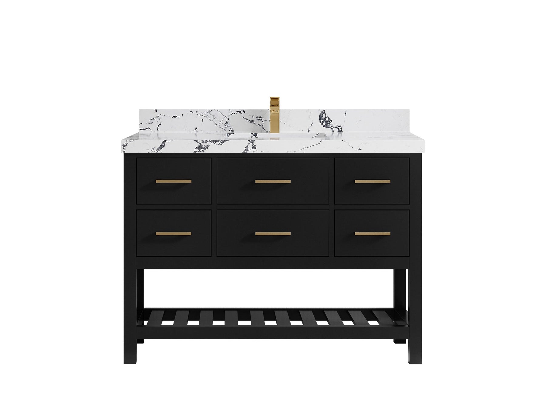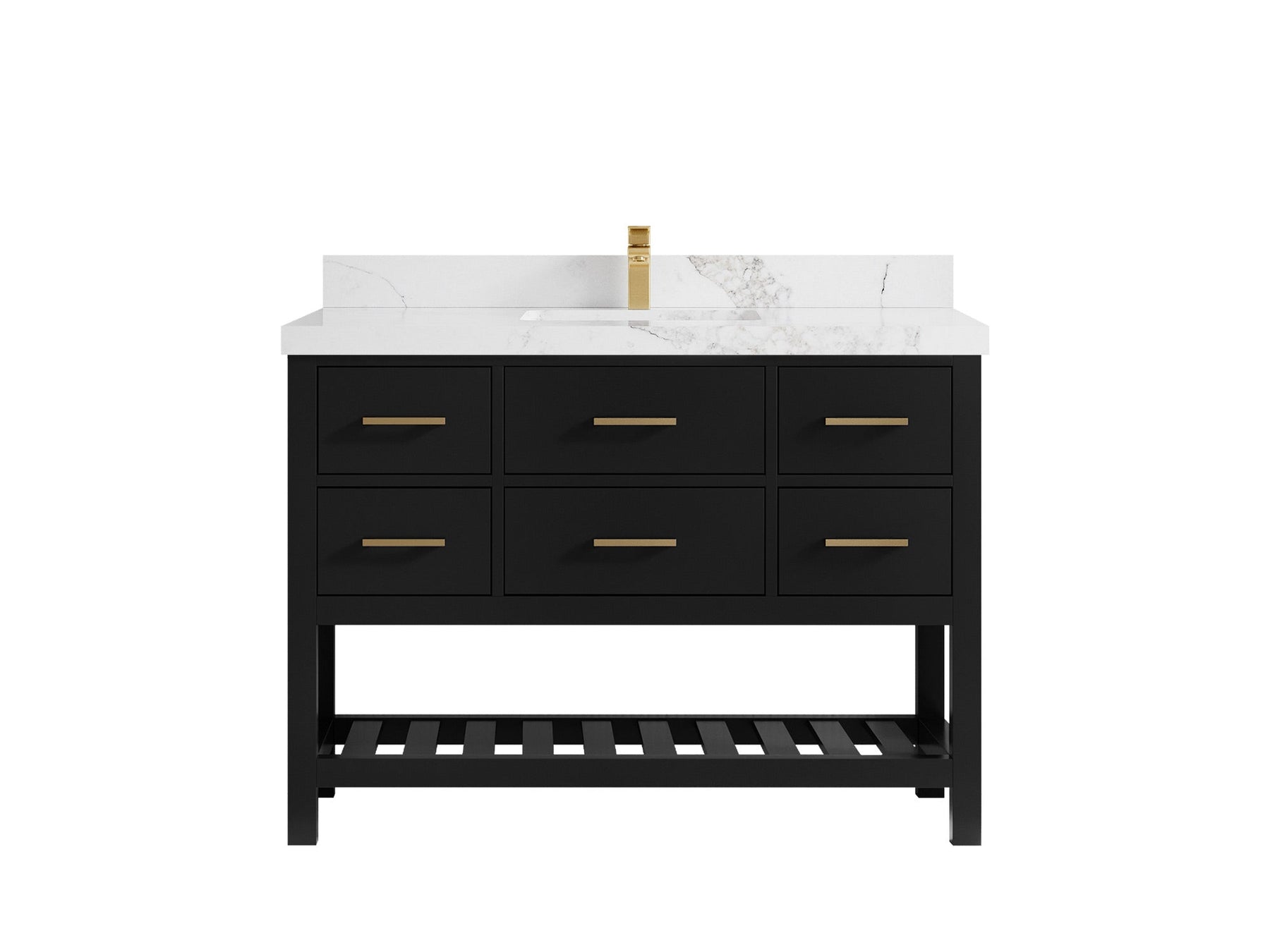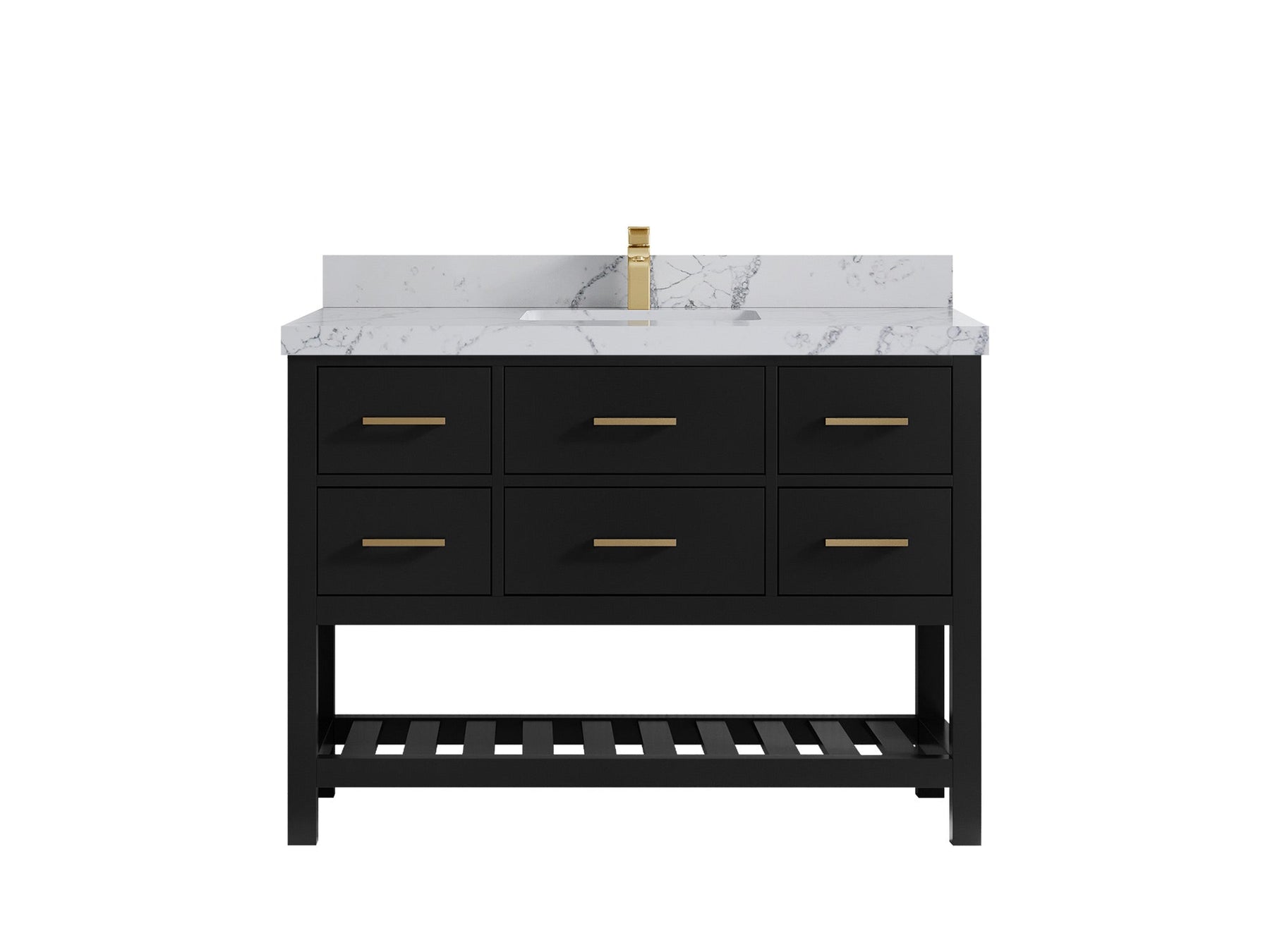 Catalina 48 in. W x 22 in. D Single Sink Bathroom Vanity in Black with 2 in Carrara Quartz Countertop