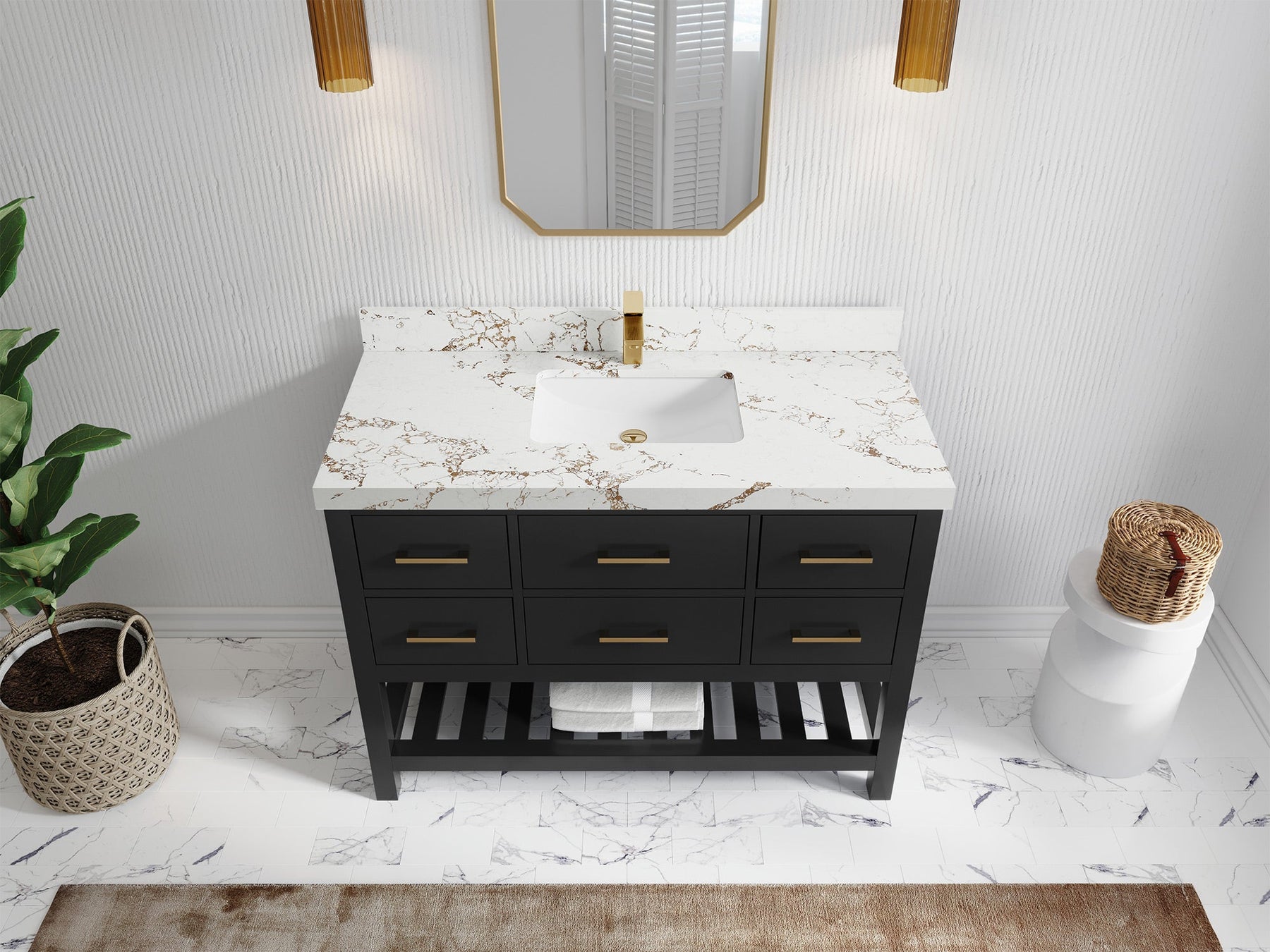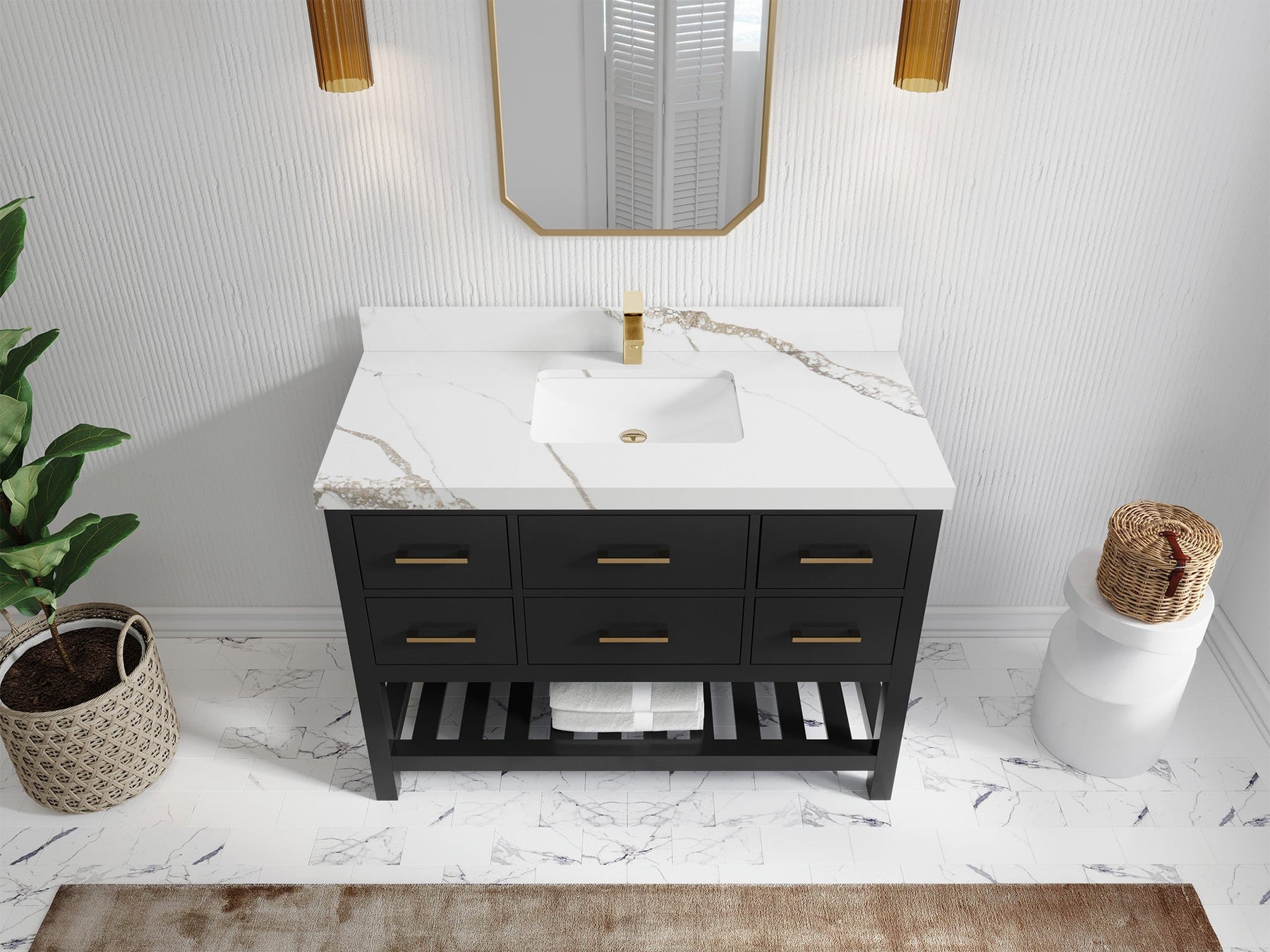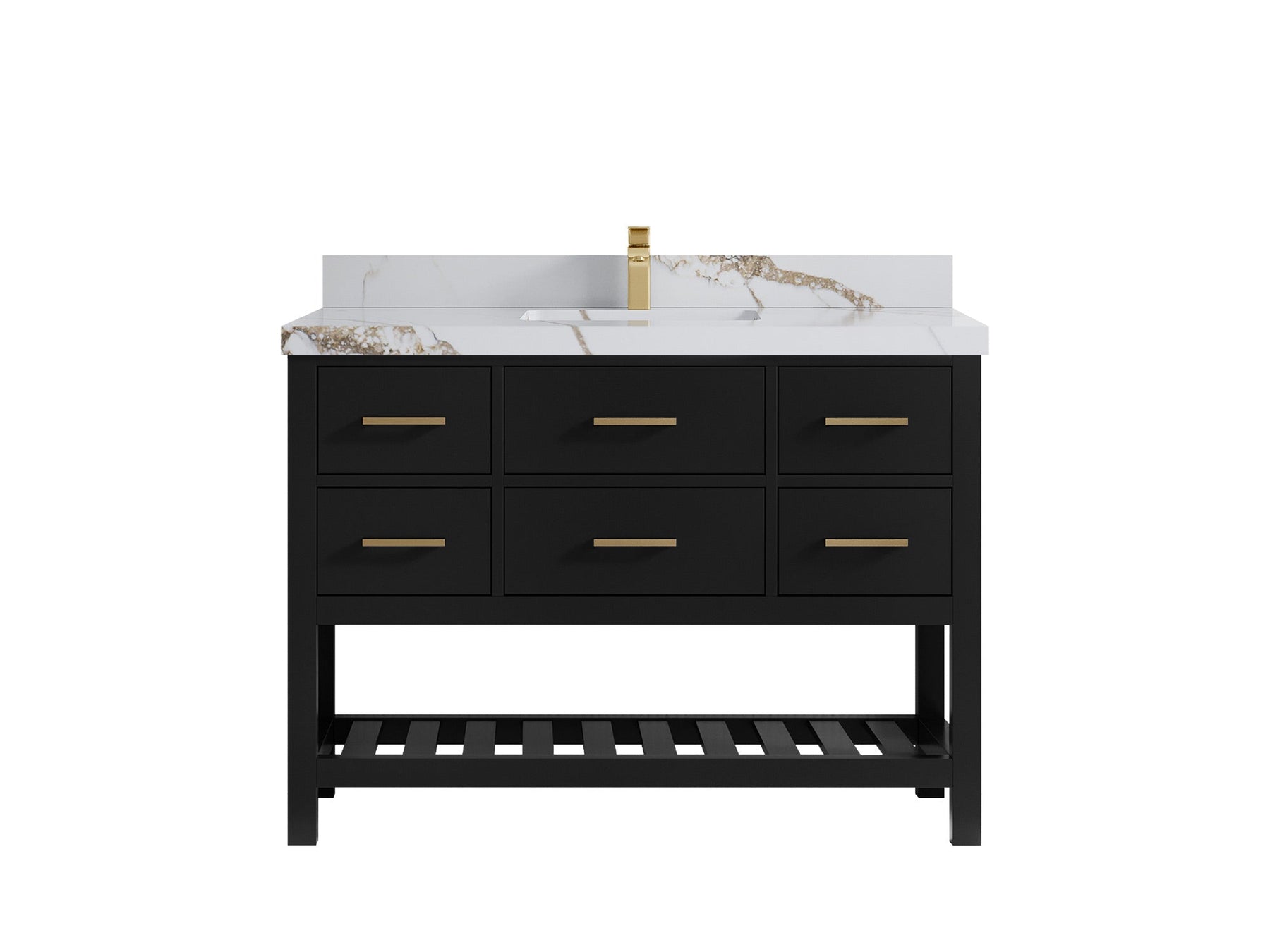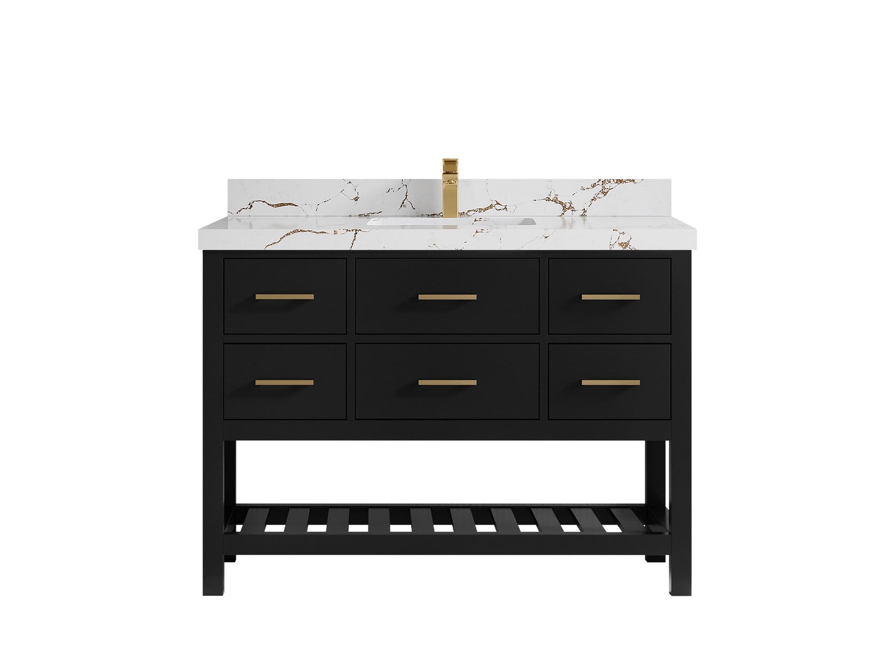 Catalina 48 in. W x 22 in. D Single Sink Bathroom Vanity in Black with 2 in Carrara Quartz Countertop