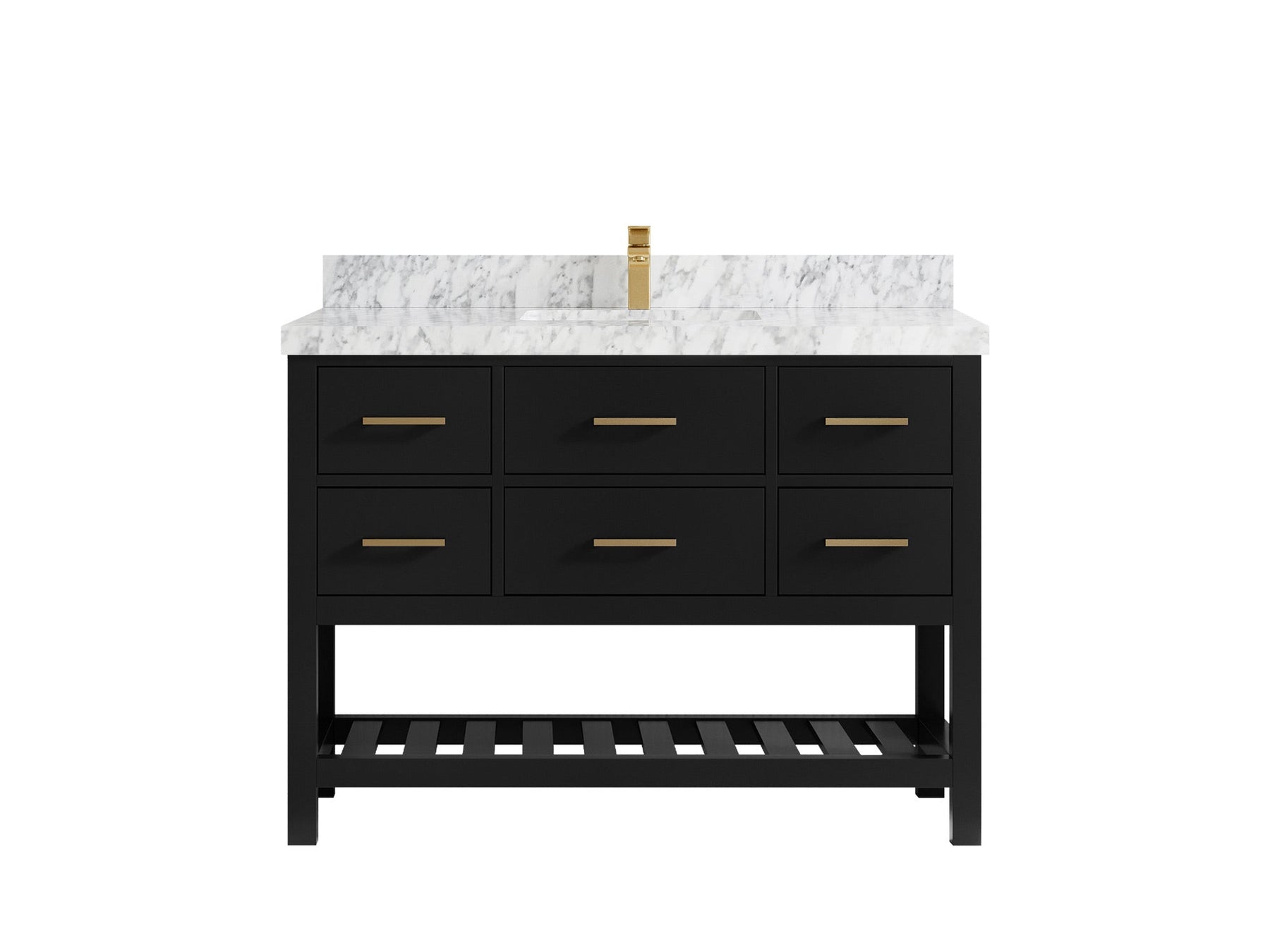 Catalina 48 in. W x 22 in. D Single Sink Bathroom Vanity in Black with 2 in Carrara Marble Countertop
