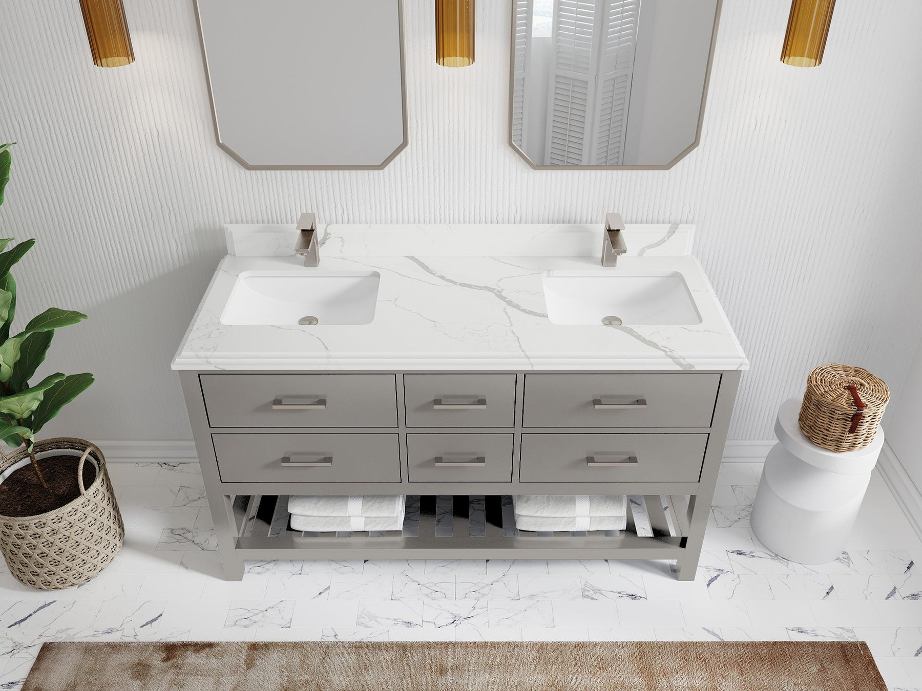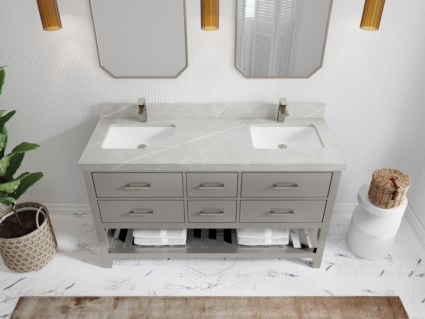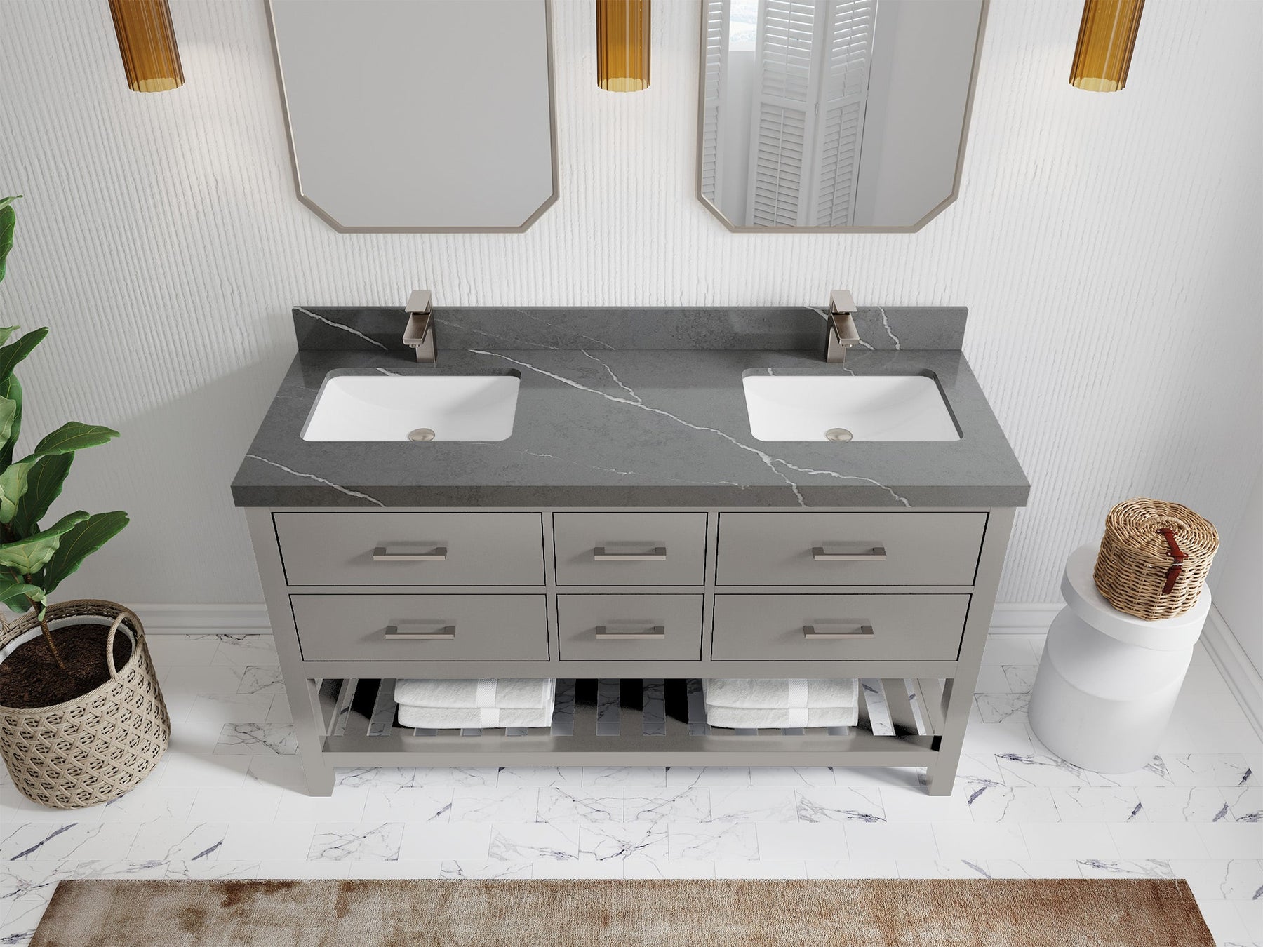 Parker 60 in. W x 22 in. D Double Sink Bathroom Vanity | Elephant Skin Gray
