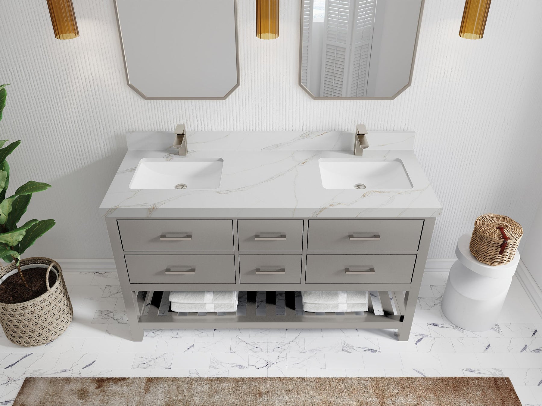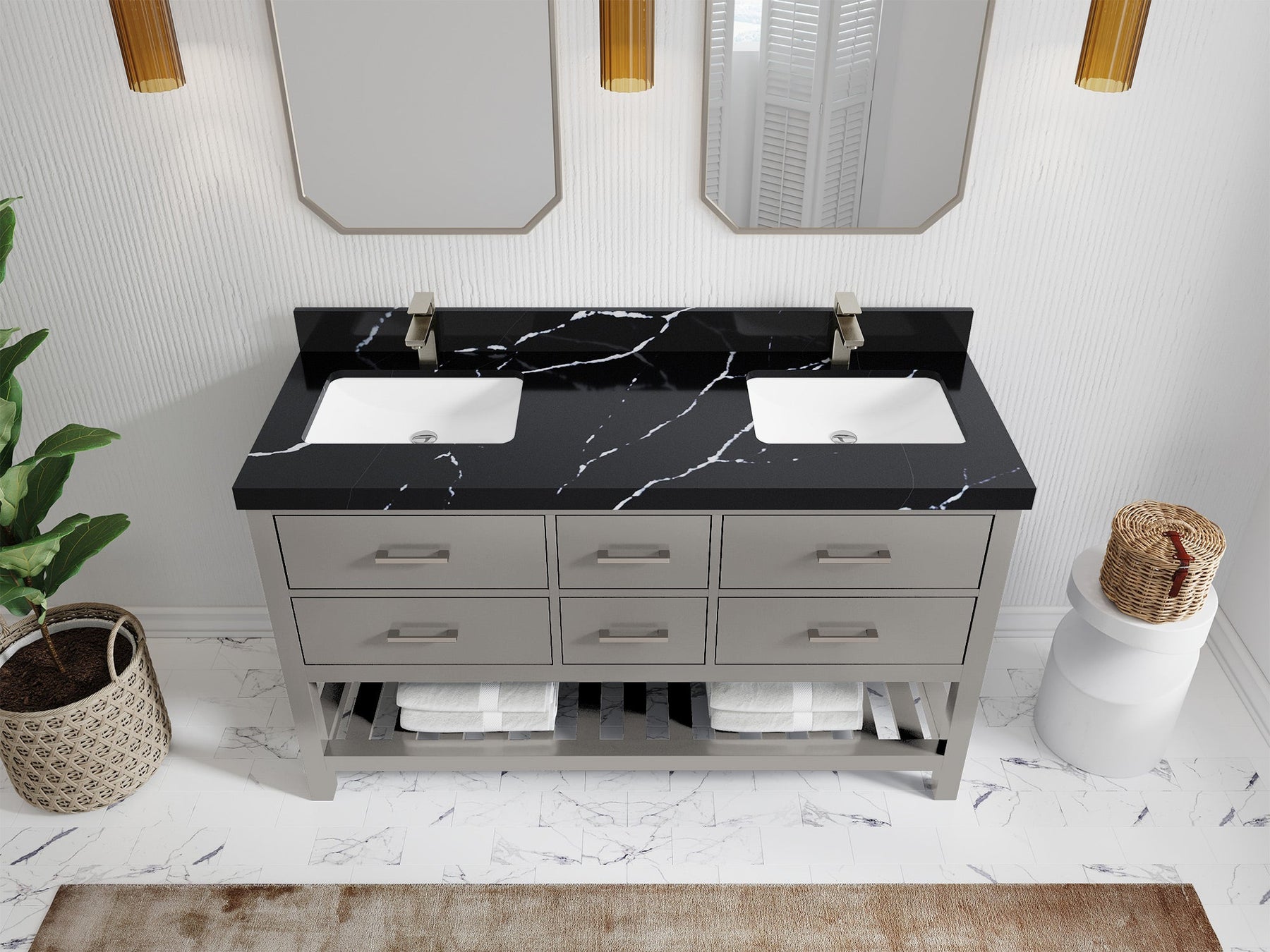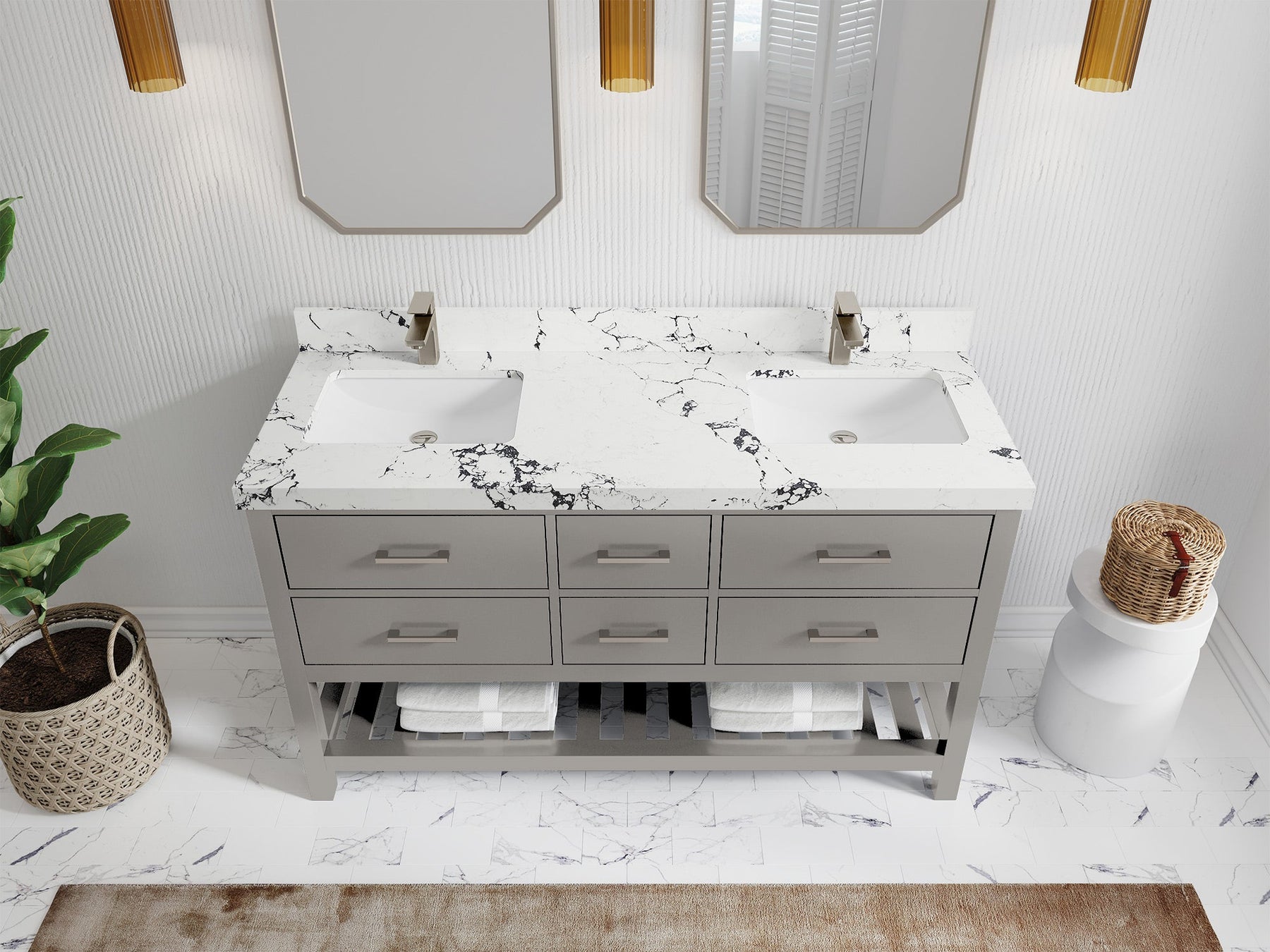 Parker 60 in. W x 22 in. D Double Sink Bathroom Vanity | Elephant Skin Gray